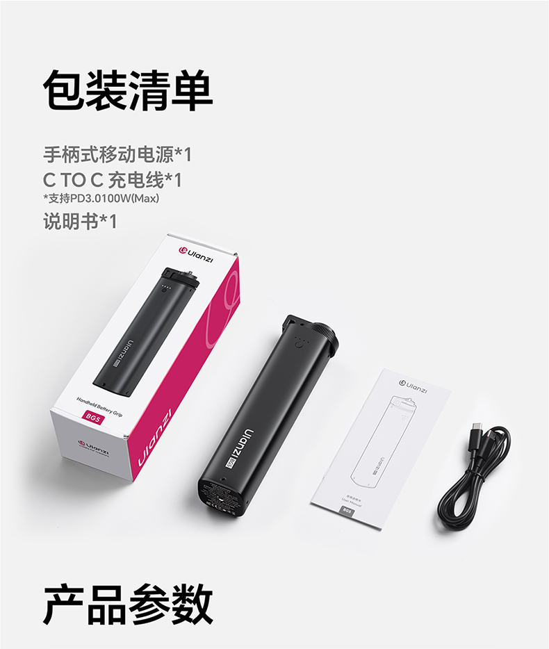 Ulanzi优篮子 BG5移动充电手柄补光灯手机相机运动相机无人机通用便携手持大容量充电宝户外拍摄摄影续航