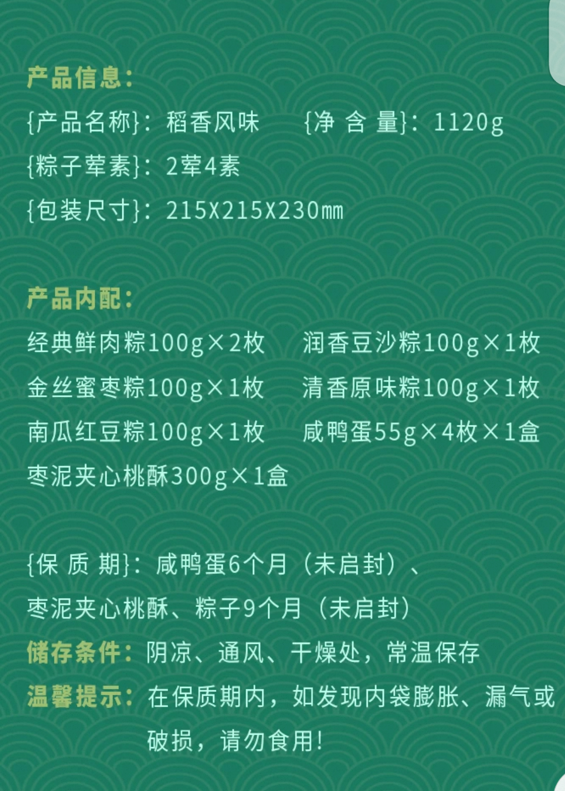 稻香村 稻香风味礼盒(6粽4蛋+点心)- 1120g【端午】LYX