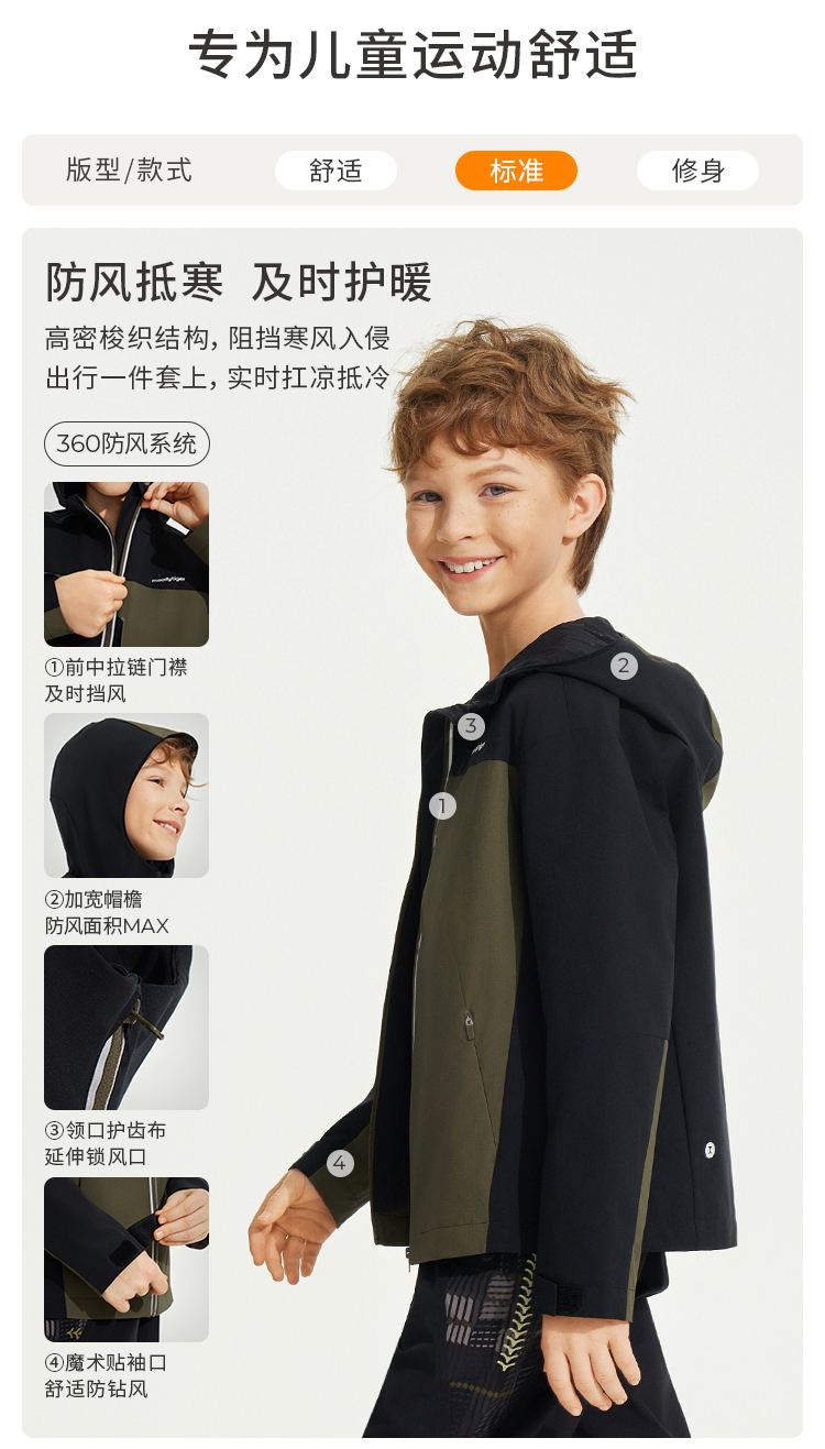 【24年秋新】moodytiger24秋新防风拒水男童户外运动风衣43110801