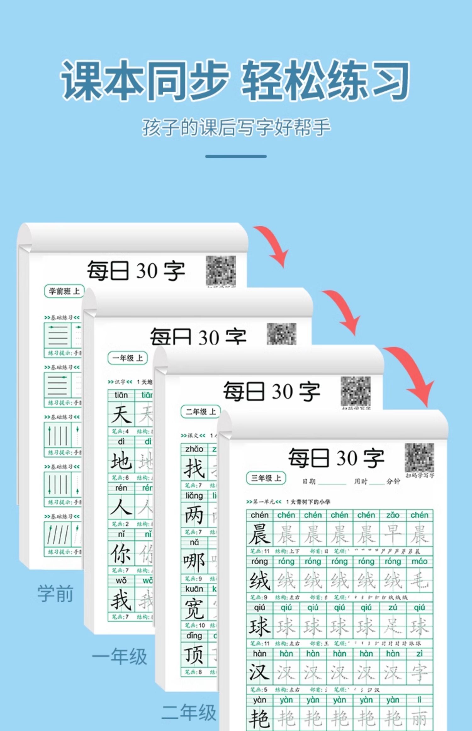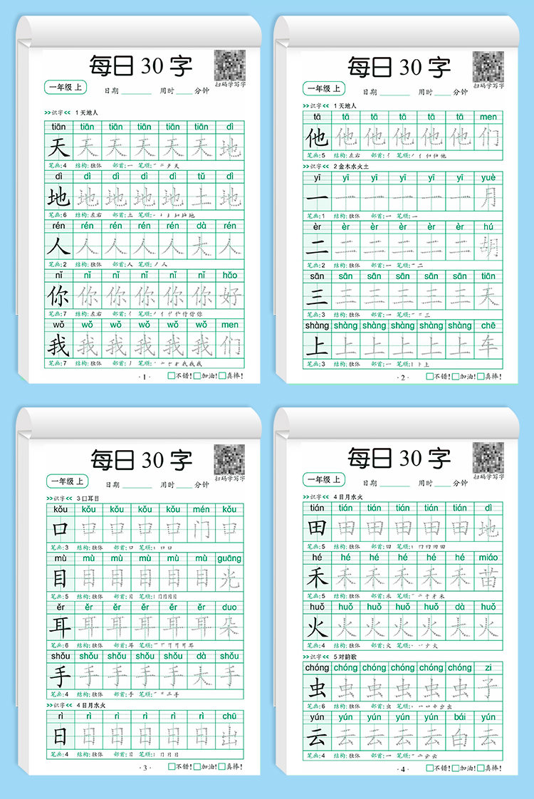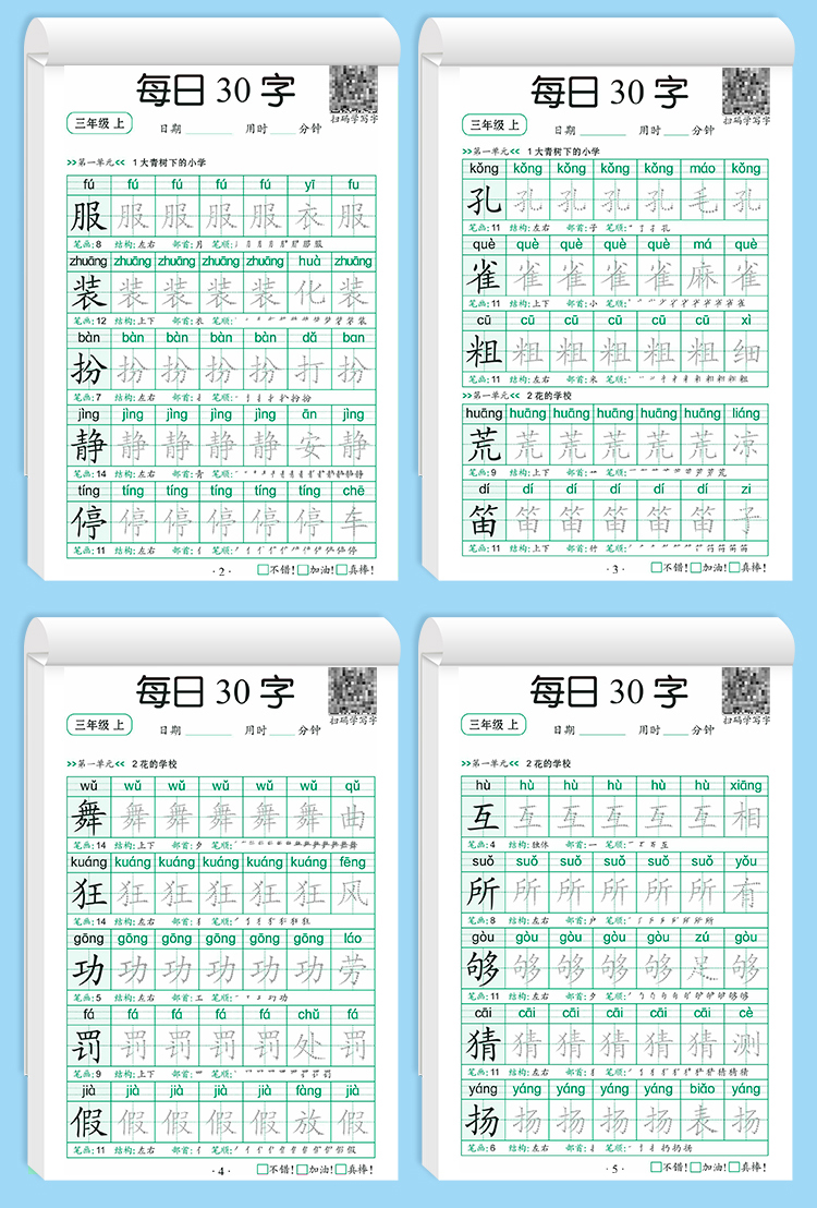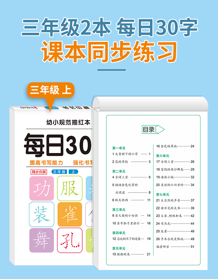 学前一年级减压同步字帖每日30字小学生下册点阵控笔训练字帖二年级三上册练字帖每日一练人教版语文笔画笔顺描红专用练字本