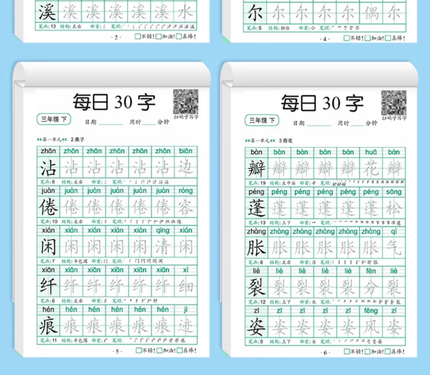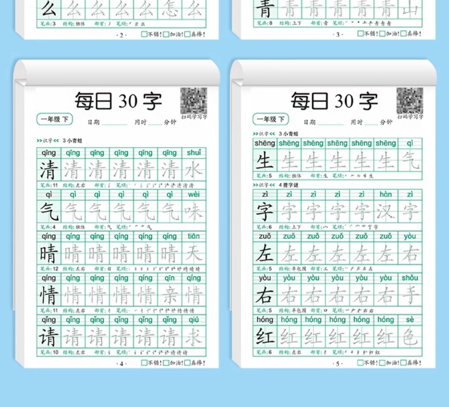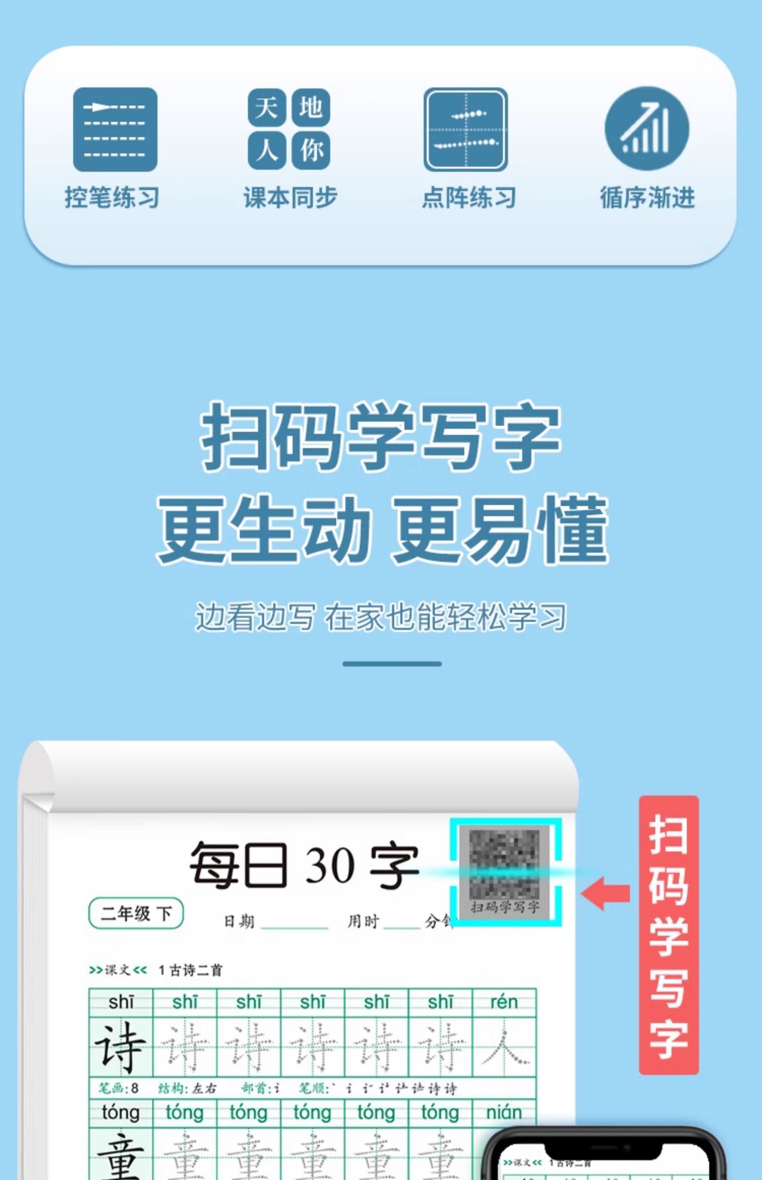 学前一年级减压同步字帖每日30字小学生下册点阵控笔训练字帖二年级三上册练字帖每日一练人教版语文笔画笔顺描红专用练字本