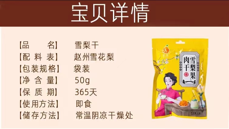 柏舍禅房 赵州雪梨果肉干50g即食