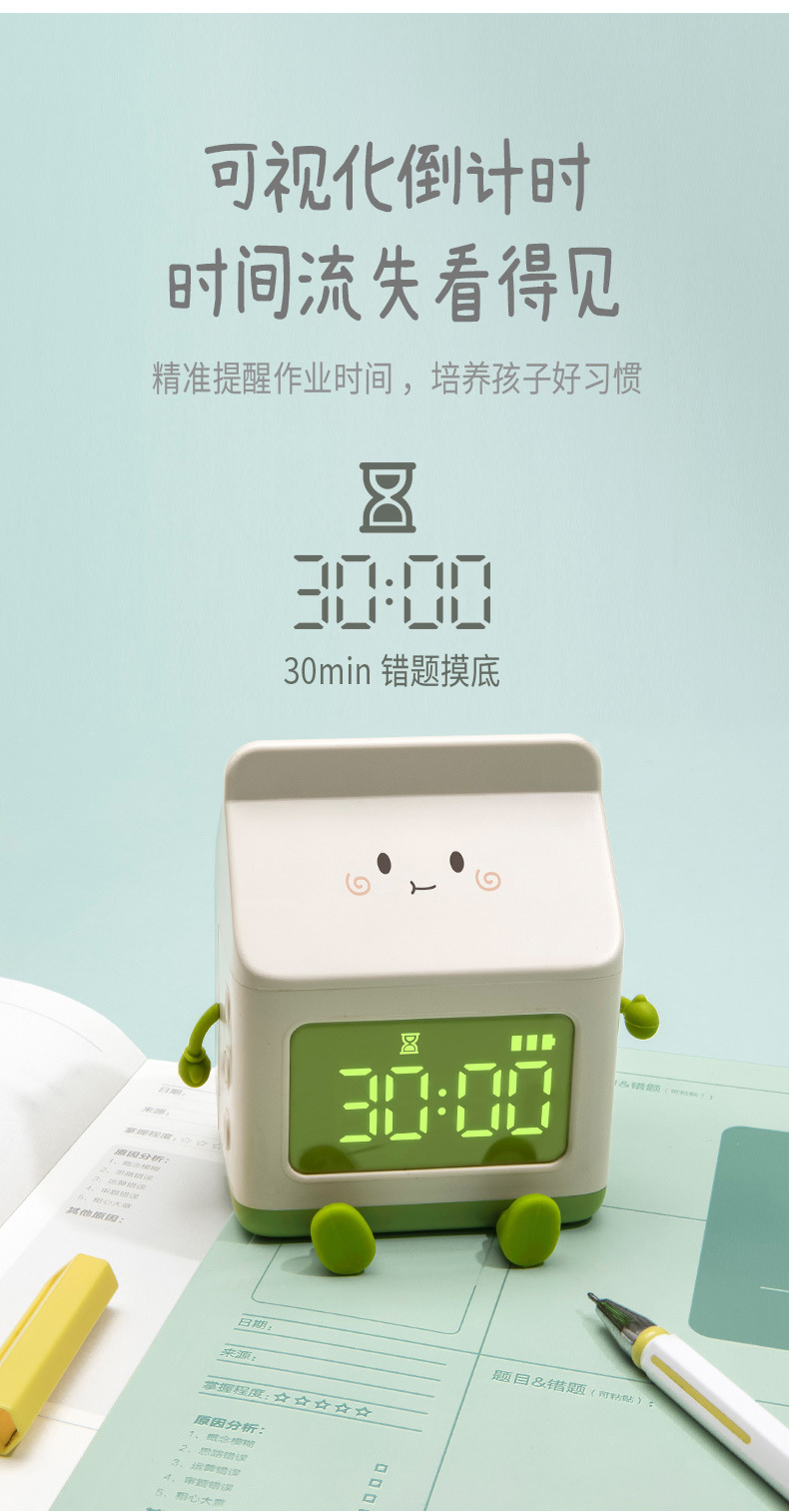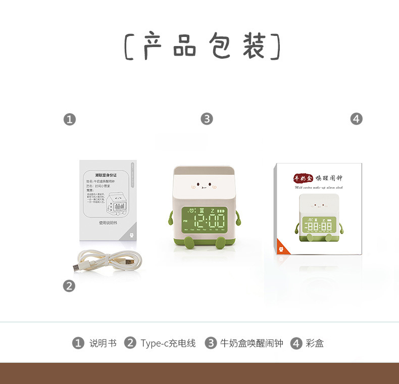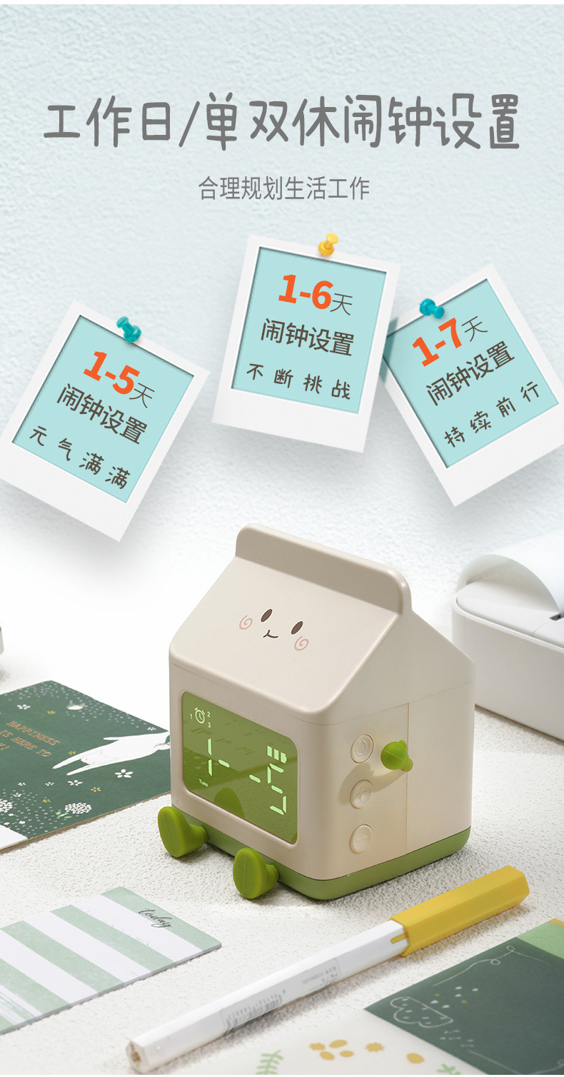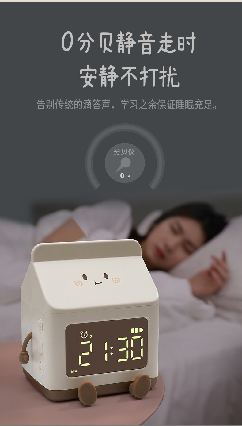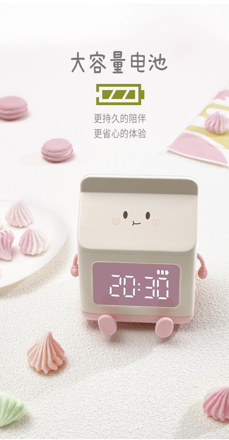「不只颜值!三款配色」新款牛奶盒闹钟 学生专用闹钟居家日用大声儿童卡通电子钟计时器学生专用