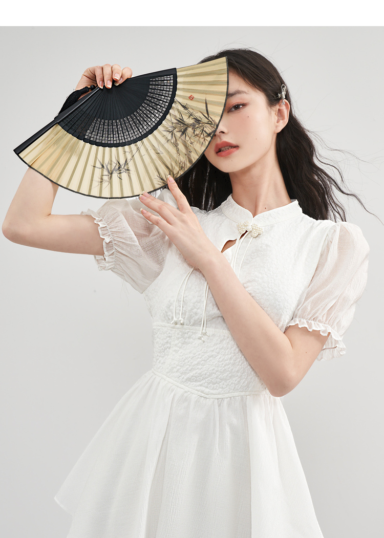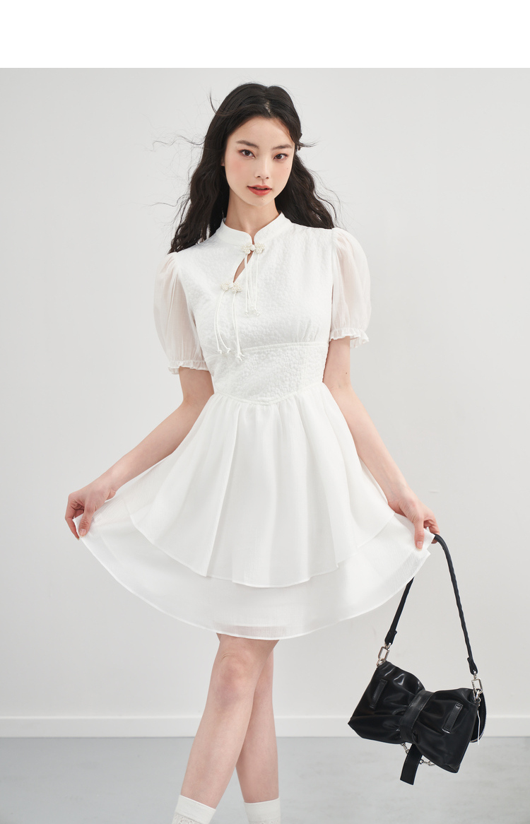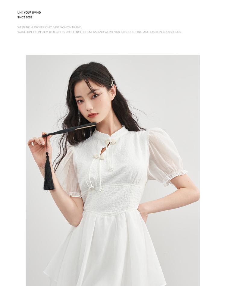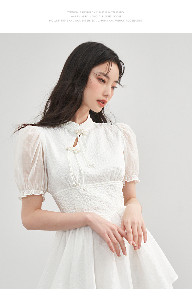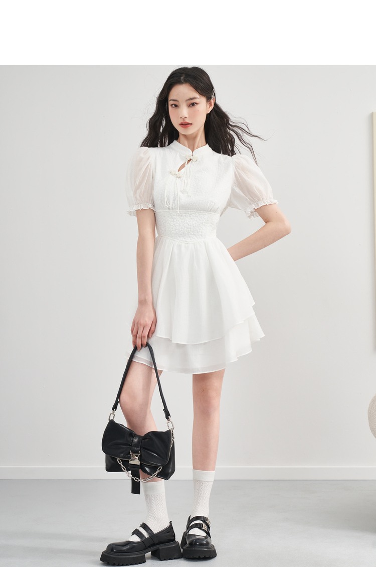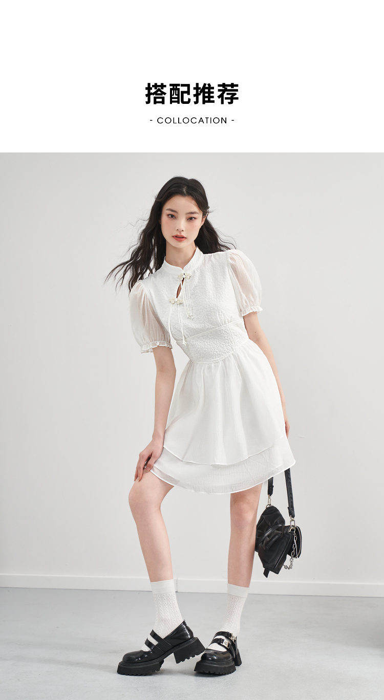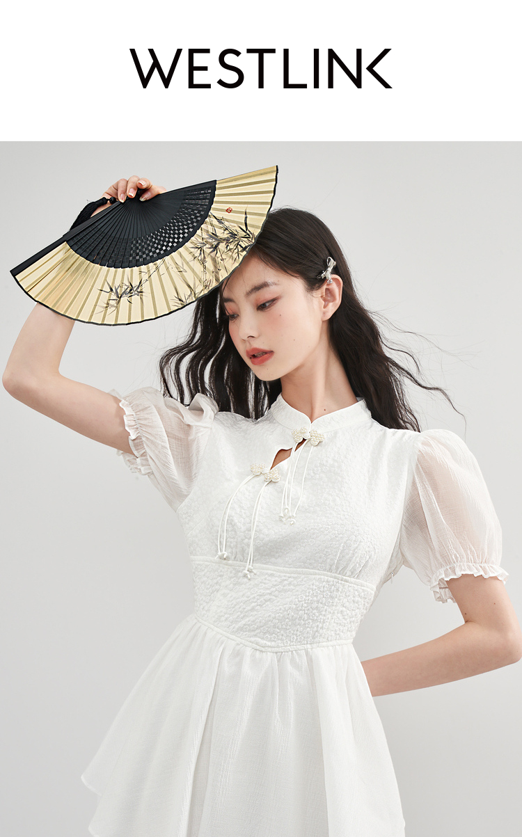 西遇中式旗袍裙女春季新款改良中国风设计感镂空收腰茶歇裙D0830377