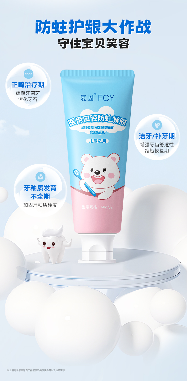 复因FOY 医用口腔防蛀凝胶 60g/支 儿童款 防蛀牙膏