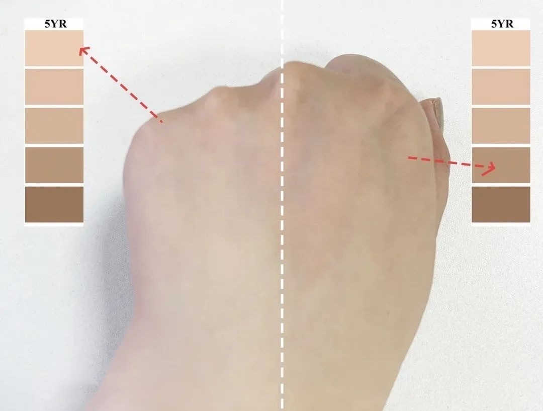 在一半的手背上涂上兰蔻防晒