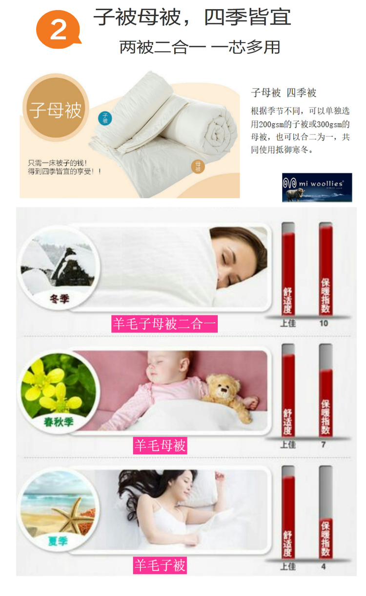 mi woollies 四季子母羊毛被羊毛被 150x200cm 新西兰