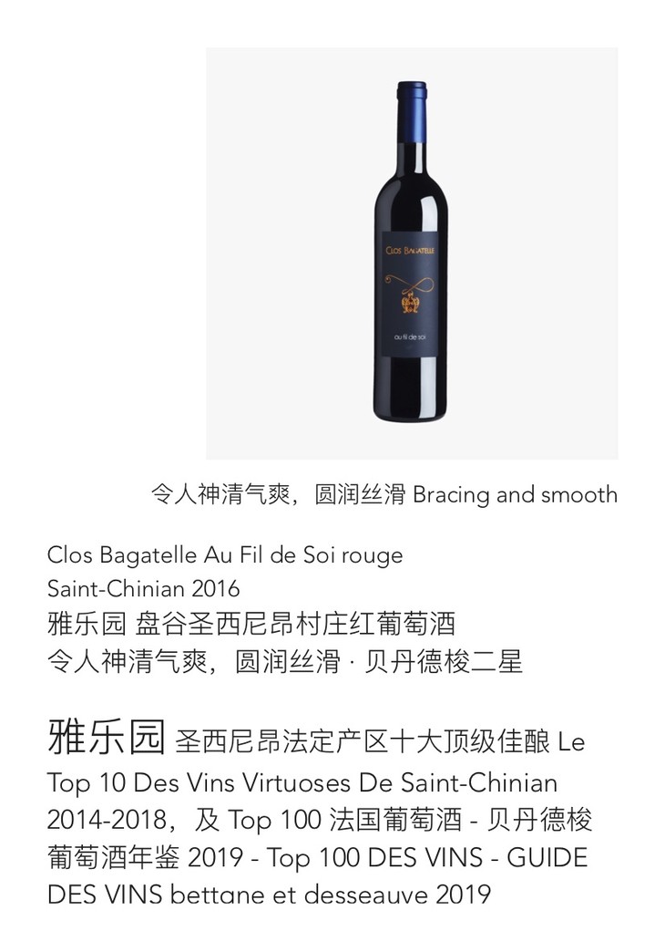 雅乐园 盘谷圣西尼昂村庄红葡萄酒 Clos Bagatelle Au Fil de Soi 2016 - Saint-Chinian - Languedoc