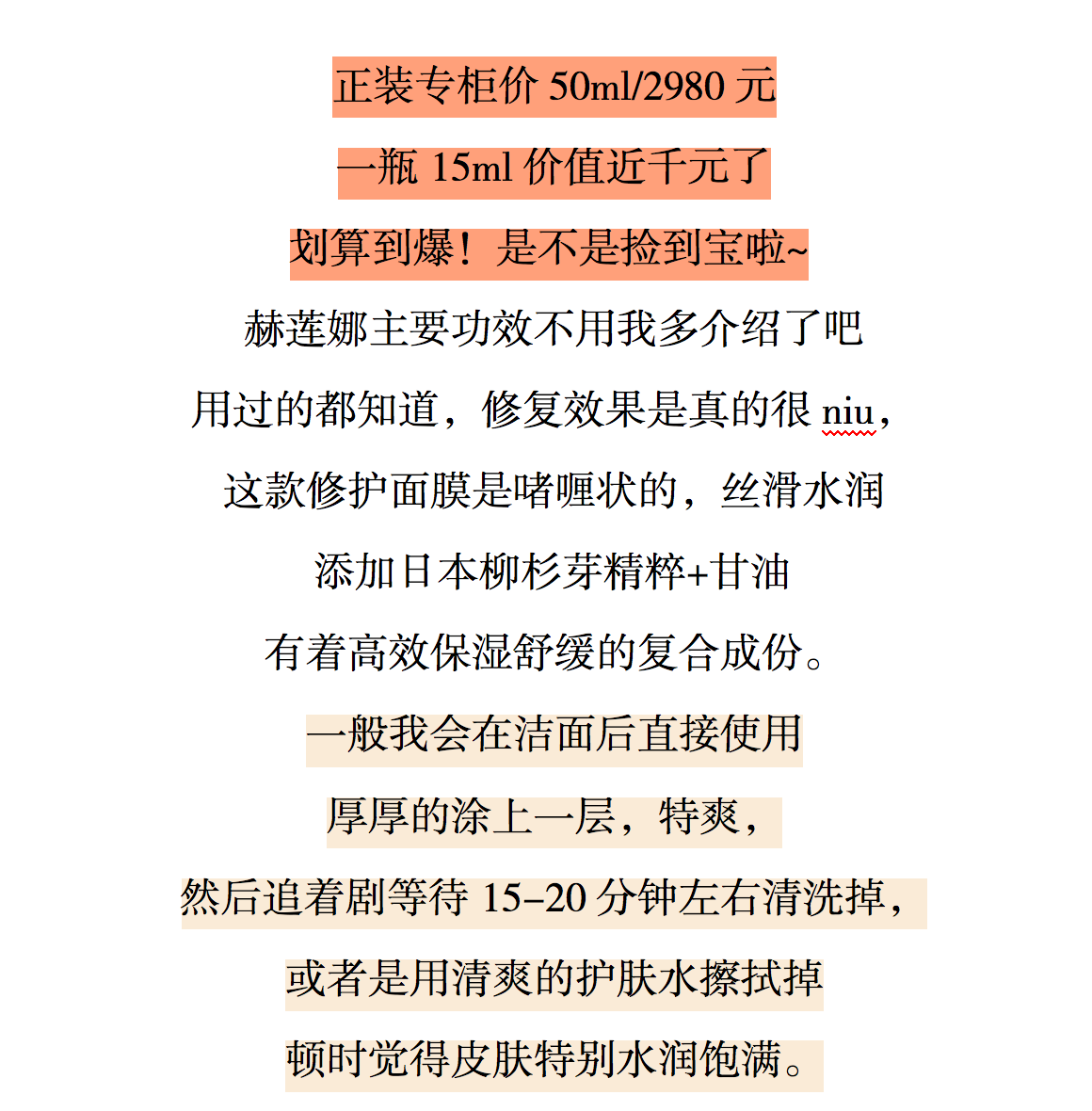 【5.12王炸割肉价】HR赫莲娜白绷带修护水凝面膜&面霜15ml(厚涂面膜薄涂面霜)(效期至25年后)