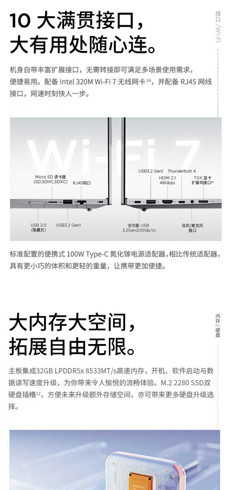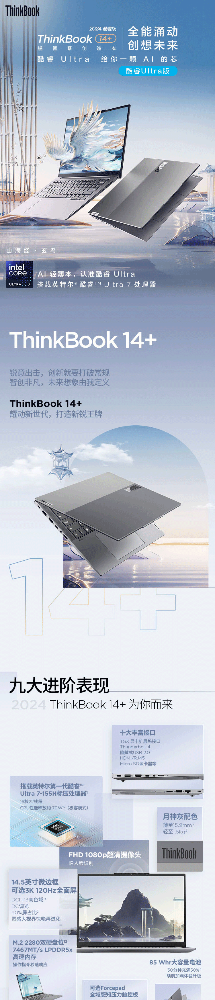 ThinkBook14+02CD | UItra7-255H/32G/1TSSD/核心显卡(Intel Arc140T)/Wifi7/摄像头/14.5"3K/Win11 |