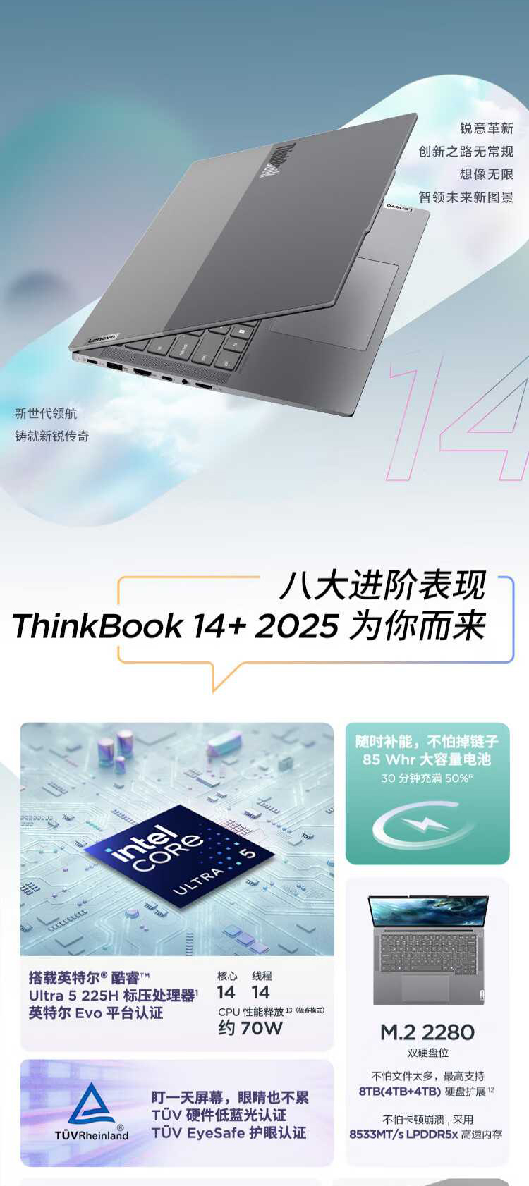 ThinkBook14 8DCD | UItra5-225H/32G/1TSSD/集显/Wifi7/摄像头/14"2.8K/Win11 |