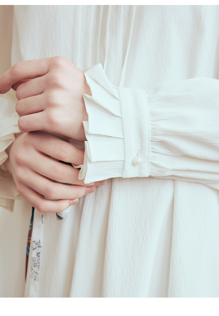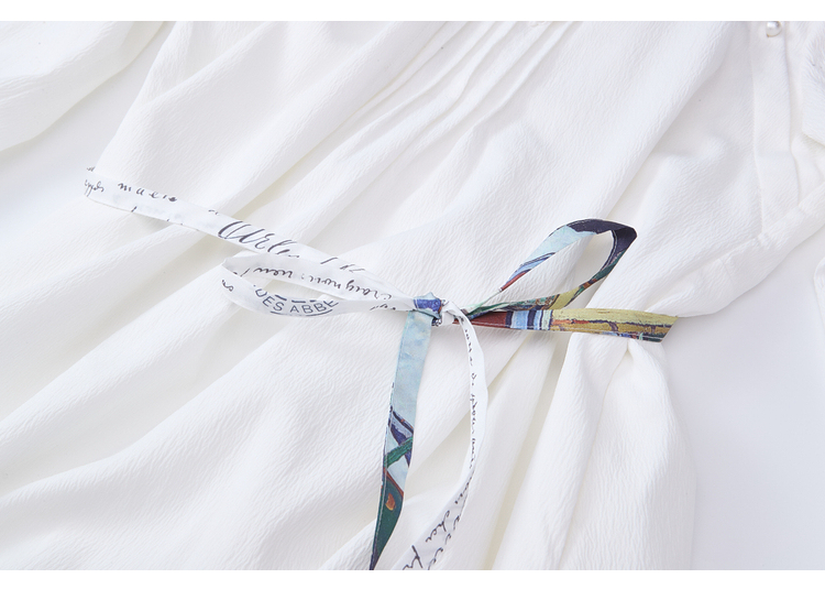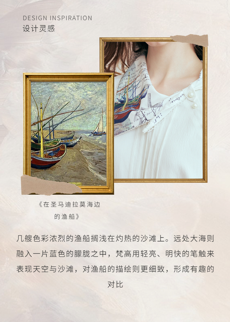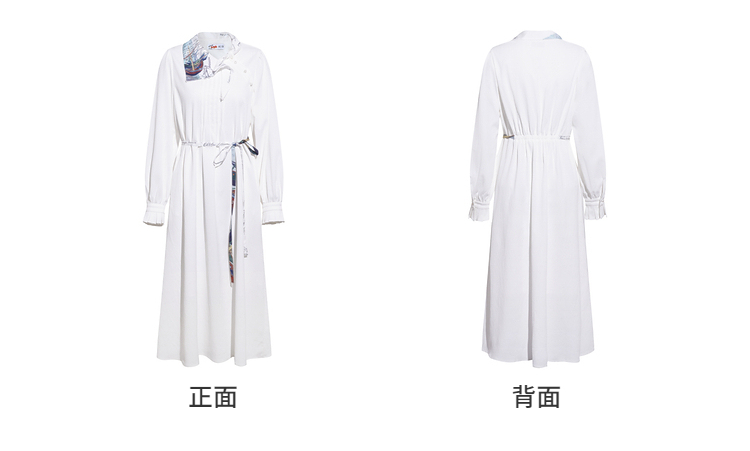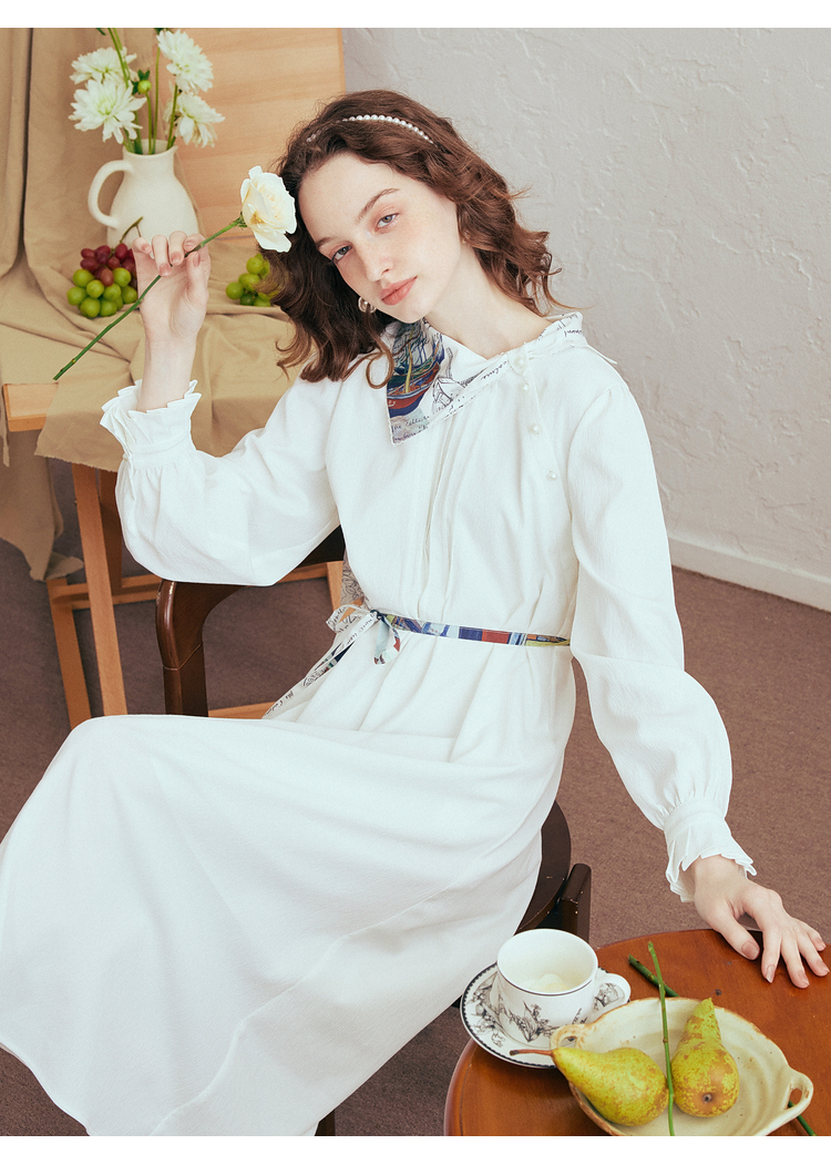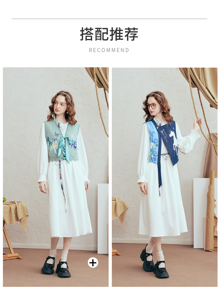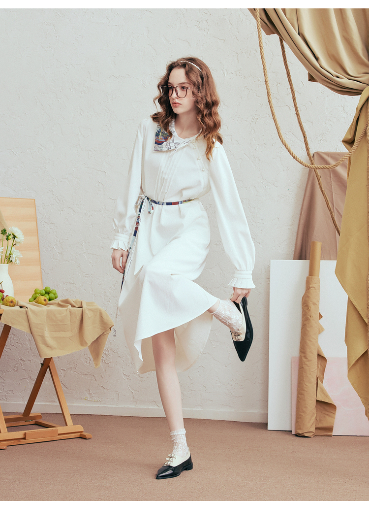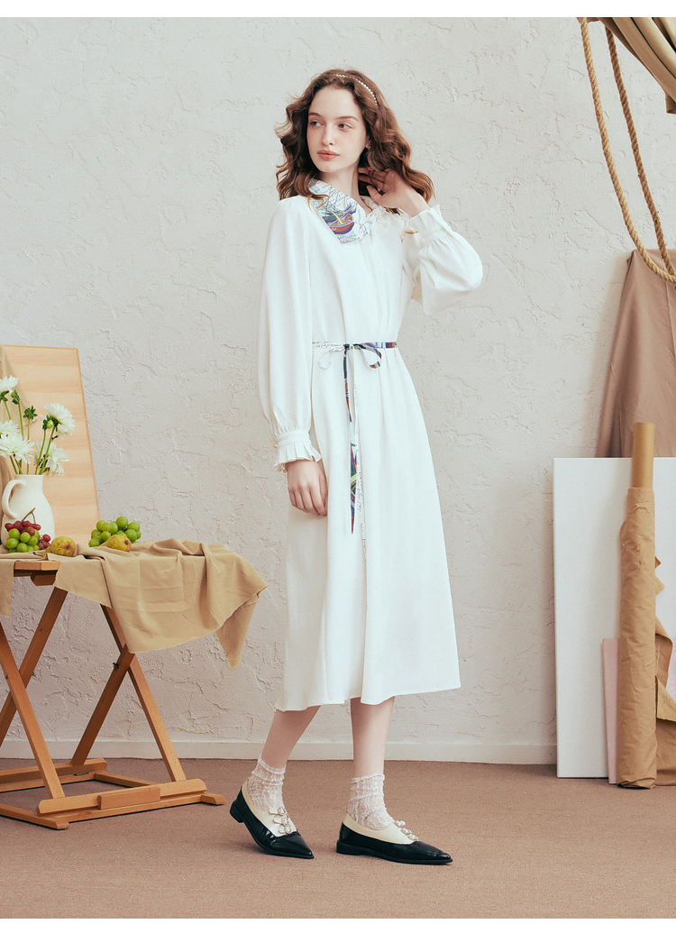 两三事梵高文艺私语时光2026春季新款印花三角巾领斜边纽扣连衣裙