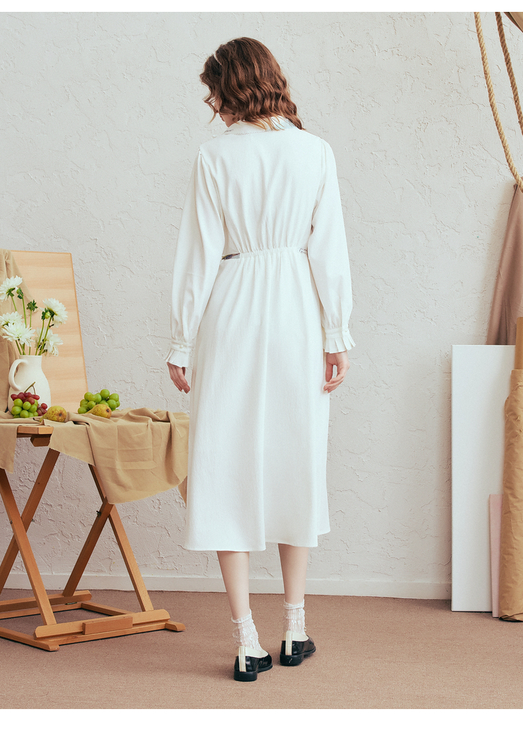 【限时秒杀89/不退换,介者慎拍】两三事秋季新款文艺风抽绳收腰灯笼袖连衣裙