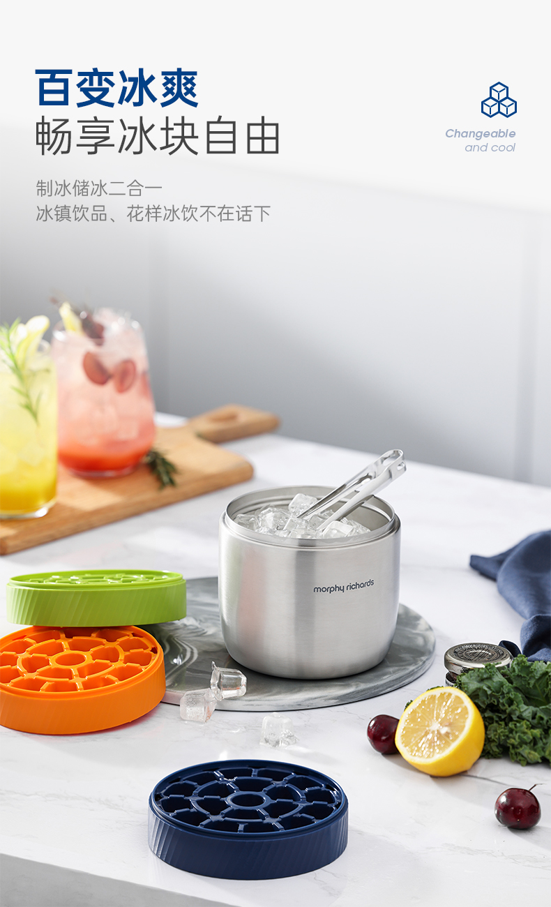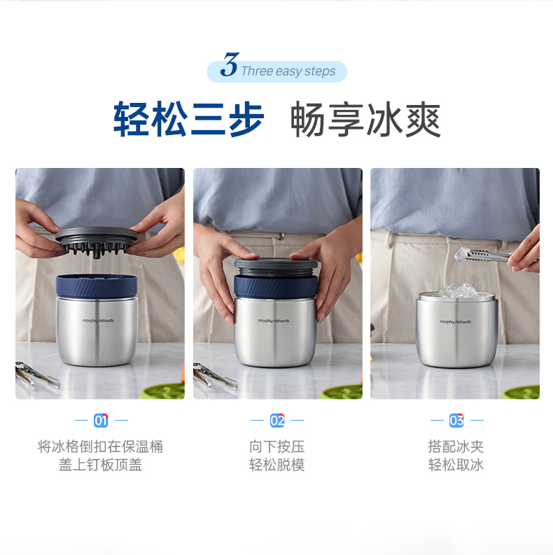 【摩飞制冰保温桶】不锈钢冰桶大容量冰块模具储冰制冰盒带盖三层冰格