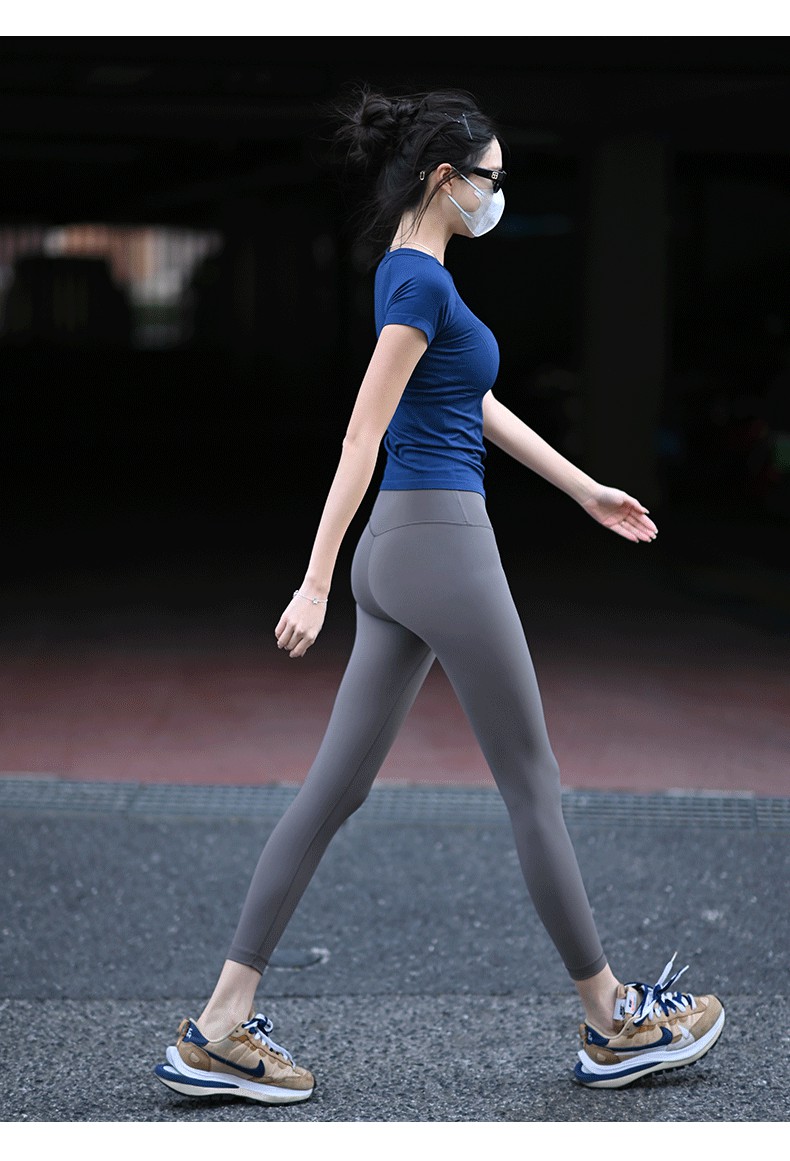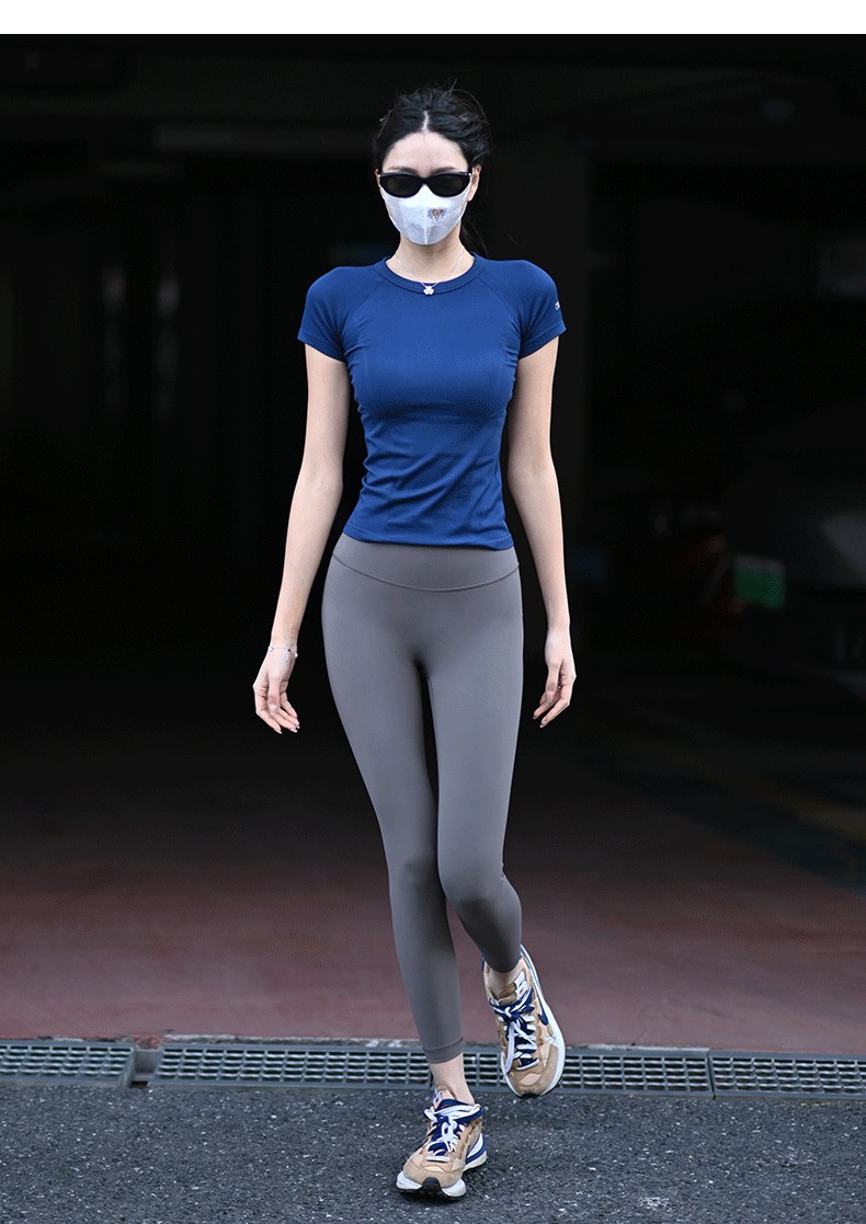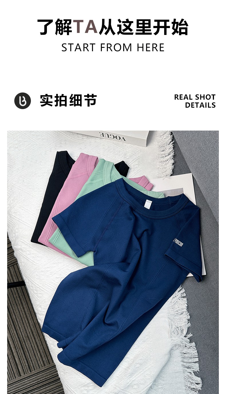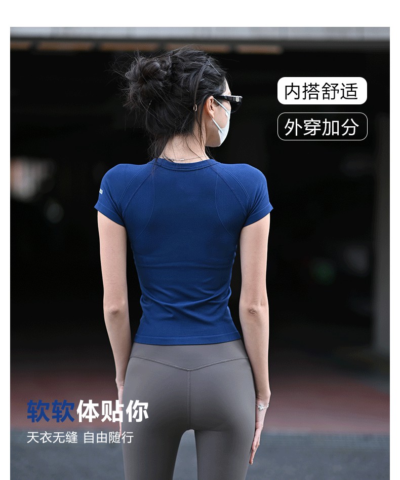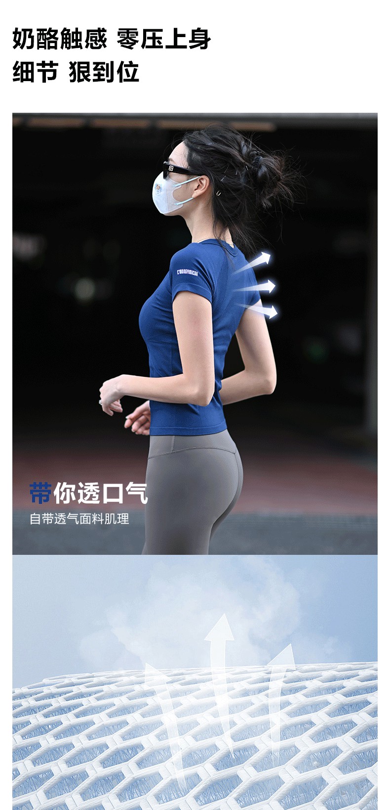 Beemen无缝一体织 遮肚子短袖运动T恤 小网孔透气短袖 字母反光 夜间更安全 健身跑步外穿 舒适瑜伽上衣