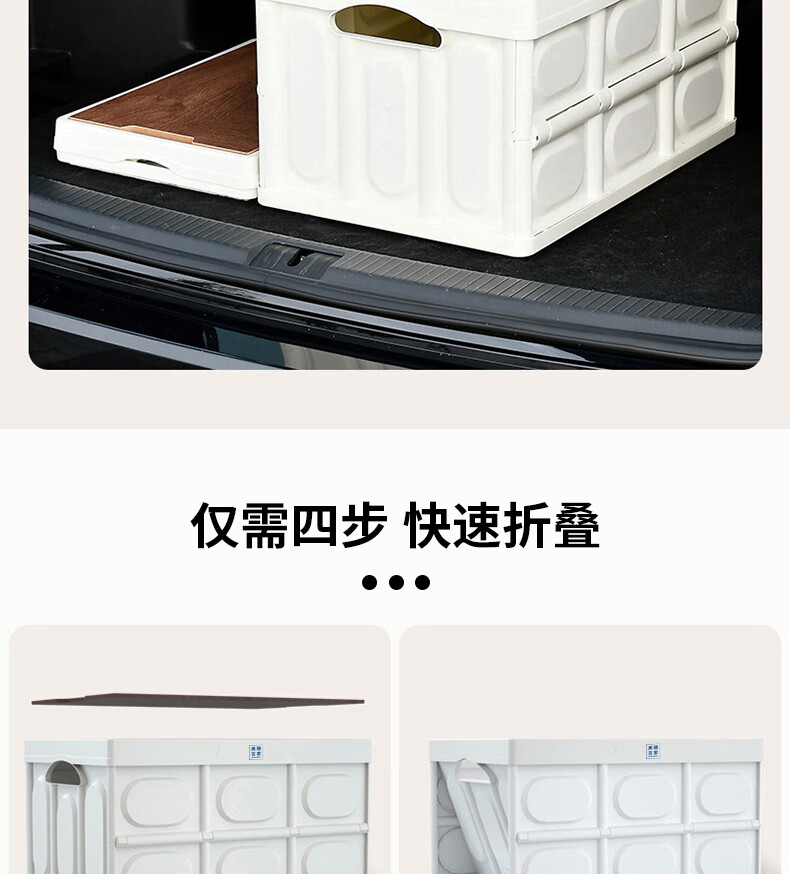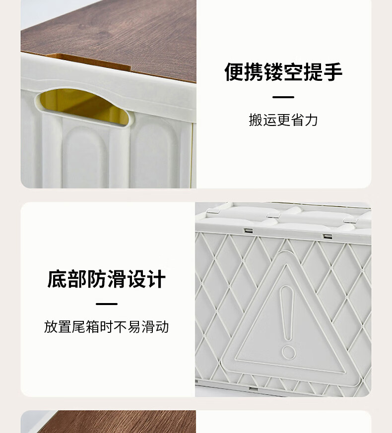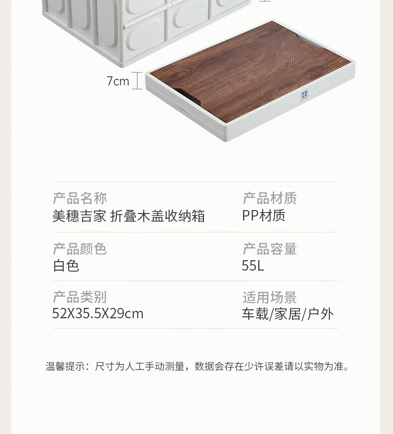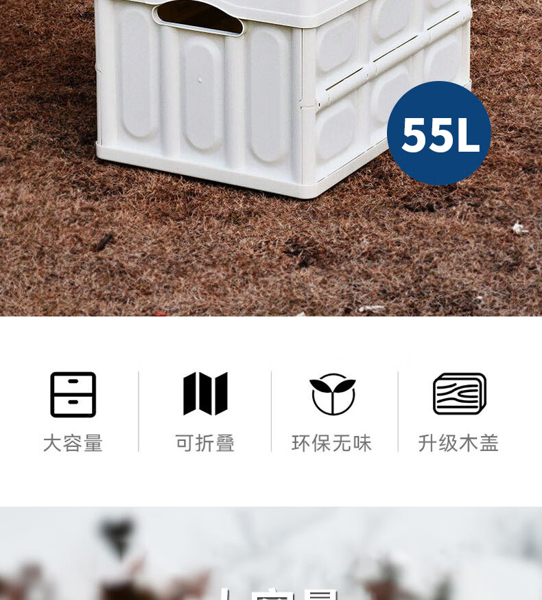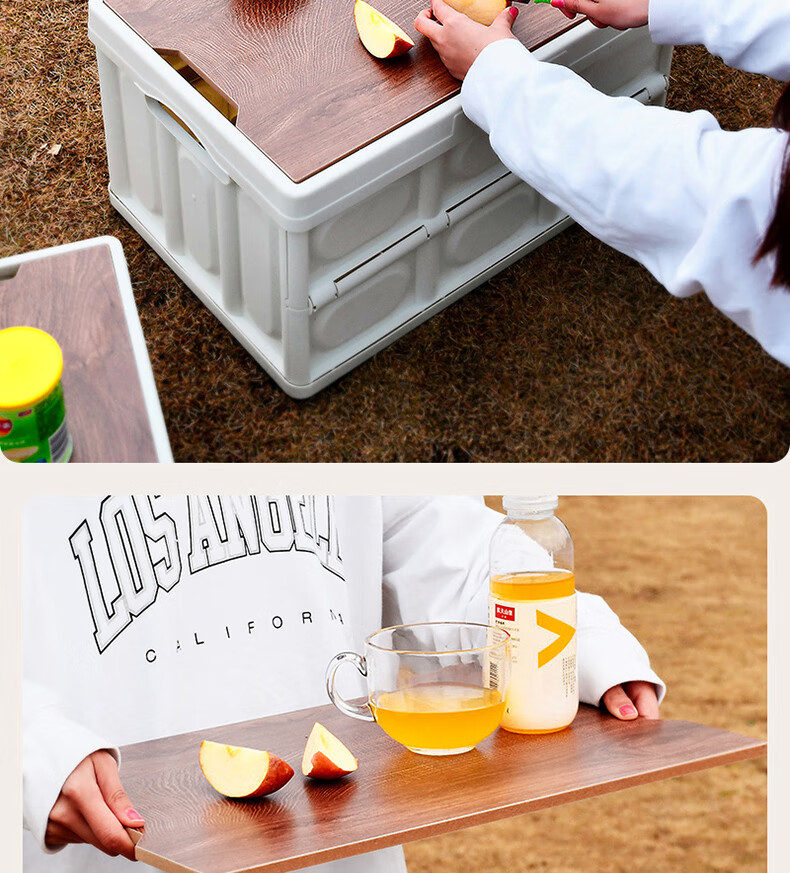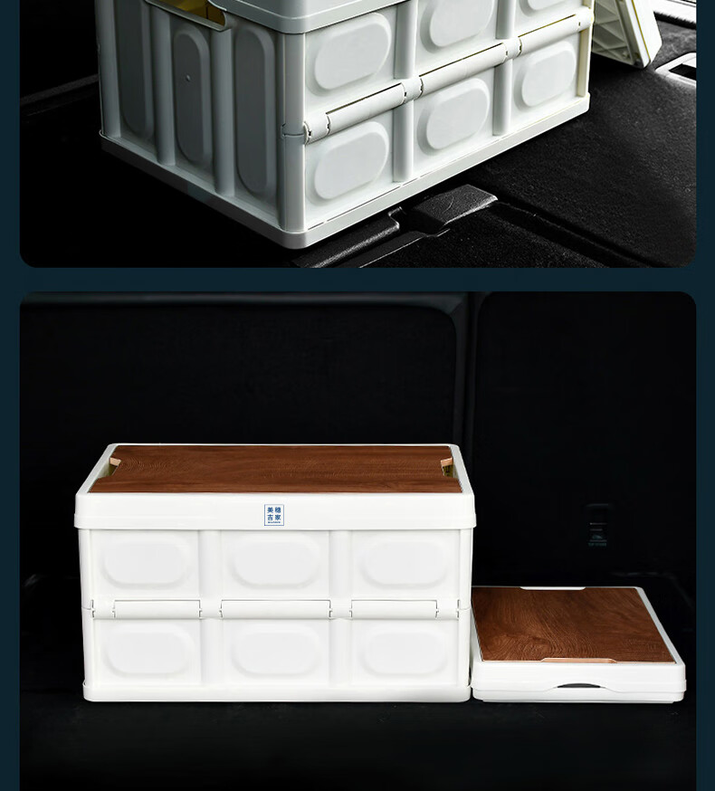 美穗吉家(mihooce)木盖便携折叠箱露营收纳箱户外折叠箱收纳箱子 木纹白55L