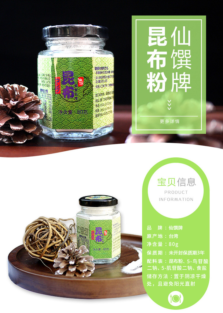【仙馔】昆布粉调味粉80g/瓶 植物提取 味道鲜美 炒菜煲汤增鲜助伴
