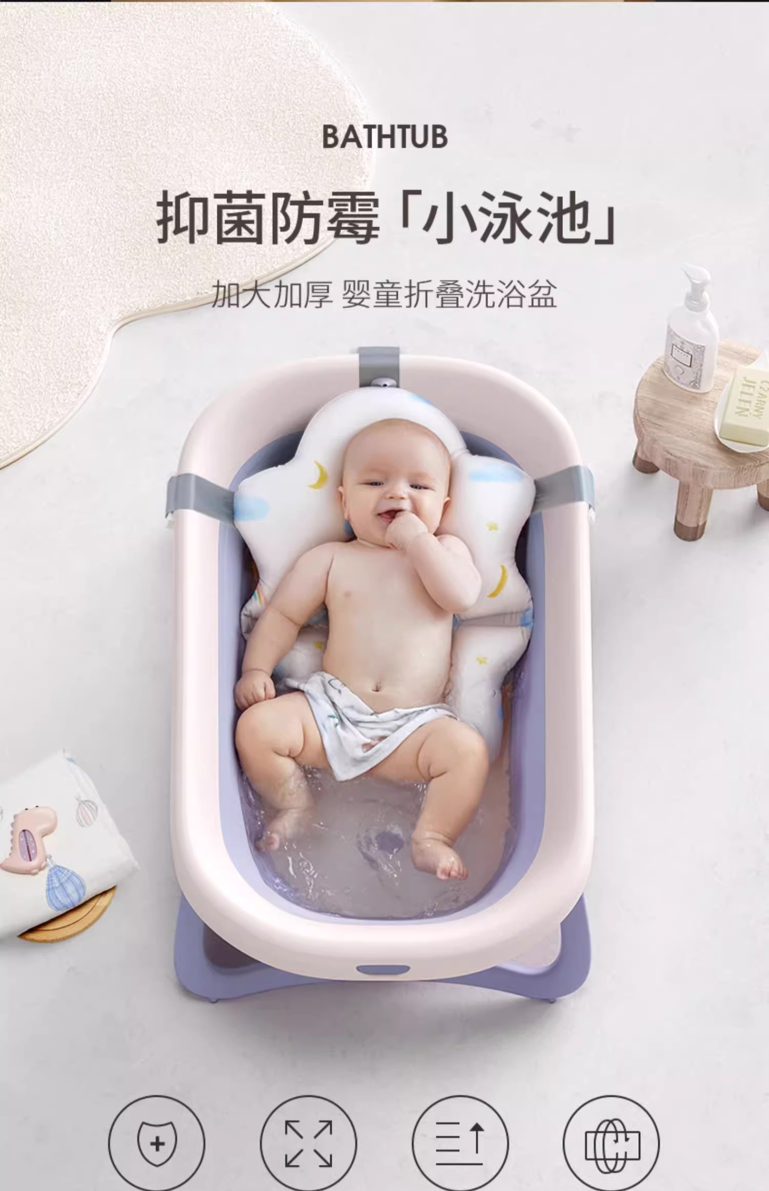 【洗浴用品】嫚熙折叠浴盆婴儿洗澡盆用品沐坐躺新生宝宝儿童小孩浴盆