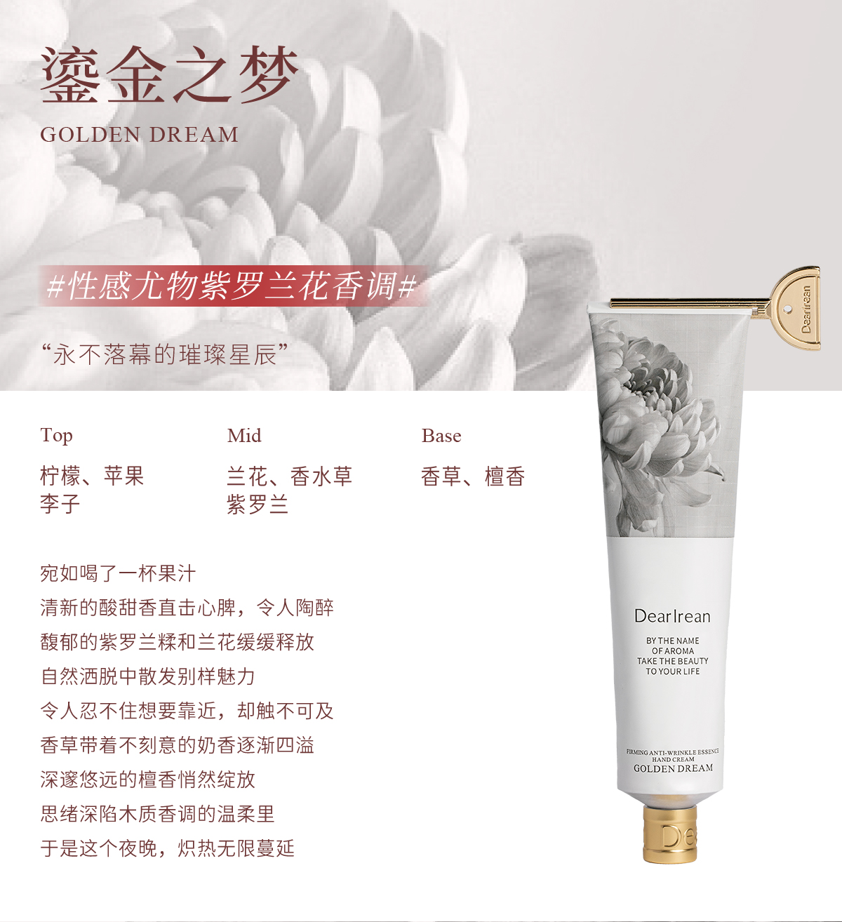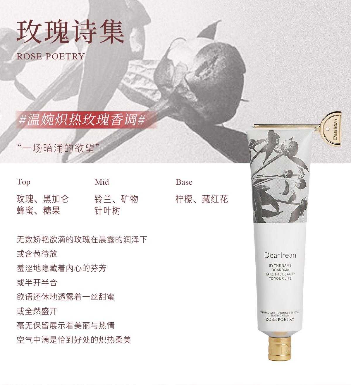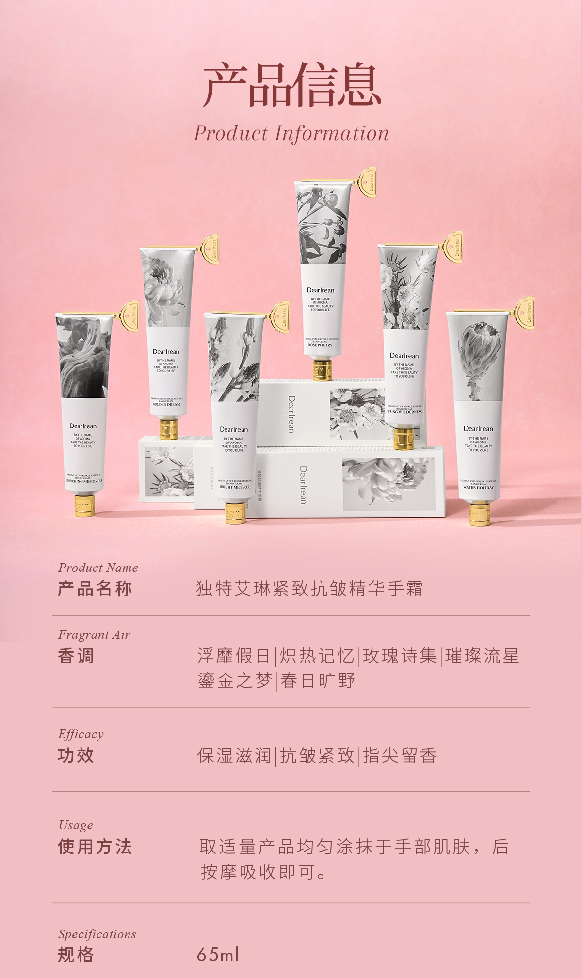 【侯明昊同款】DearIrean 独特艾琳香氛水润保湿抗皱紧致馥郁留香精华护手霜65ml(官方自营)