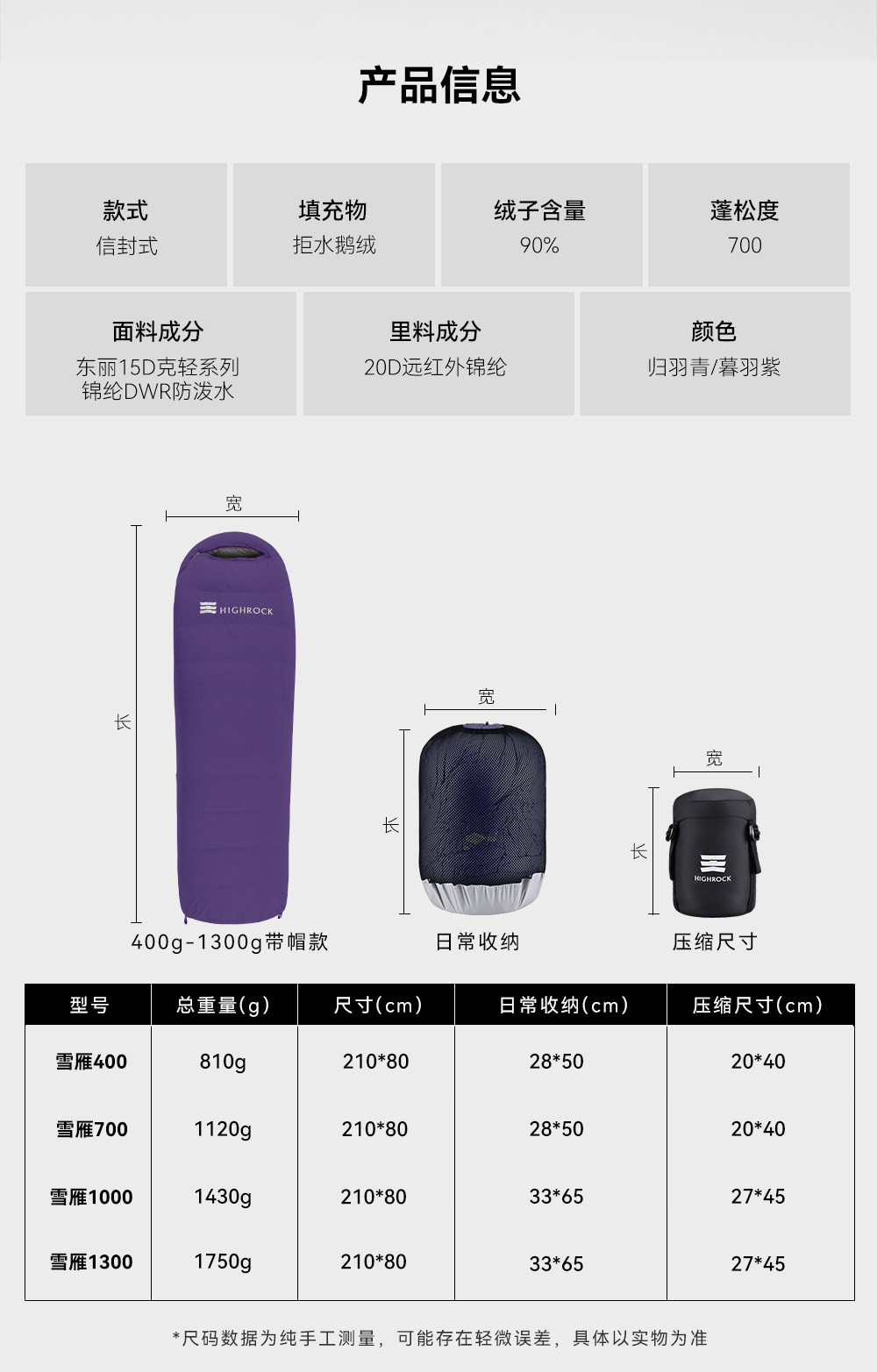 天石雪雁鹅绒睡袋户外徒步防寒信封式保暖羽绒便携式