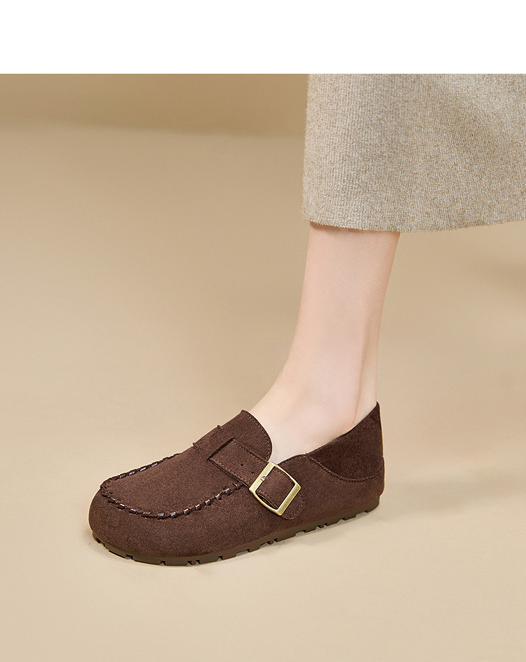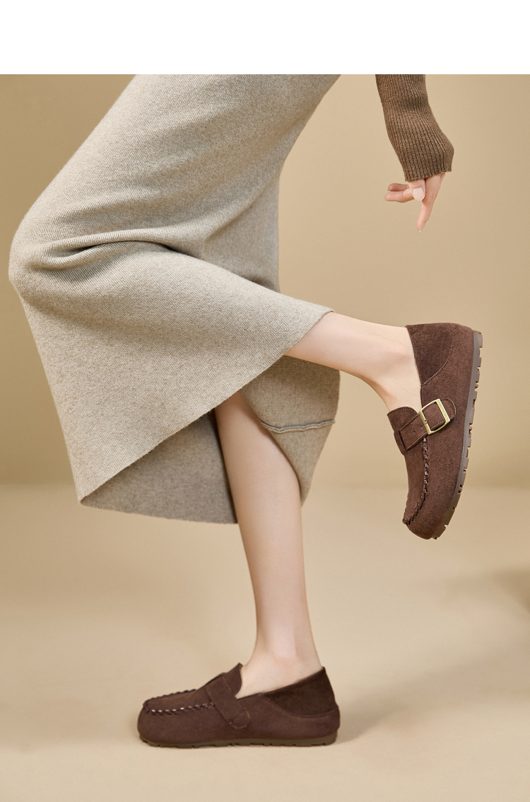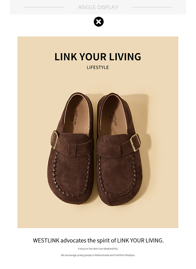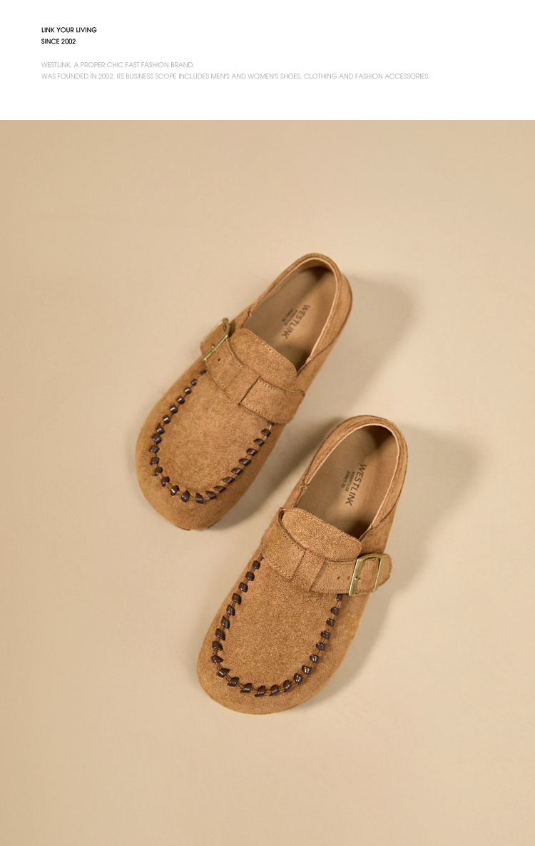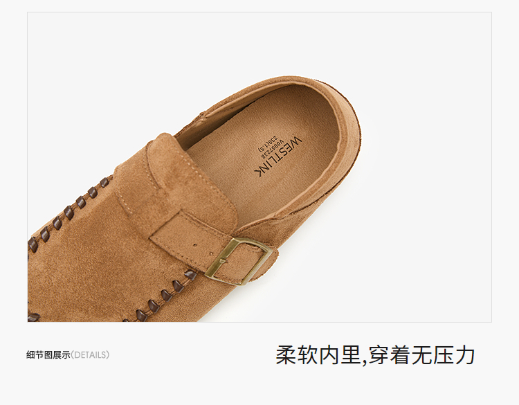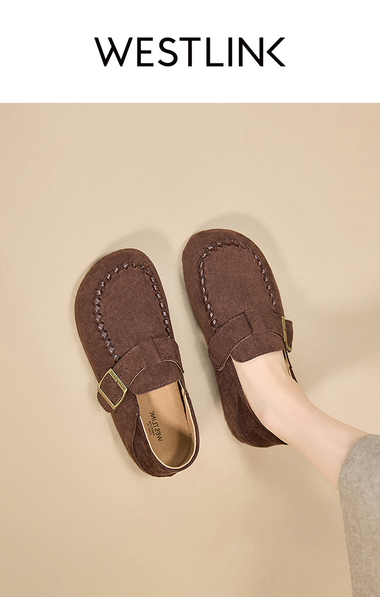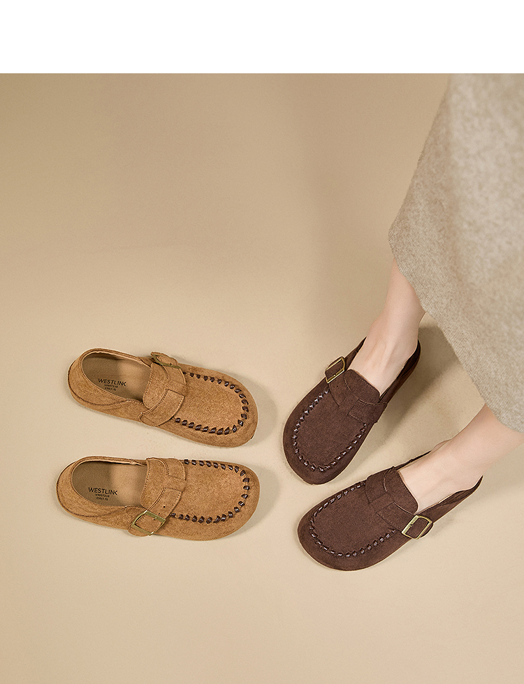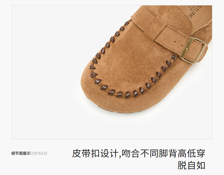 西遇平底勃肯鞋女新款秋季复古休闲一脚蹬全包单鞋豆豆乐福鞋V0057238