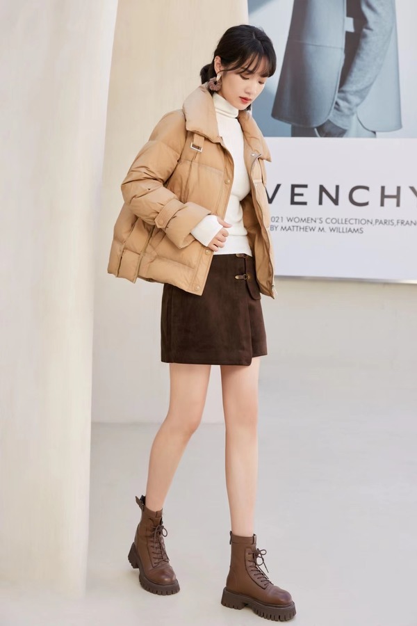 LNNNS 浅卡其色简约大方短款羽绒服外套 17452