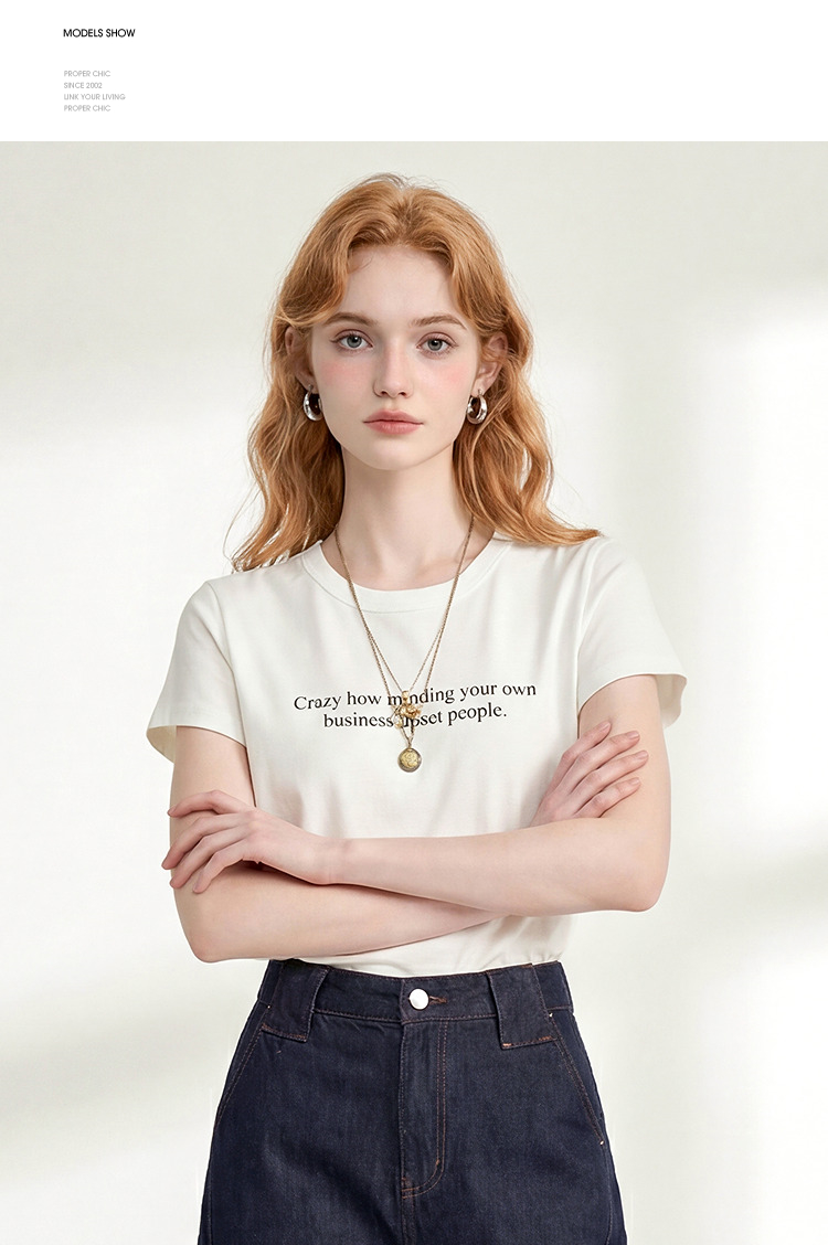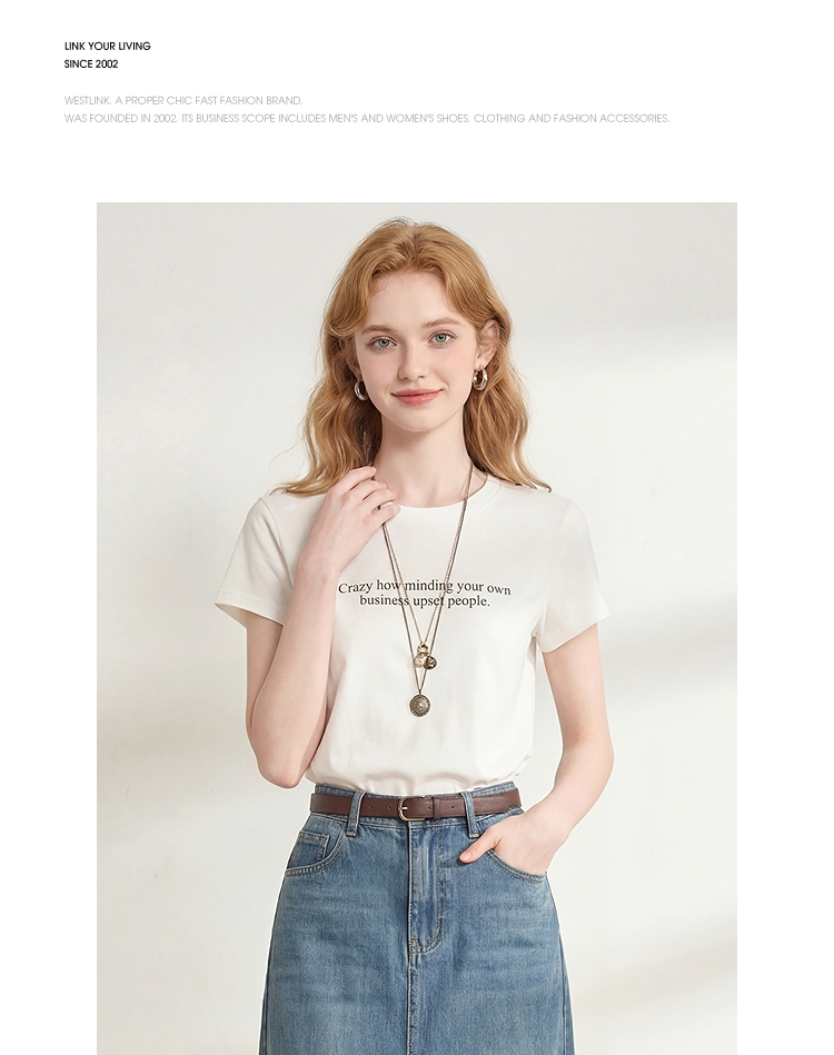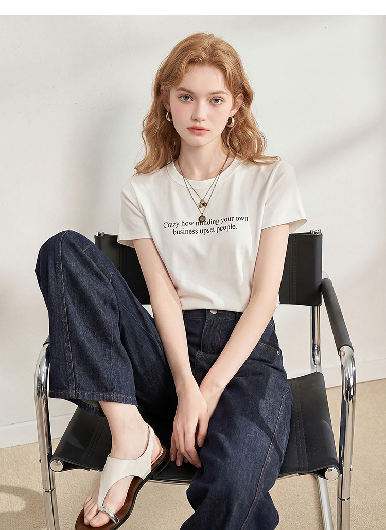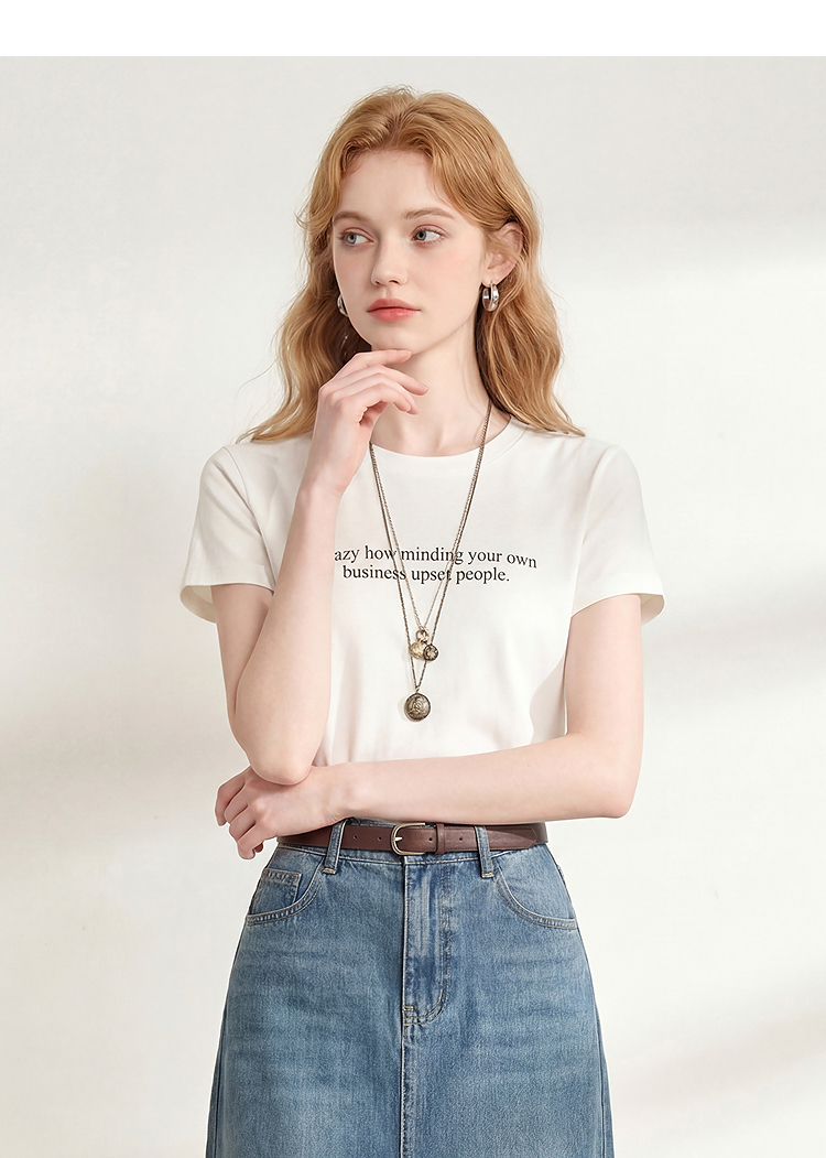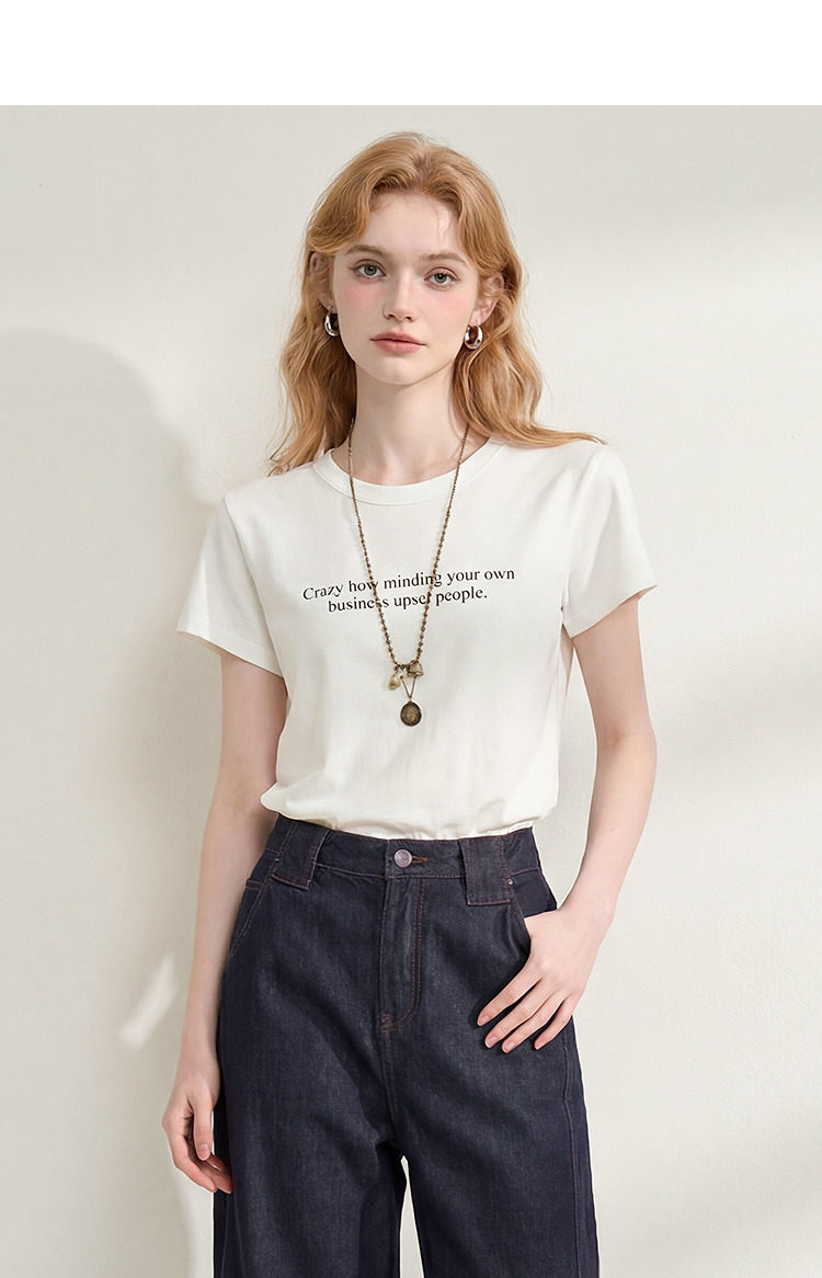 西遇美式薄款微透2026夏正肩新款字母印花修身百搭短袖辣妹白T恤H0060233