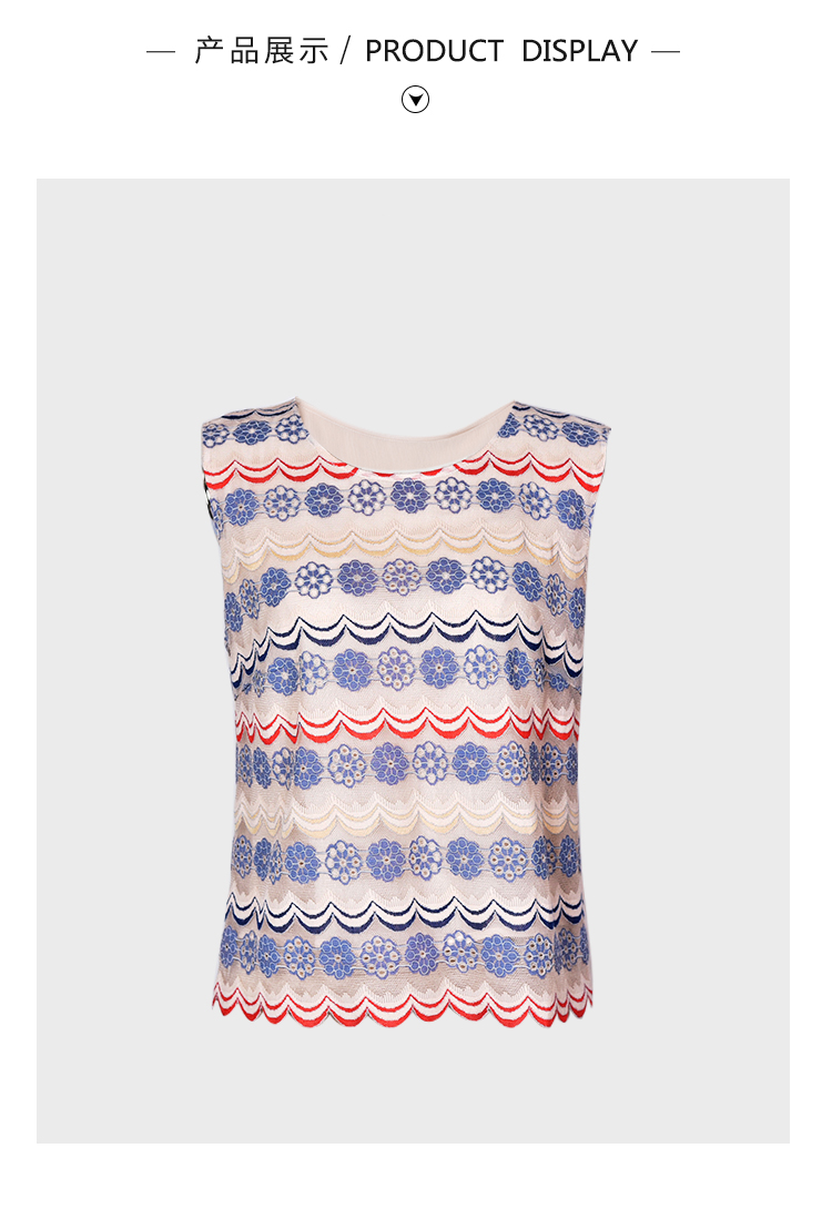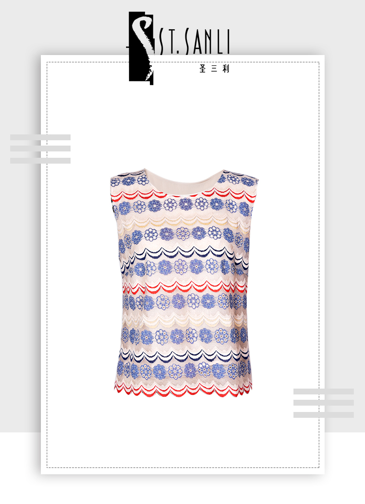 圣三利女装新夏季拼接修身款蕾丝镂空上衣,背心SL2013117