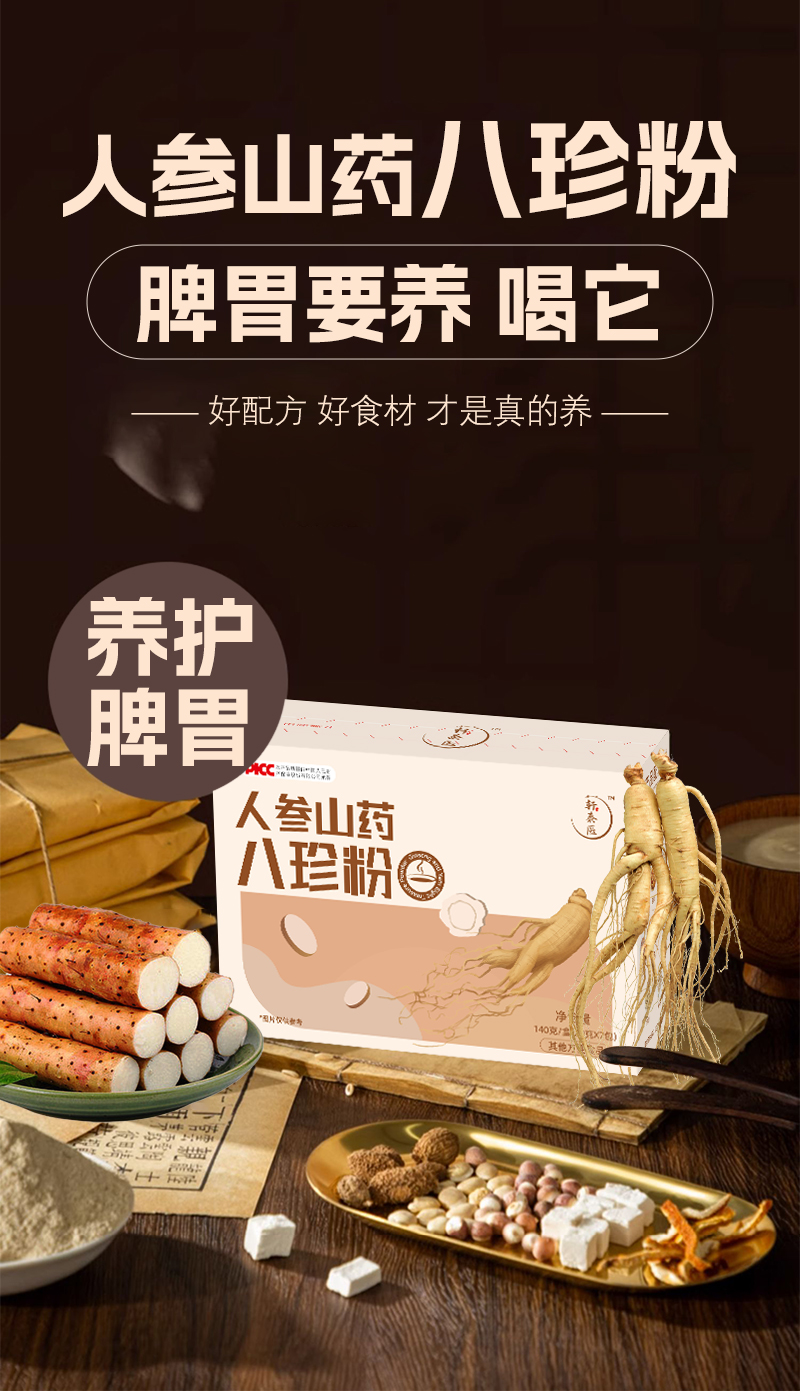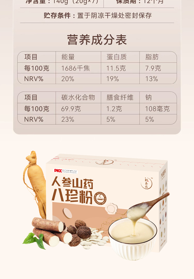 【买3送1】轩泰医人参山药八珍粉 温县垆土铁棍山药制作140g/盒(20g*7包)