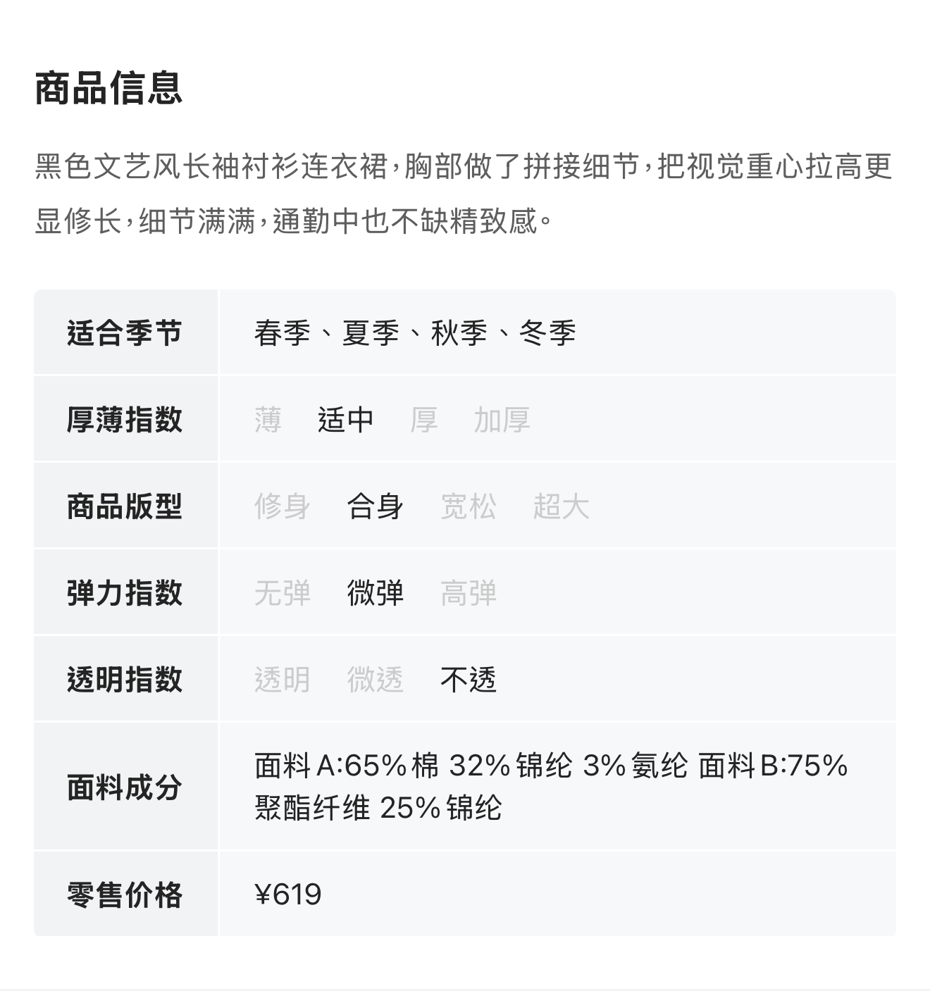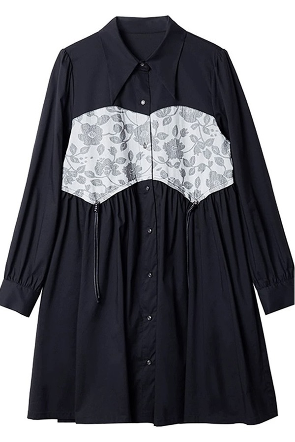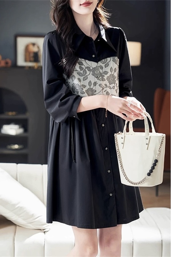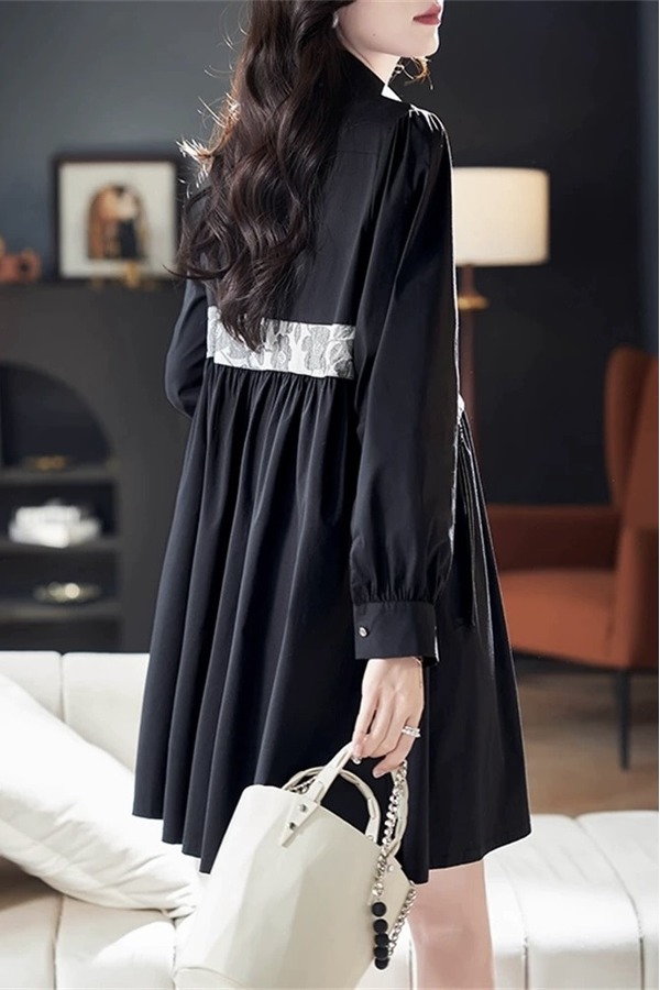 Le Malene 黑色文艺风长袖衬衫连衣裙 20755