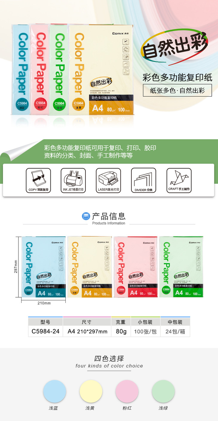 齐心彩色复印纸C5984/C5984-80克 A4 80克