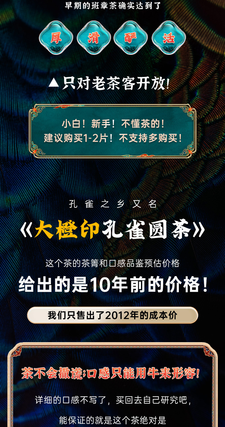 【藏剑山庄】 2012年纯干仓原料 郭女士出品《藏剑大橙印》孔雀班章!357克/片 预定7片赠1片!