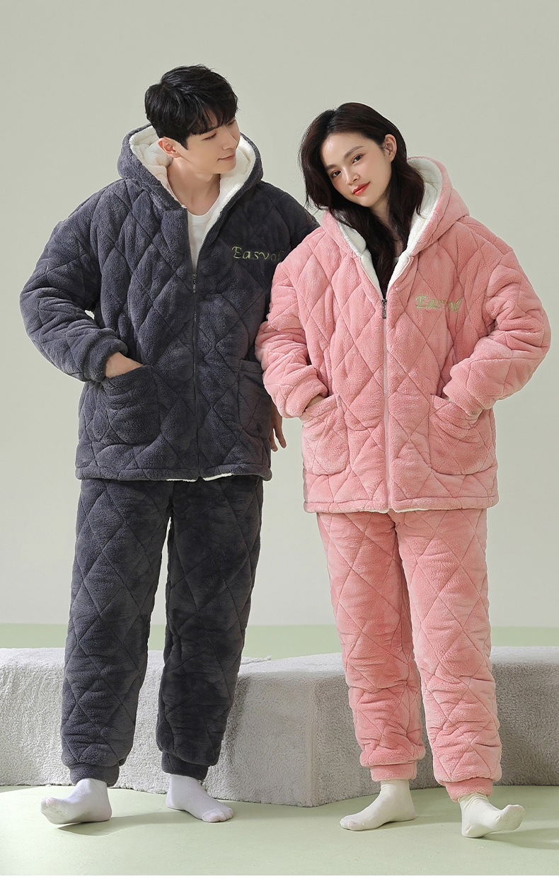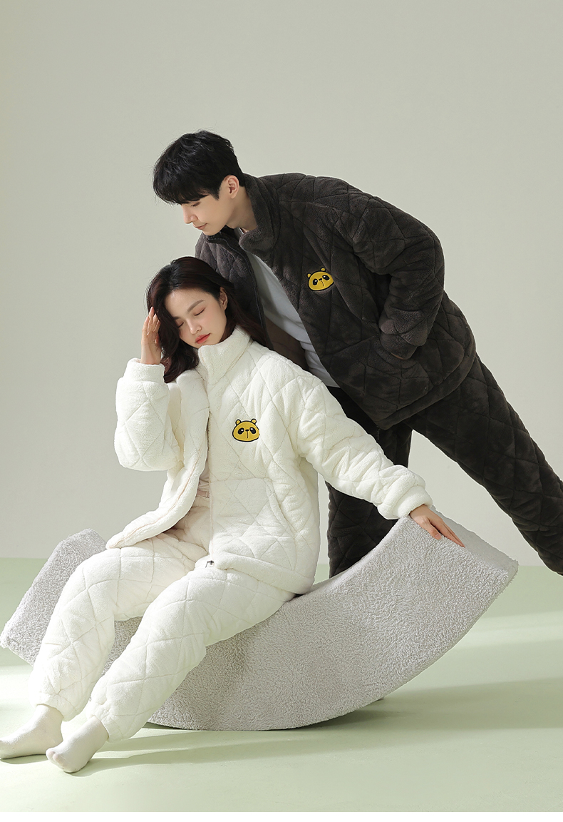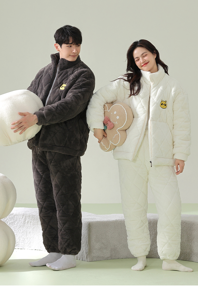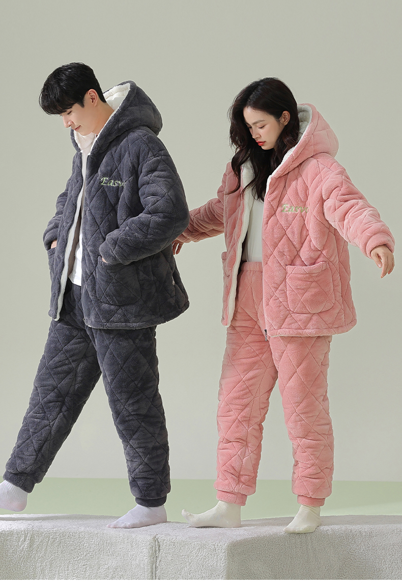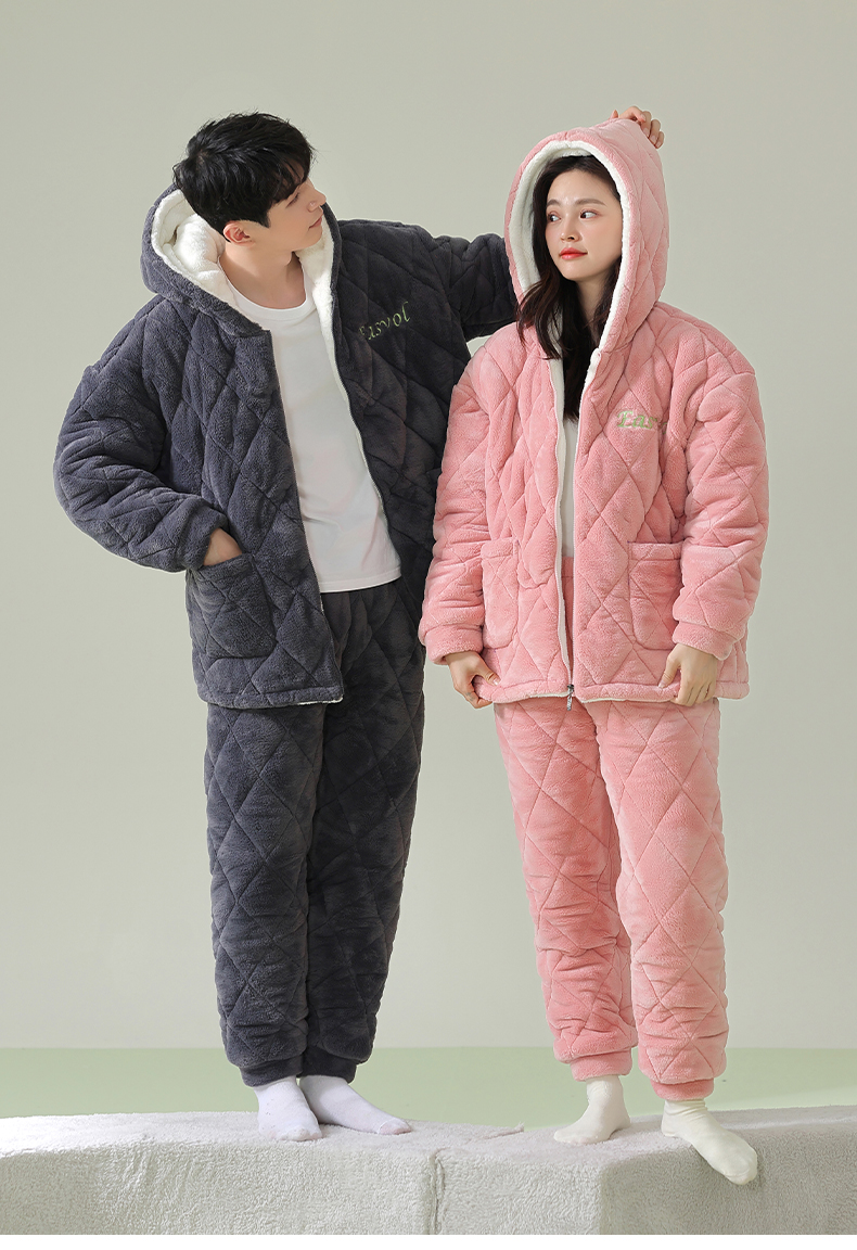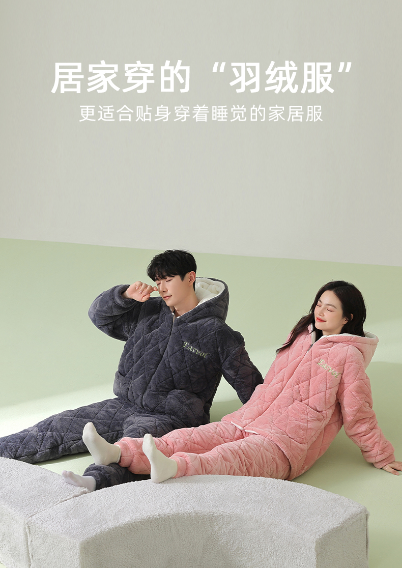 【夹棉暖衣】自然醒「怦然心动」贵妃绒三层加厚夹棉情侣睡衣冬季保暖珊瑚绒家居服女大码男士套装JLM