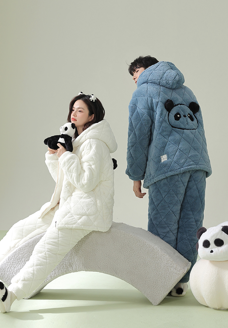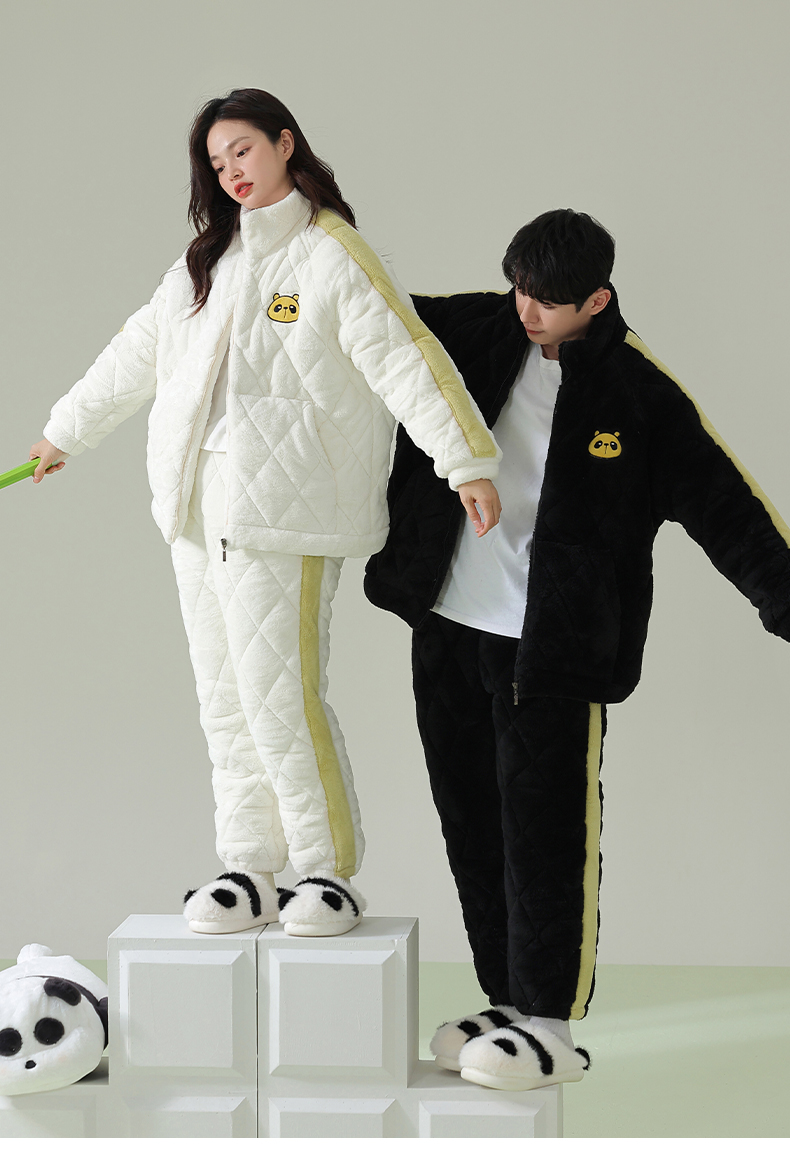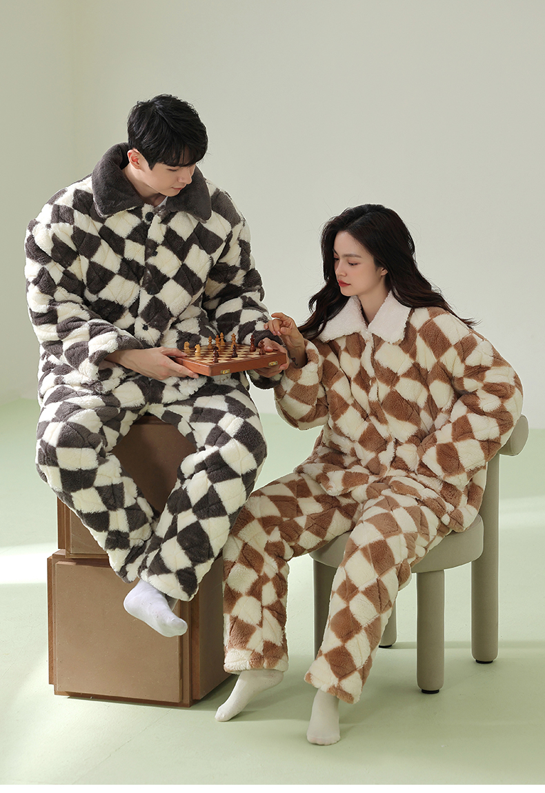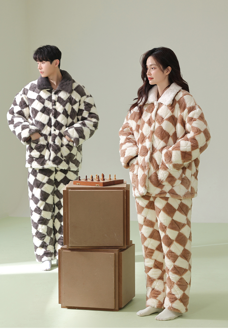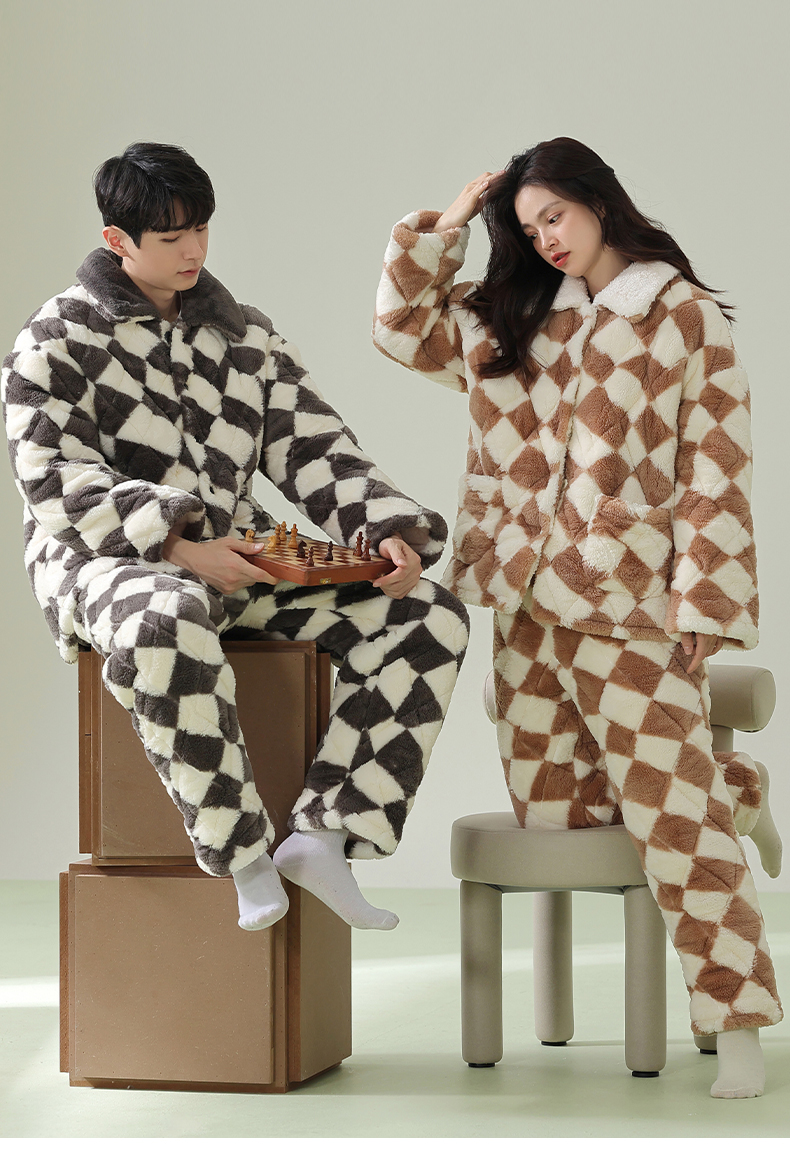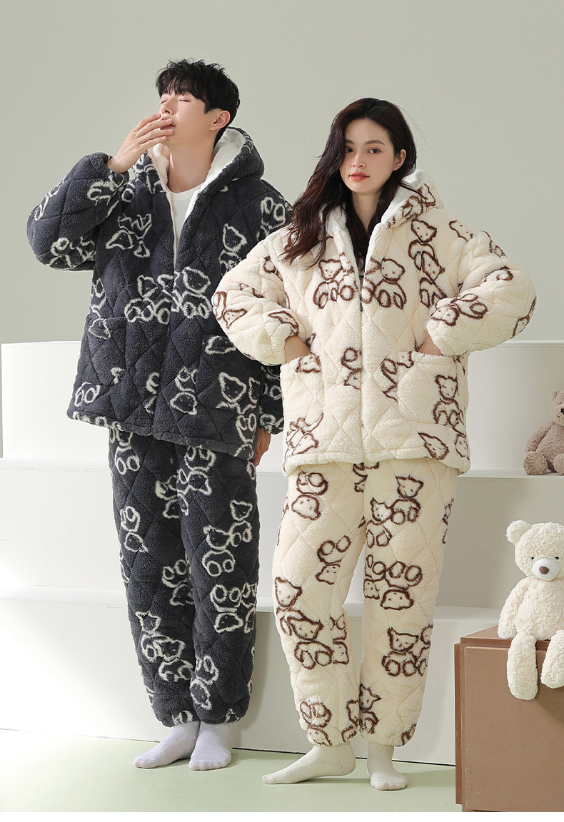 【夹棉暖衣】自然醒「怦然心动」贵妃绒三层加厚夹棉情侣睡衣冬季保暖珊瑚绒家居服女大码男士套装JLM