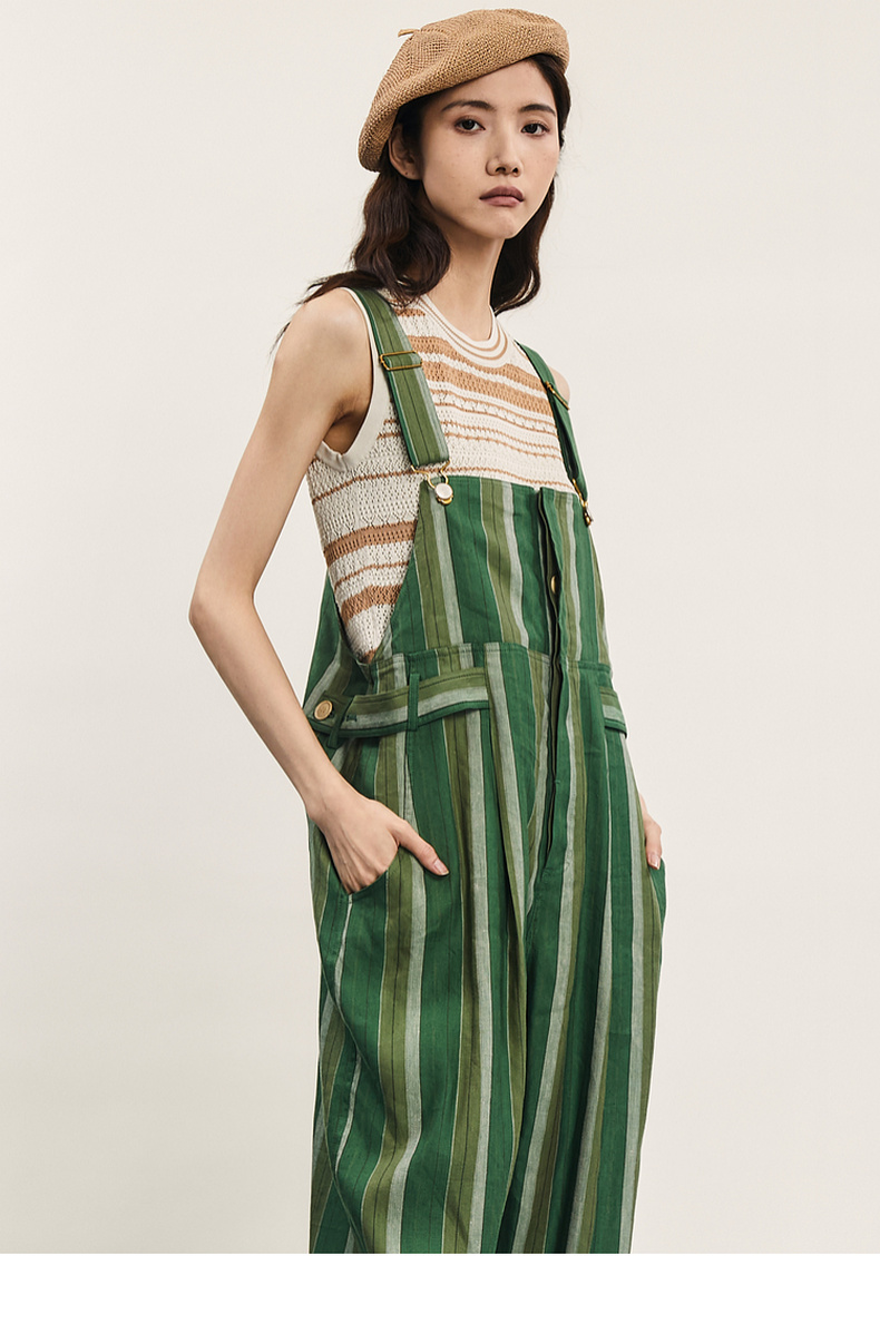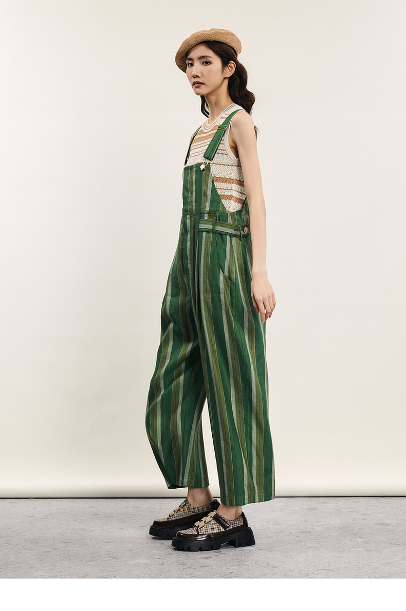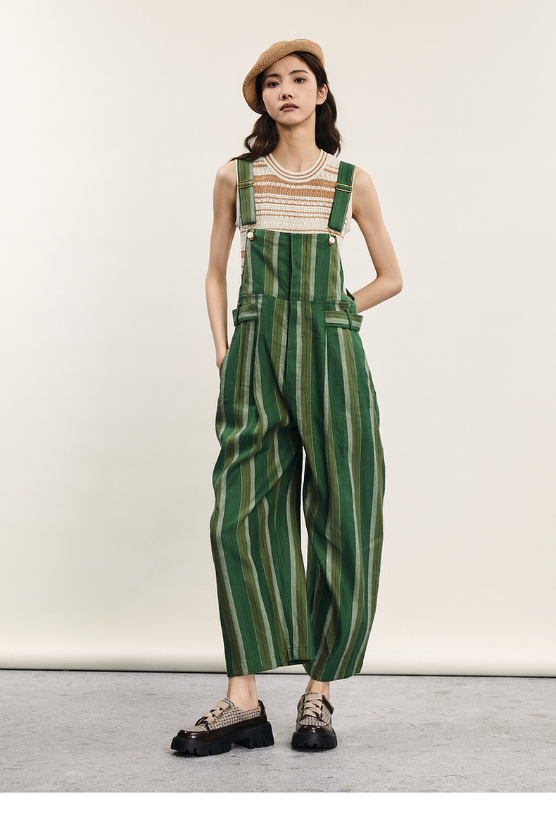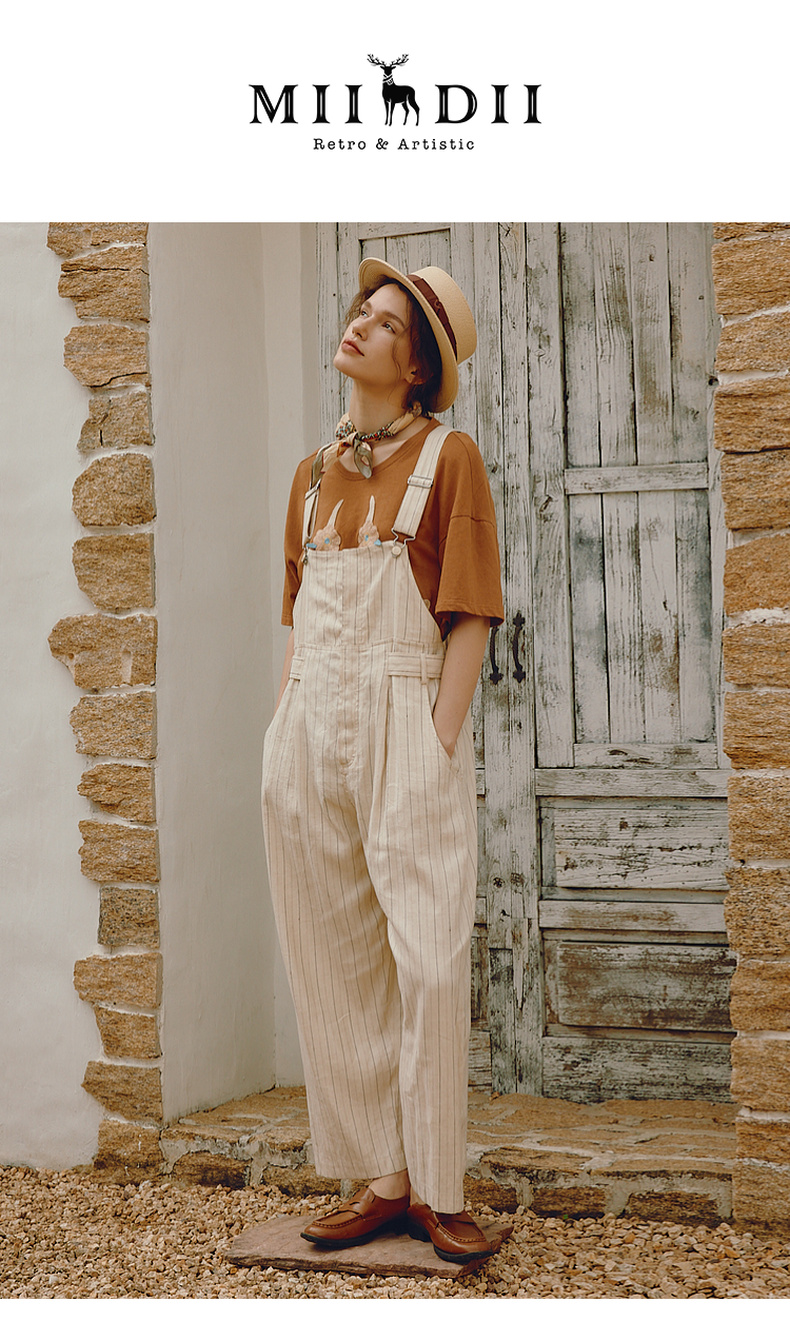 谜底背带裤女士2024年夏季新品复古文艺风宽松直筒长裤242MK0618