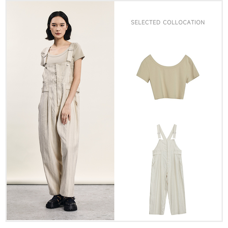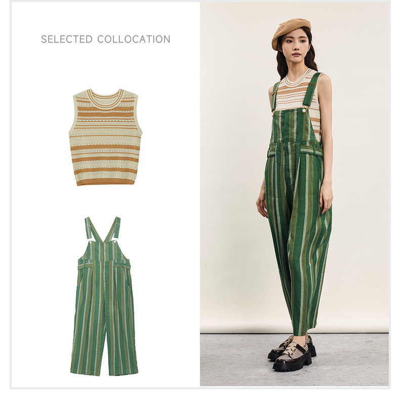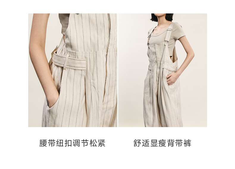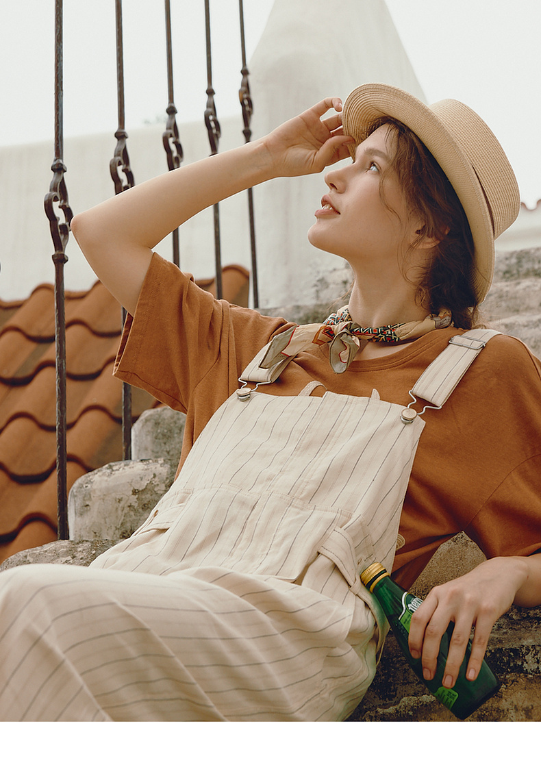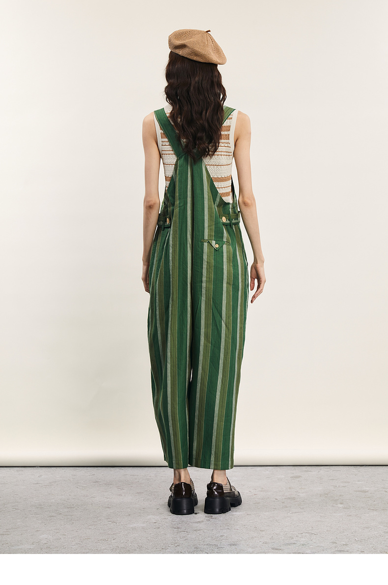 谜底背带裤女士2024年夏季新品复古文艺风宽松直筒长裤242MK0618