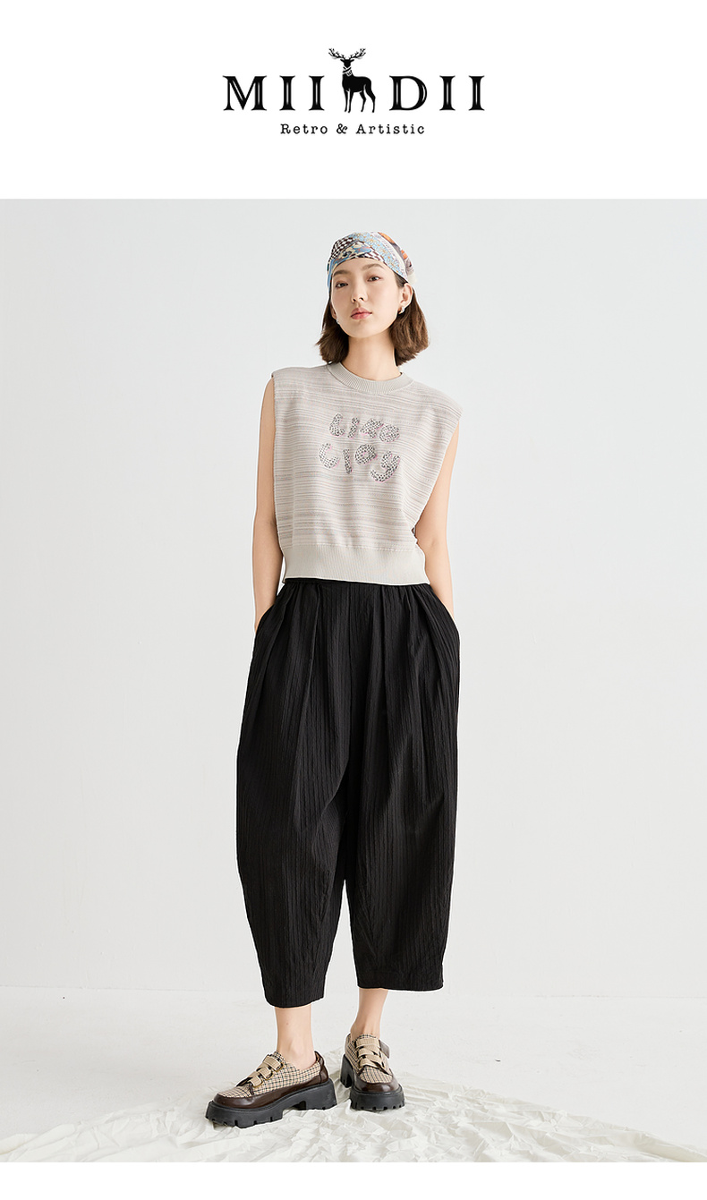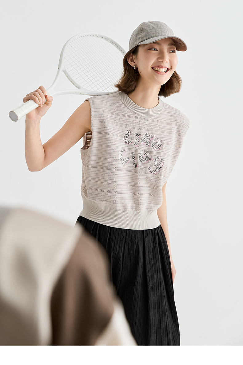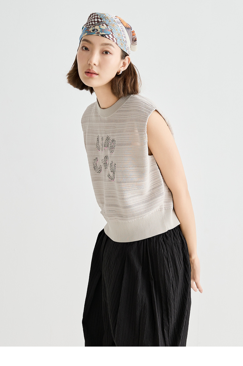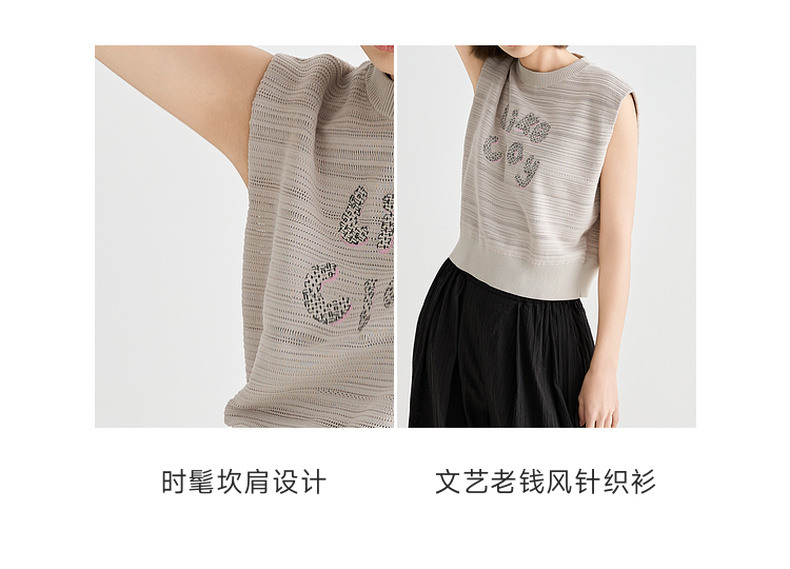 谜底针织衫无袖女2025夏季新品复古文艺宽松H型短上衣252MZ0877