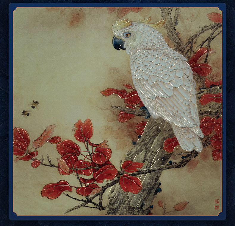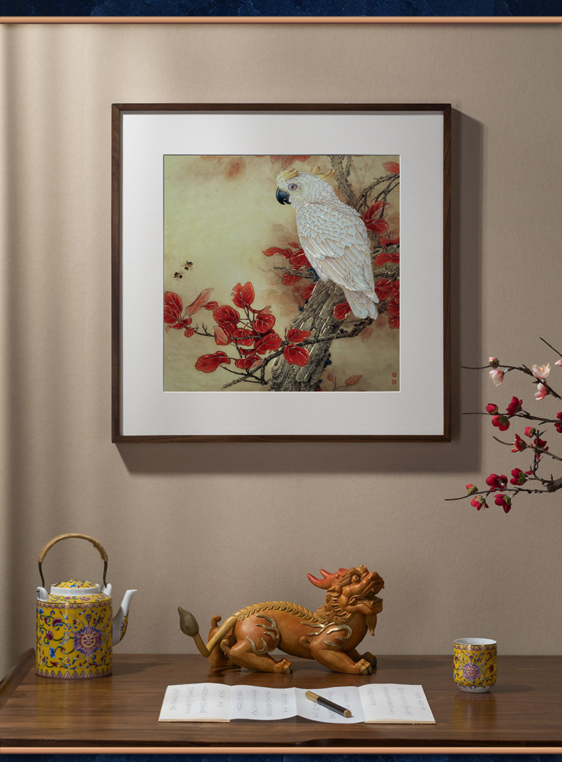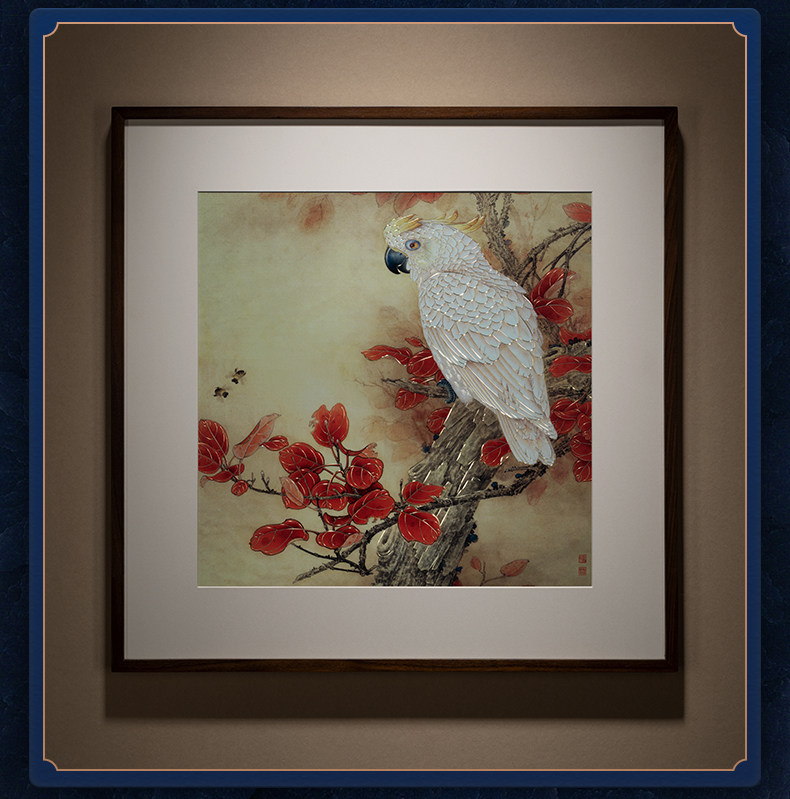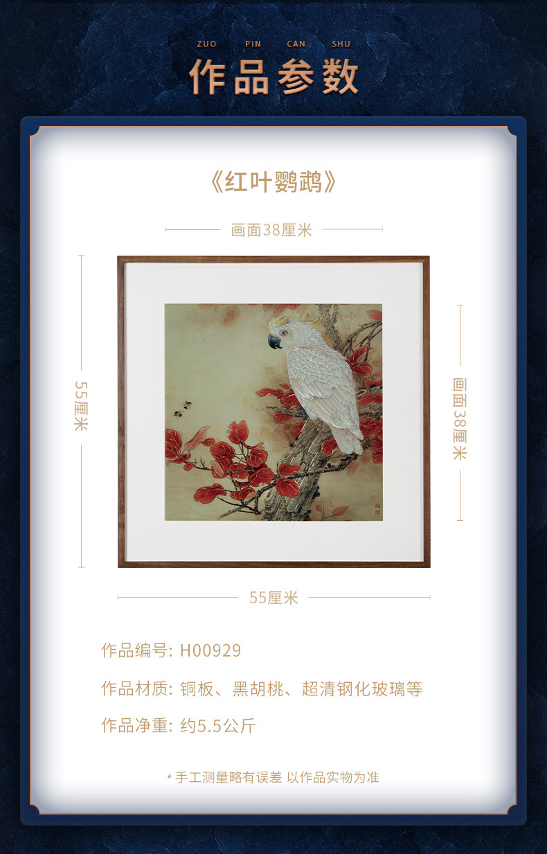 铜师傅 手工錾刻 铜雕画《红叶鹦鹉》客厅玄关画沙发背景墙装饰画
