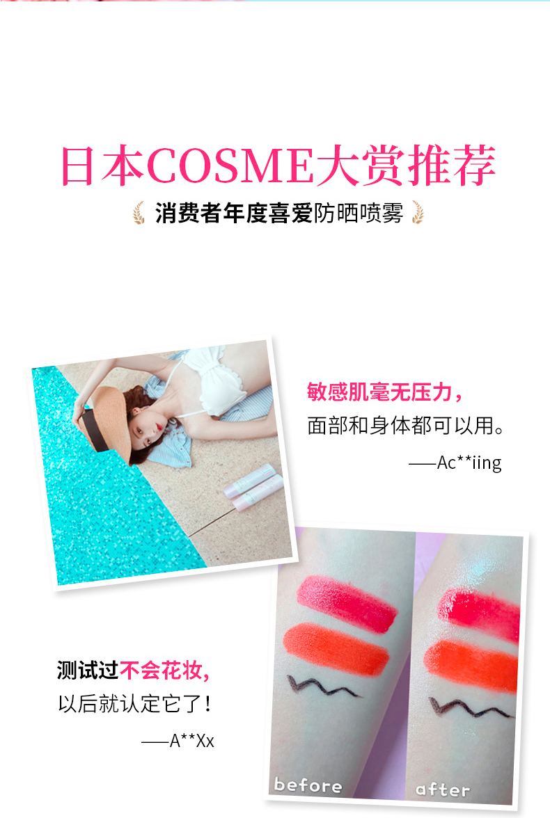 Naris/娜丽丝 防晒喷雾防紫外线 90g【不足200元订单,默认顺丰快递到付】