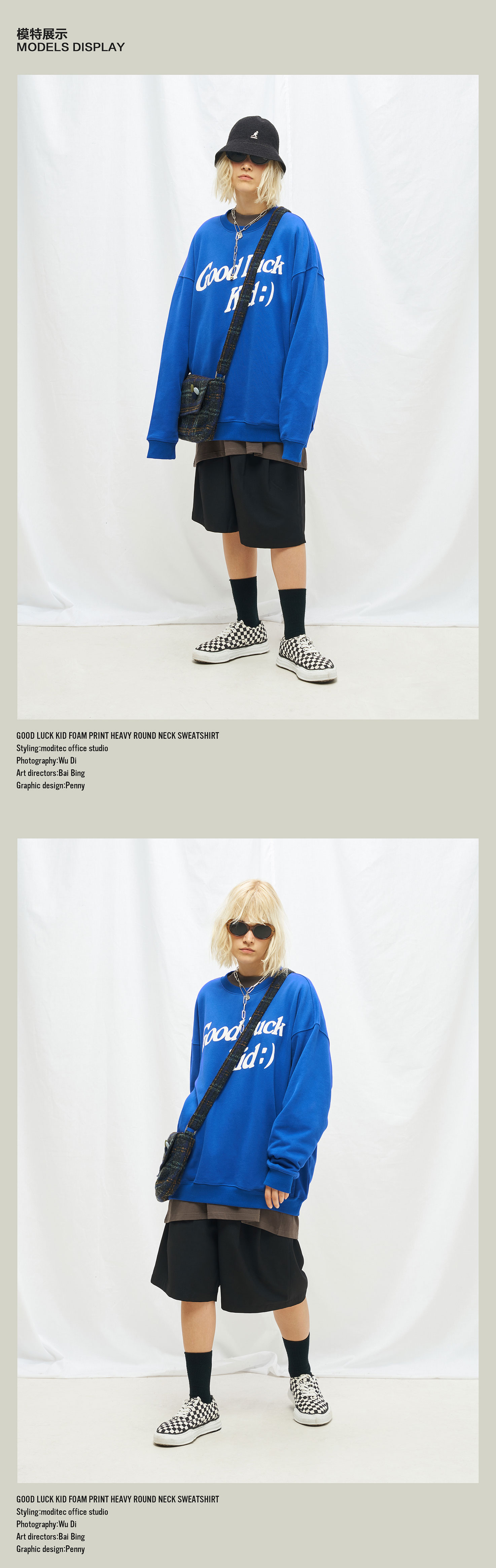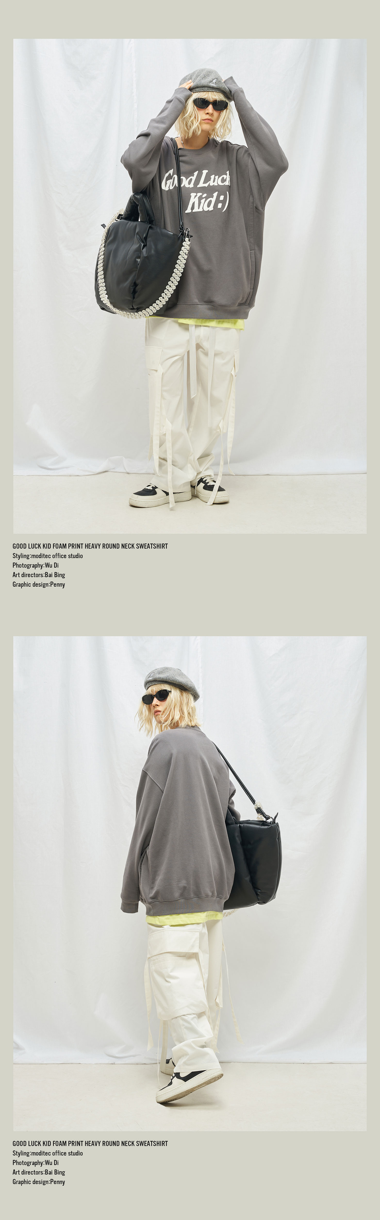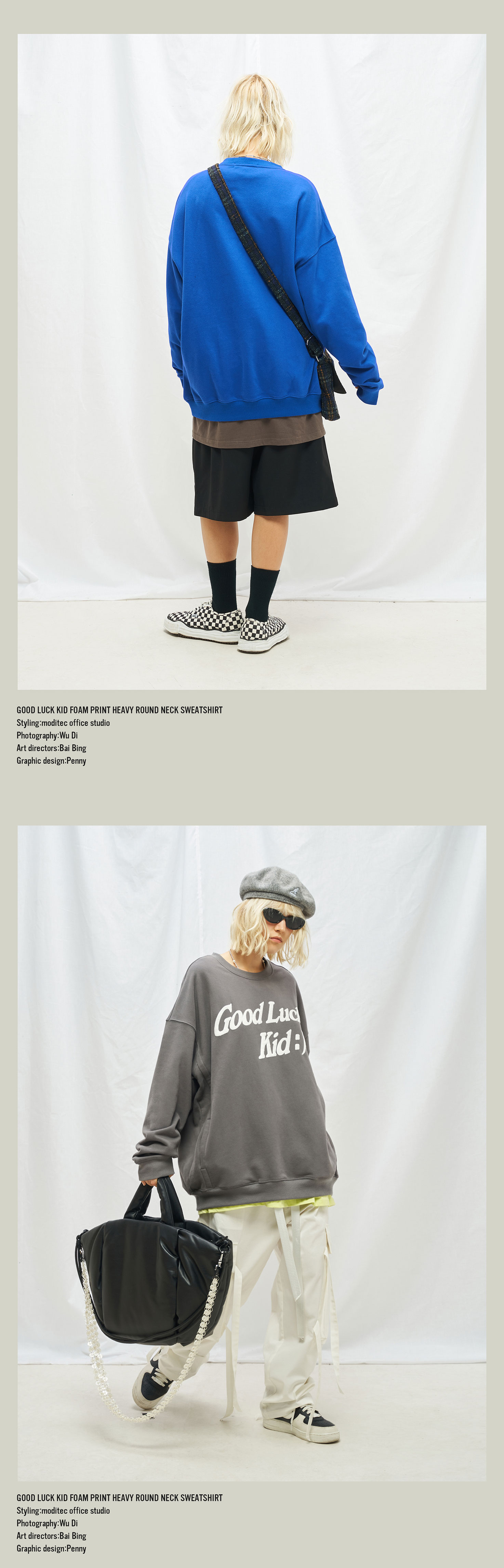 MODITEC 20秋冬 GOODLUCK发泡印花抓绒宽松卫衣 双色廓形套头卫衣