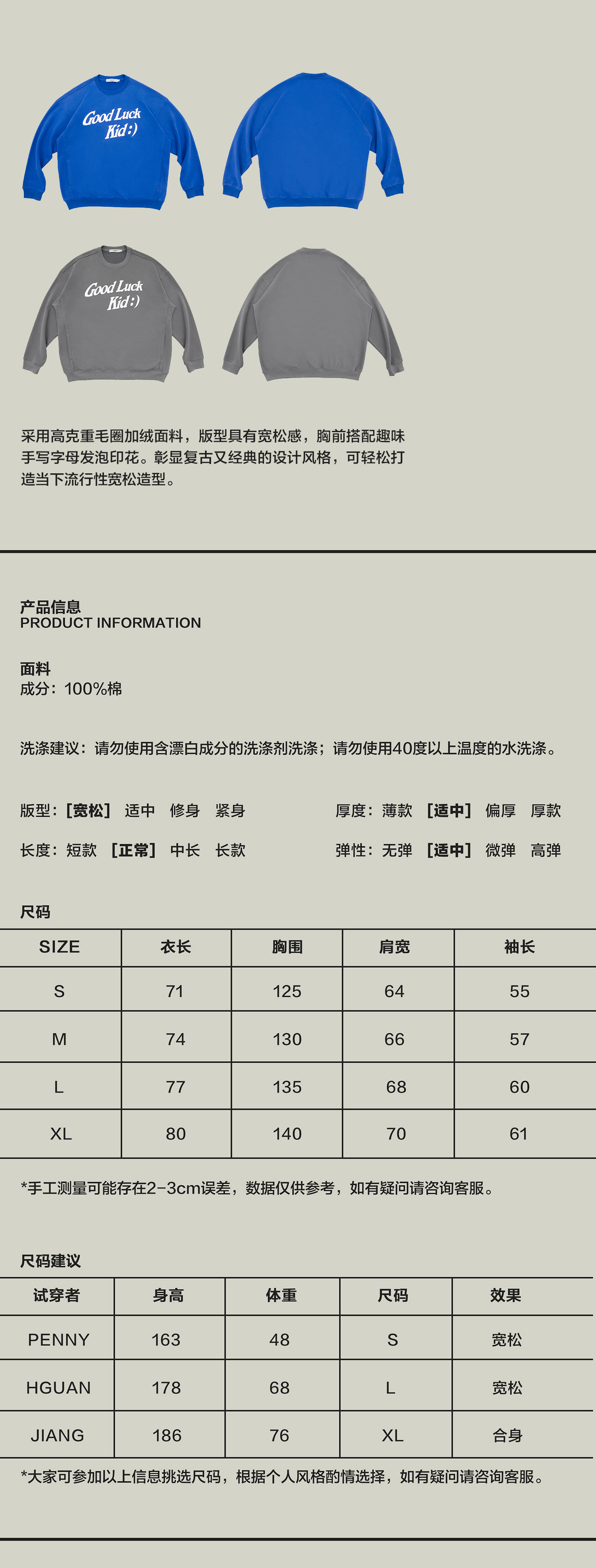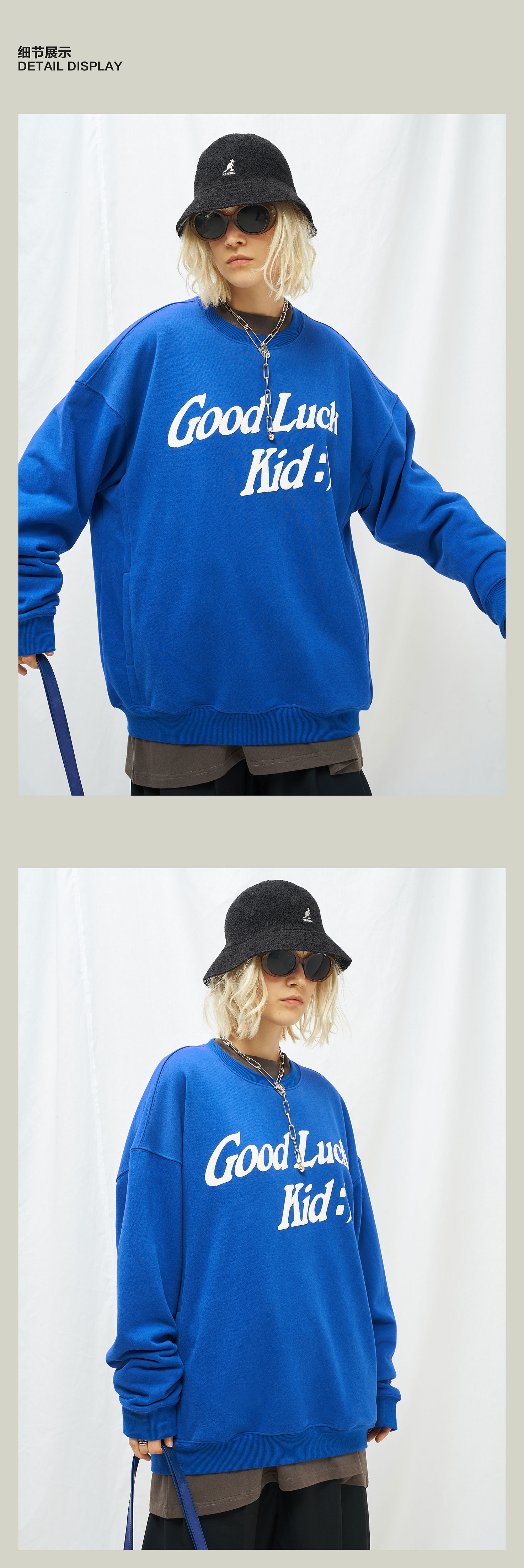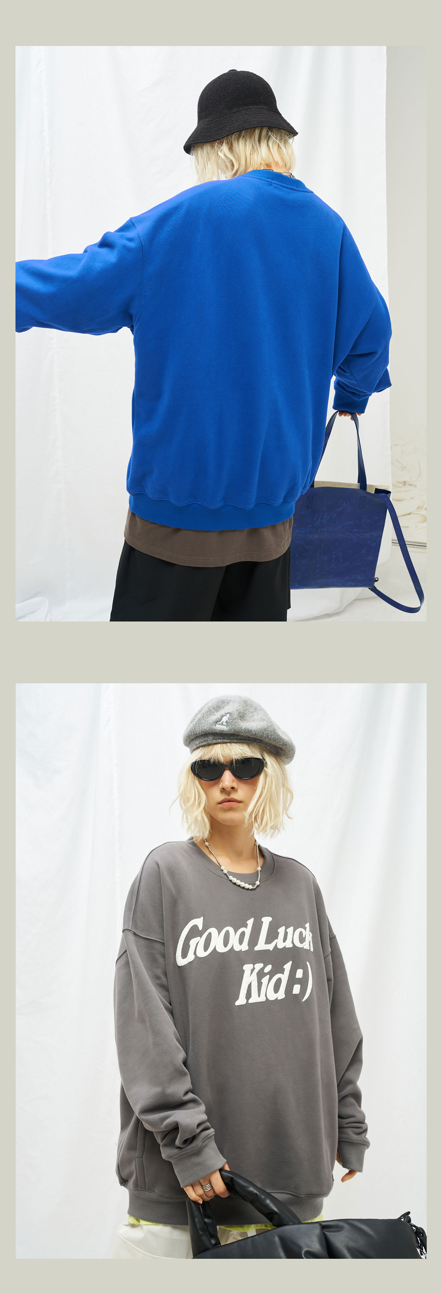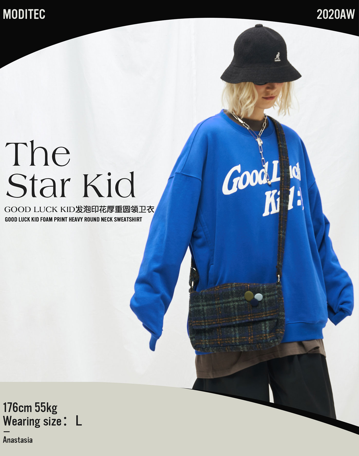 MODITEC 20秋冬 GOODLUCK发泡印花抓绒宽松卫衣 双色廓形套头卫衣