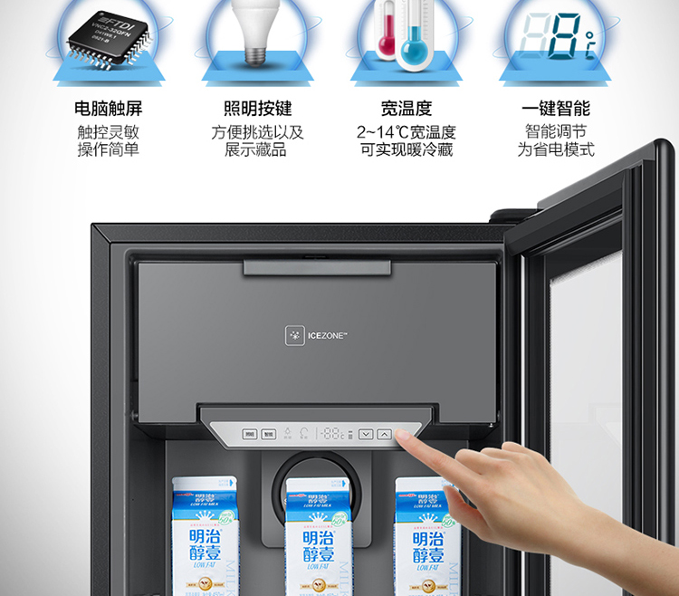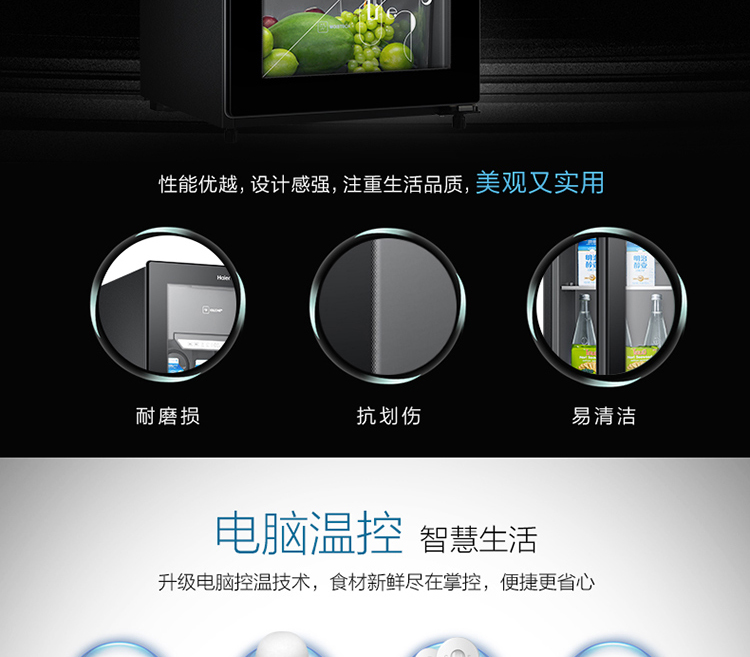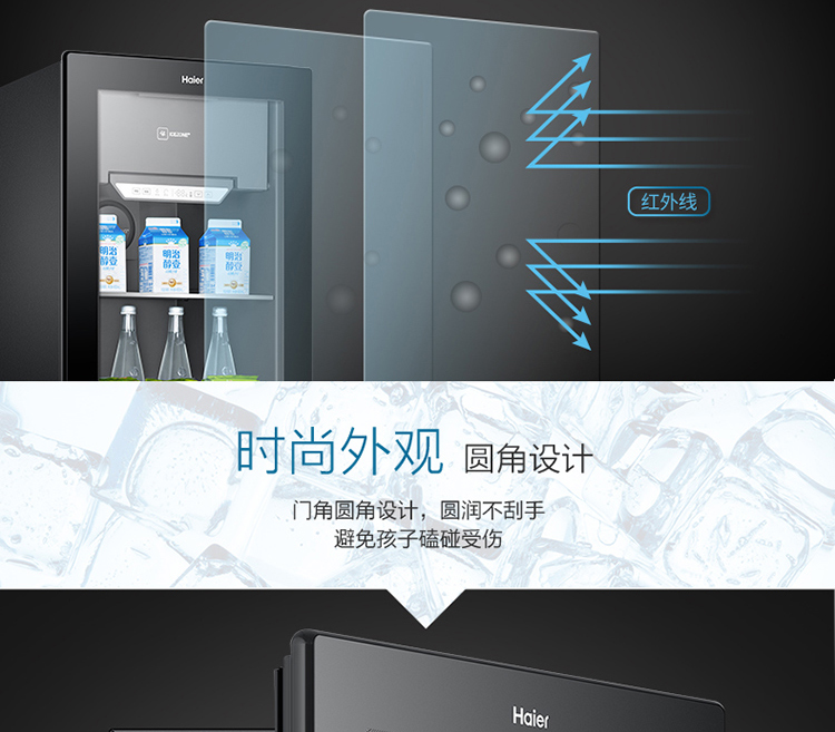 海尔121升 办公室冰吧 时尚冰吧 智感除雾 风循环制冷 茶叶柜 酒柜 墨晶黑LC-121D