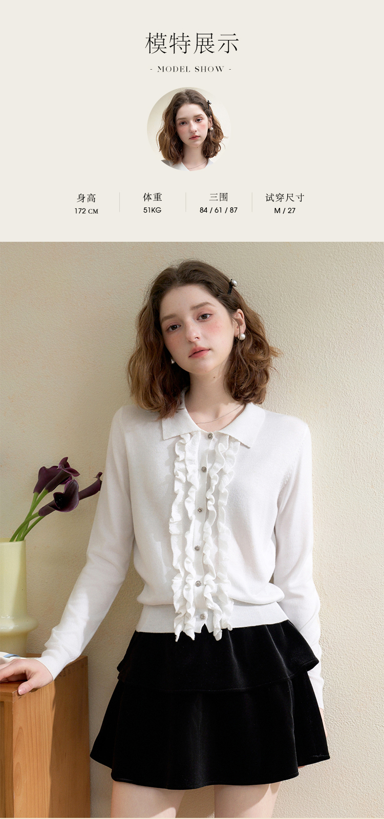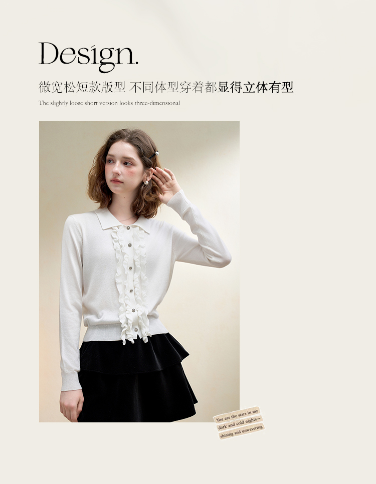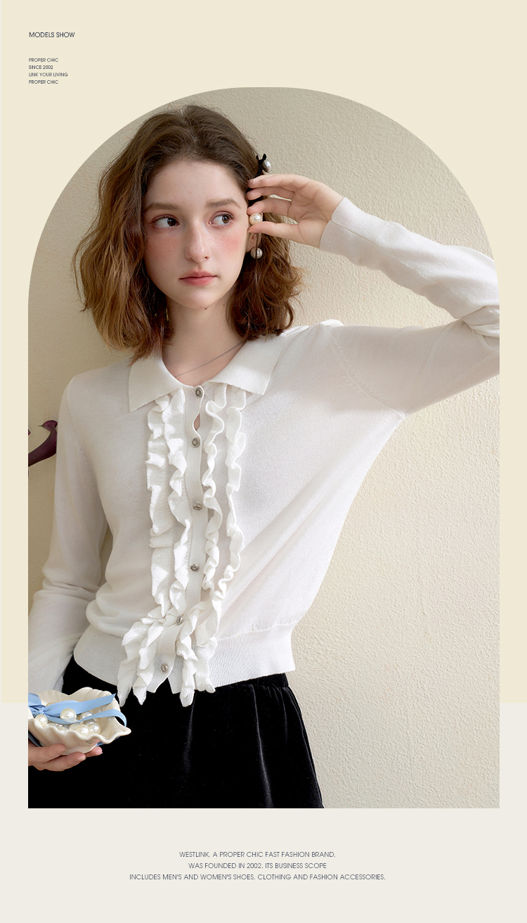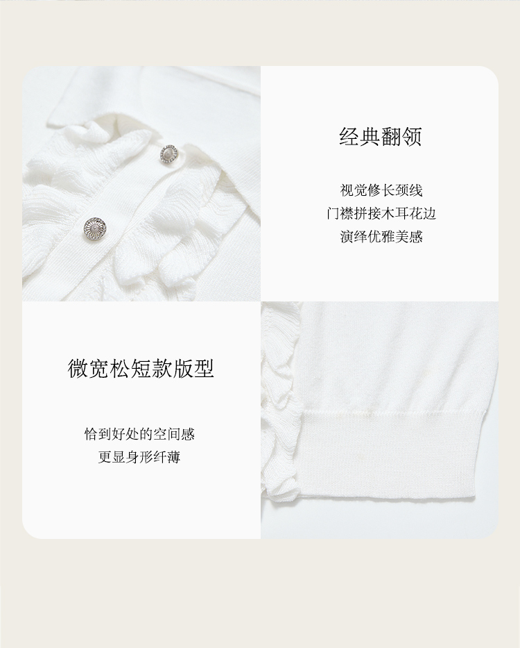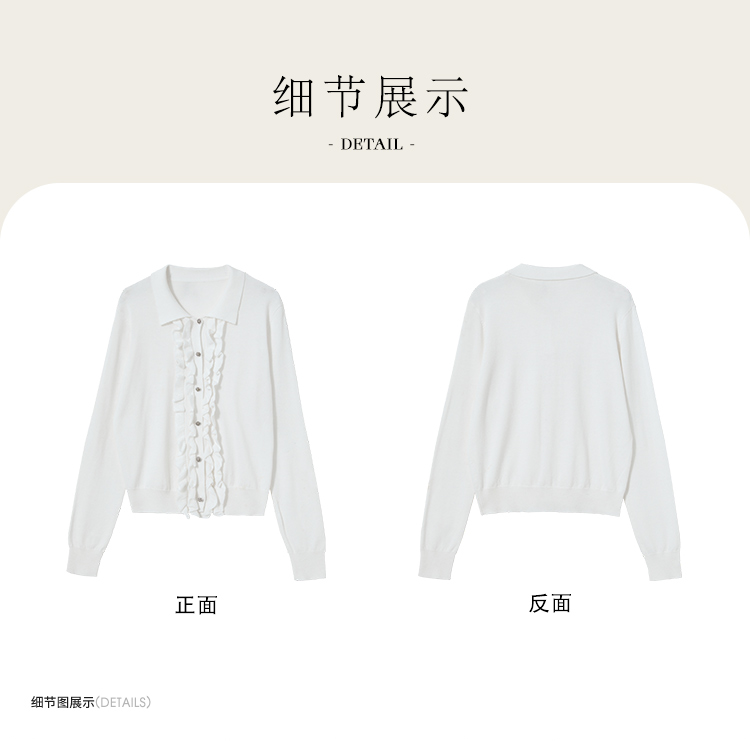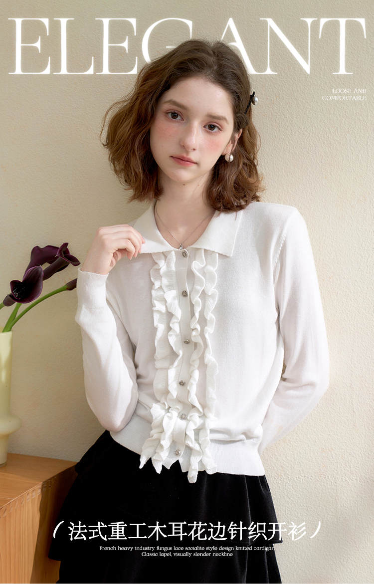 西遇法式重工木耳花边名媛风针织衫女秋季收腰显瘦短款外套V3055139