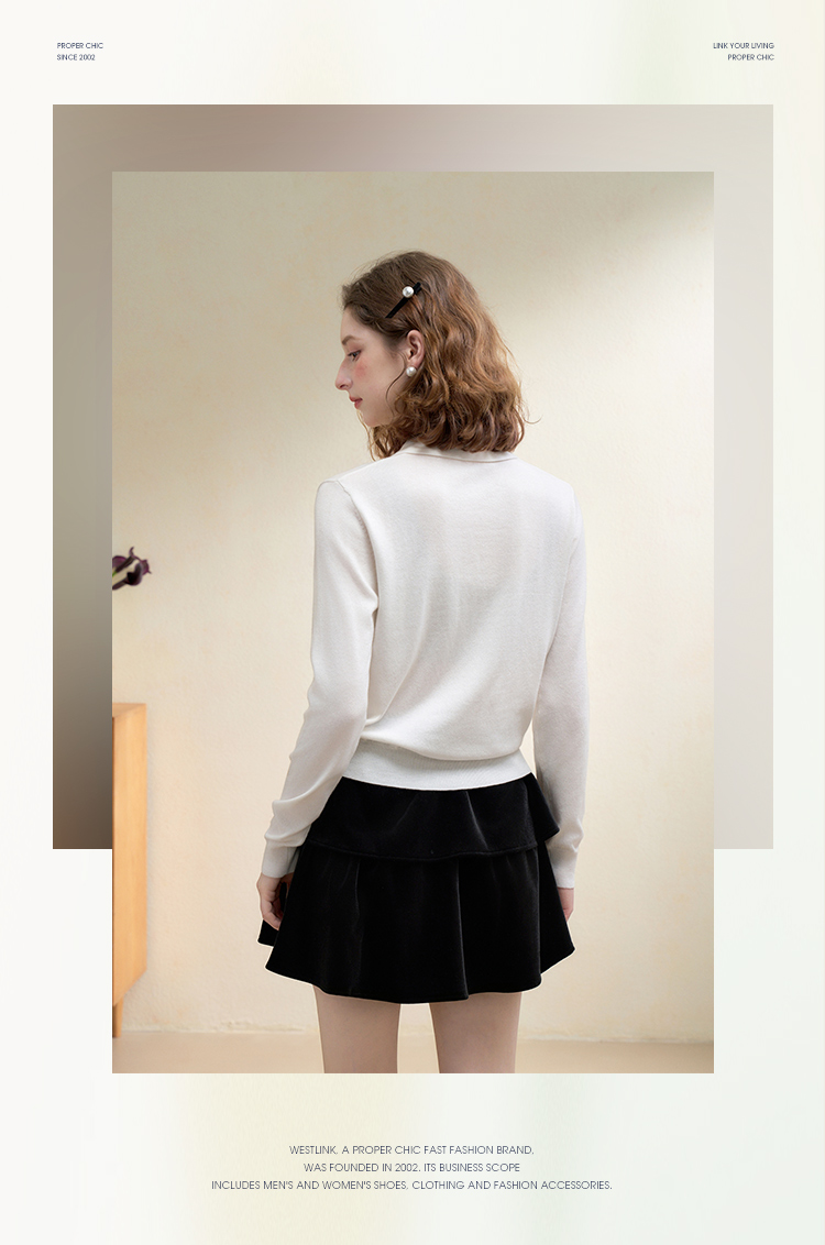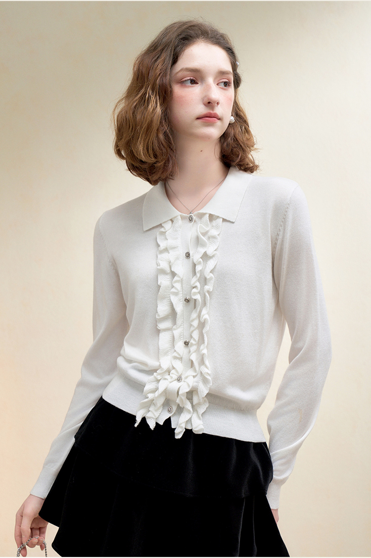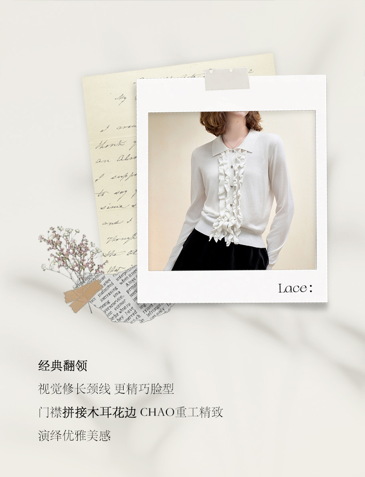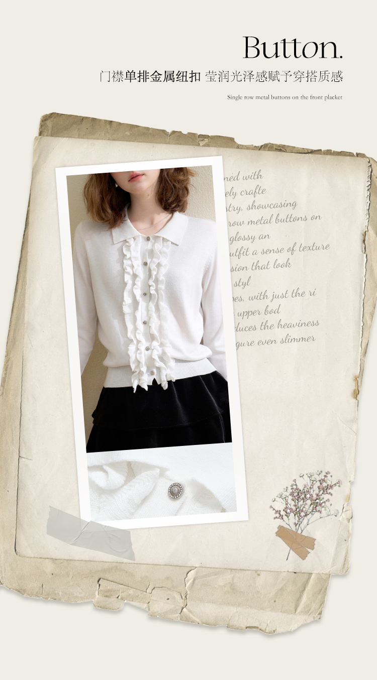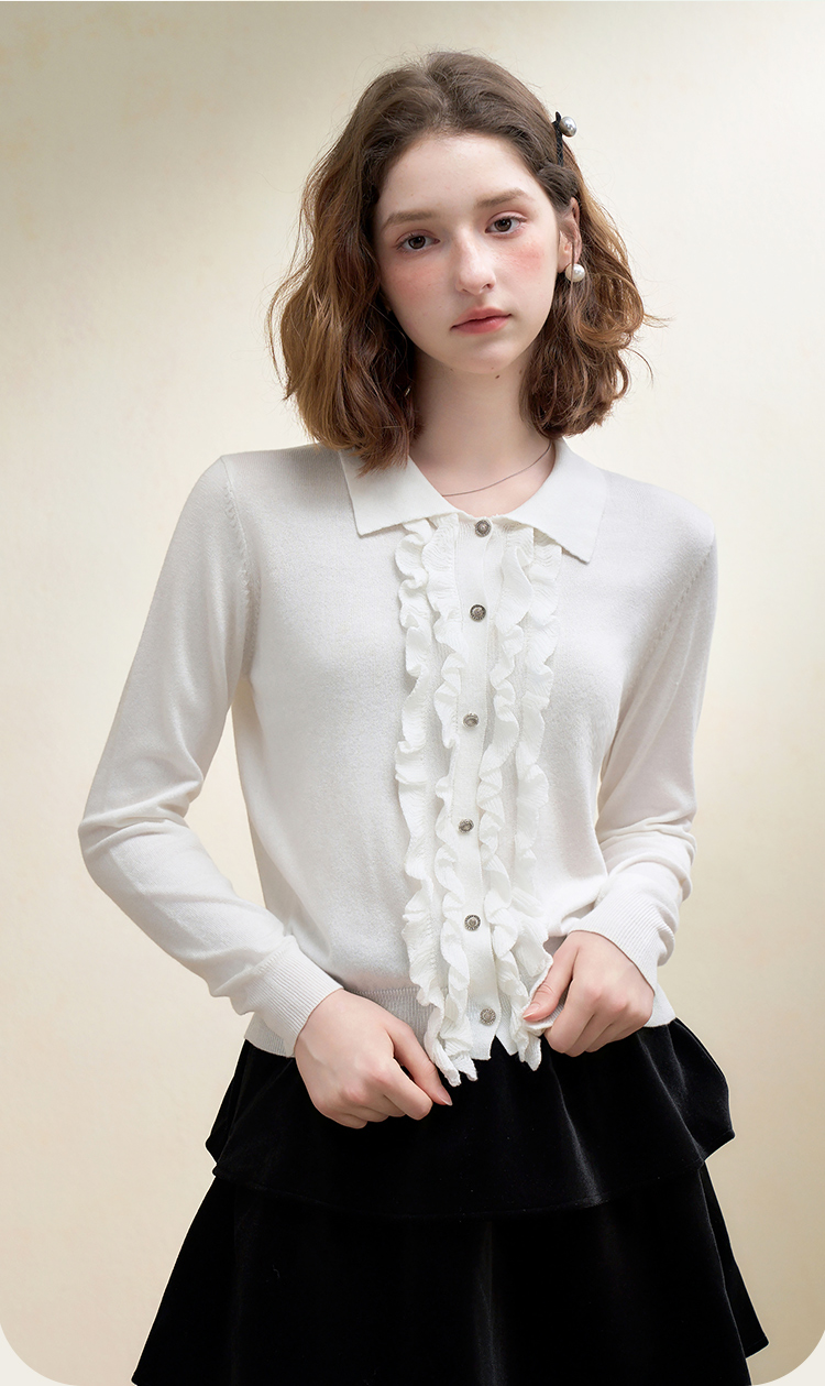 西遇法式重工木耳花边名媛风针织衫女秋季收腰显瘦短款外套V3055139