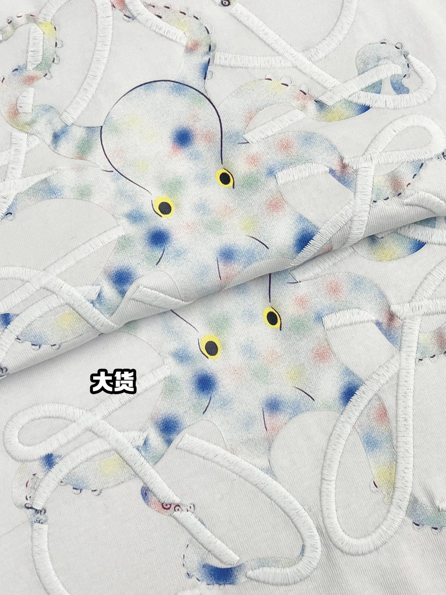 定制高密度精梳全棉面料 成衣洗水增加面料柔顺度 肌肤感舒适感很强 非市场版本 刺绣➕印花的设计 定制75D环保刺绣线(线的光泽感和密度达到原版一致水准)搭配进口椭圆机数码八爪鱼印花 原版开发细节 全衣身按原版1:1定制开发 男女同款出货 下单可选配品牌包装 SIZE:XS-L
