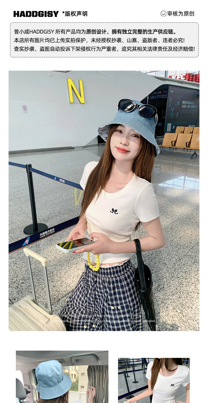 <曾小咸推荐>韩系镂空字母刺绣短袖t恤上衣