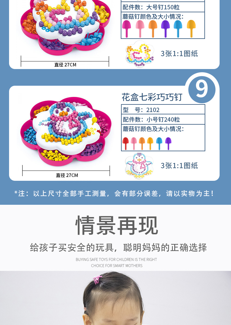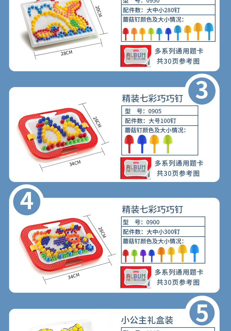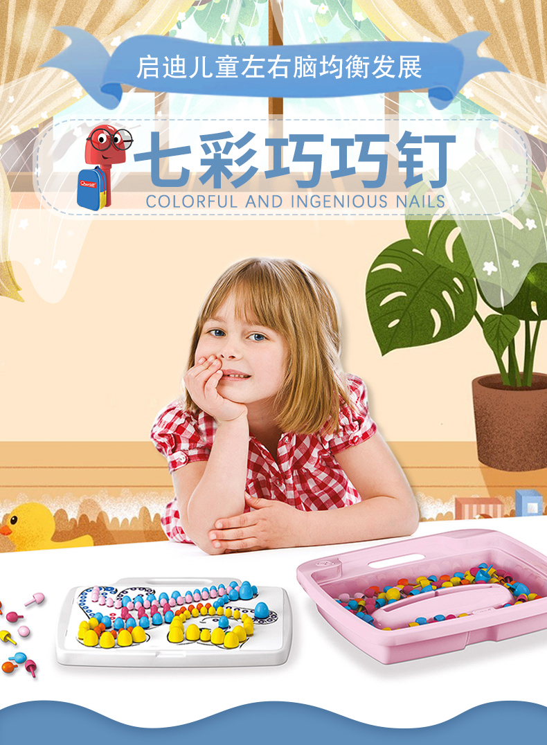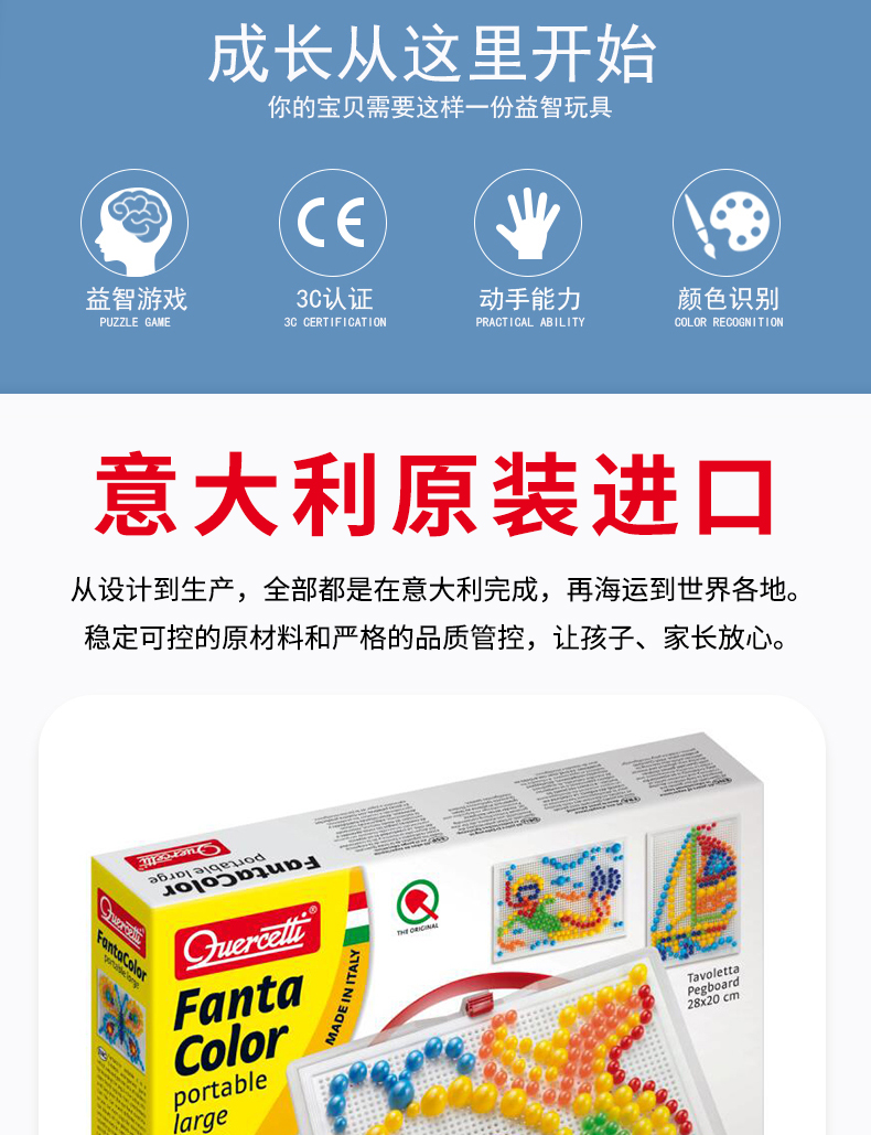 Quercetti启迪 蘑菇钉系列 精装手提七彩巧巧钉 3+岁 意大利
