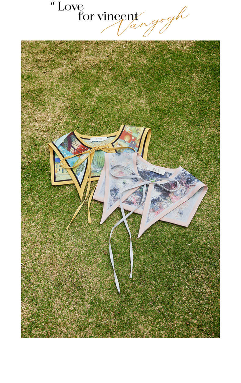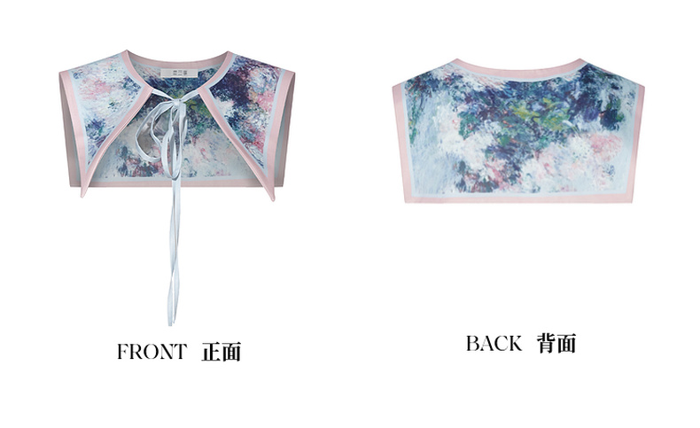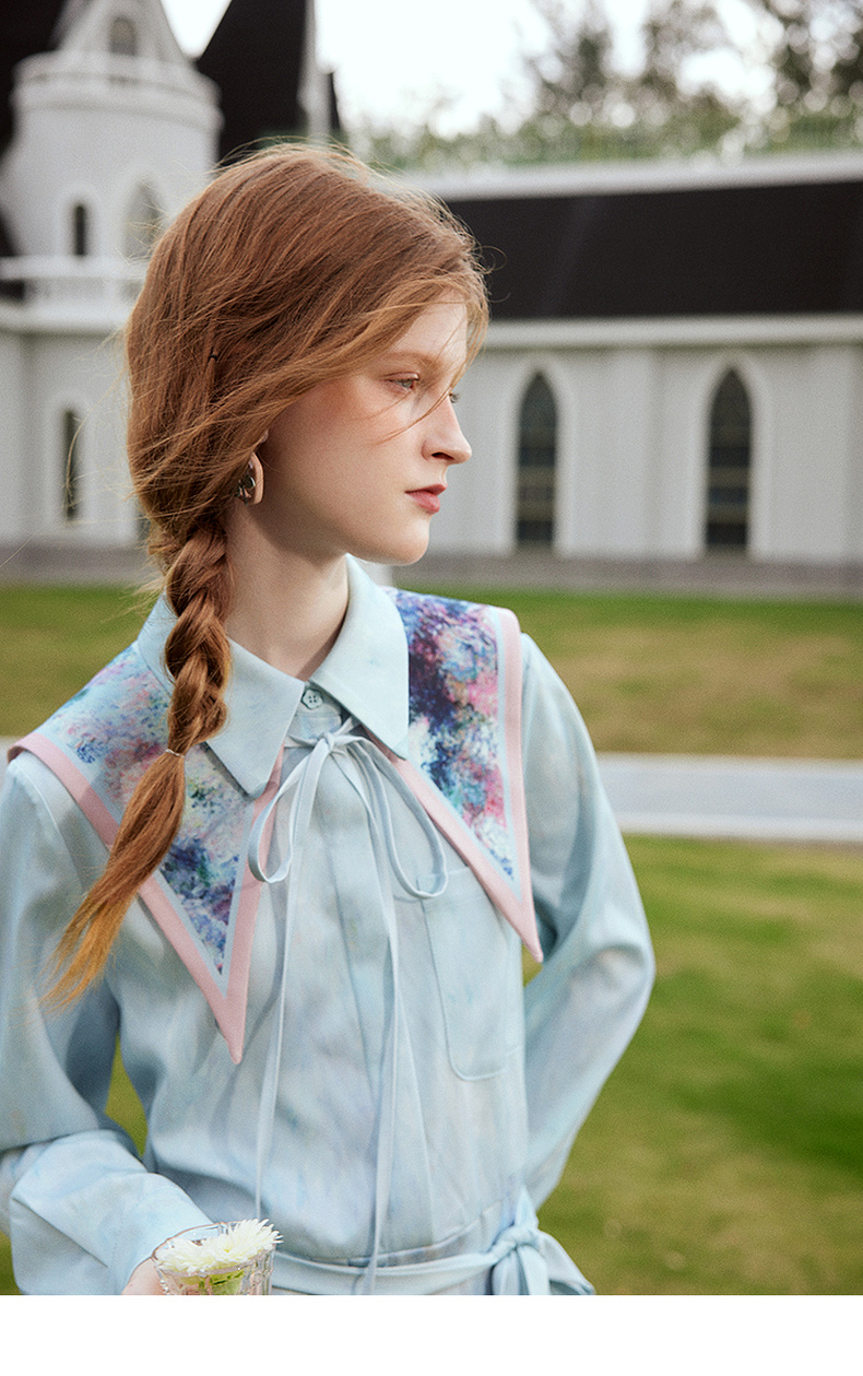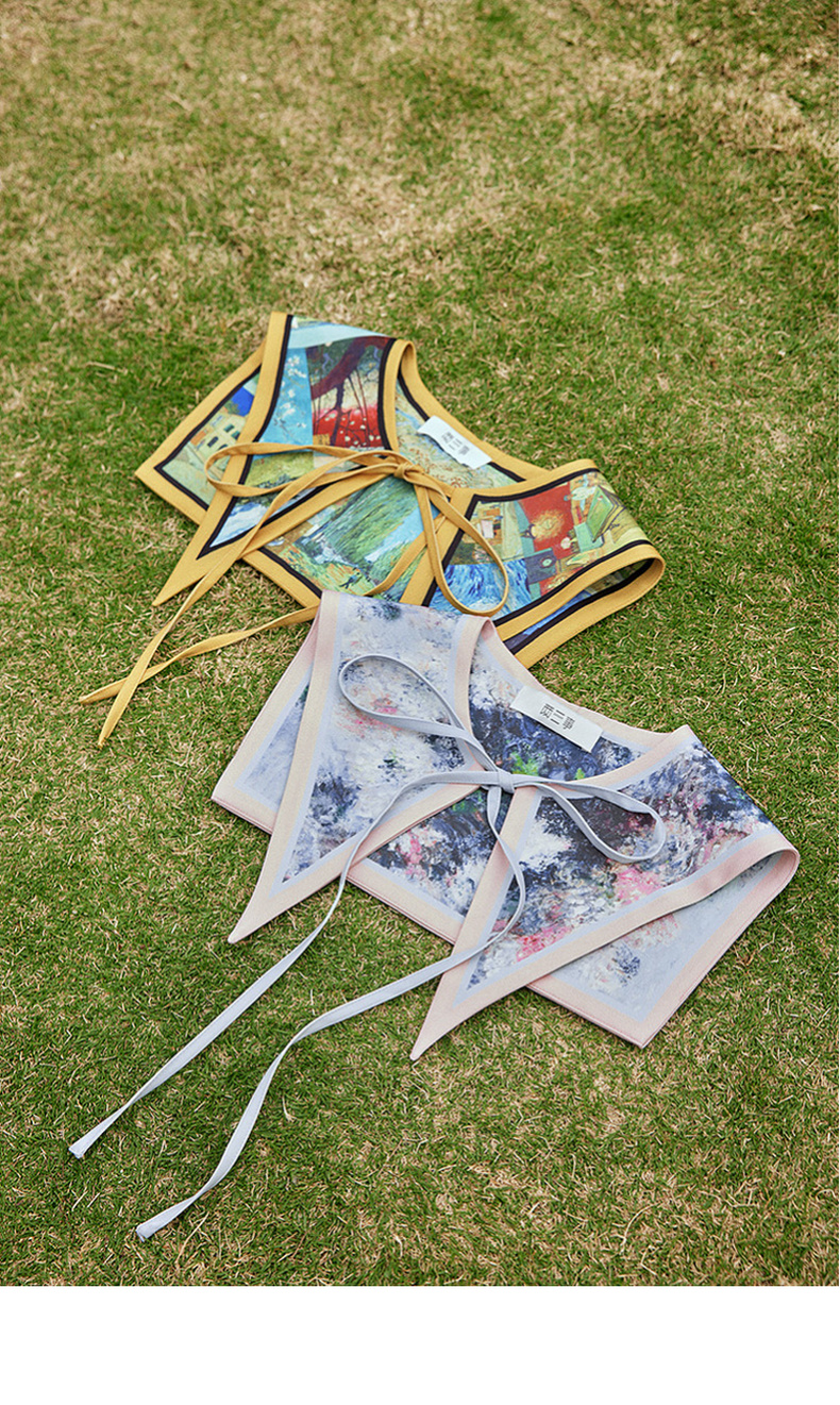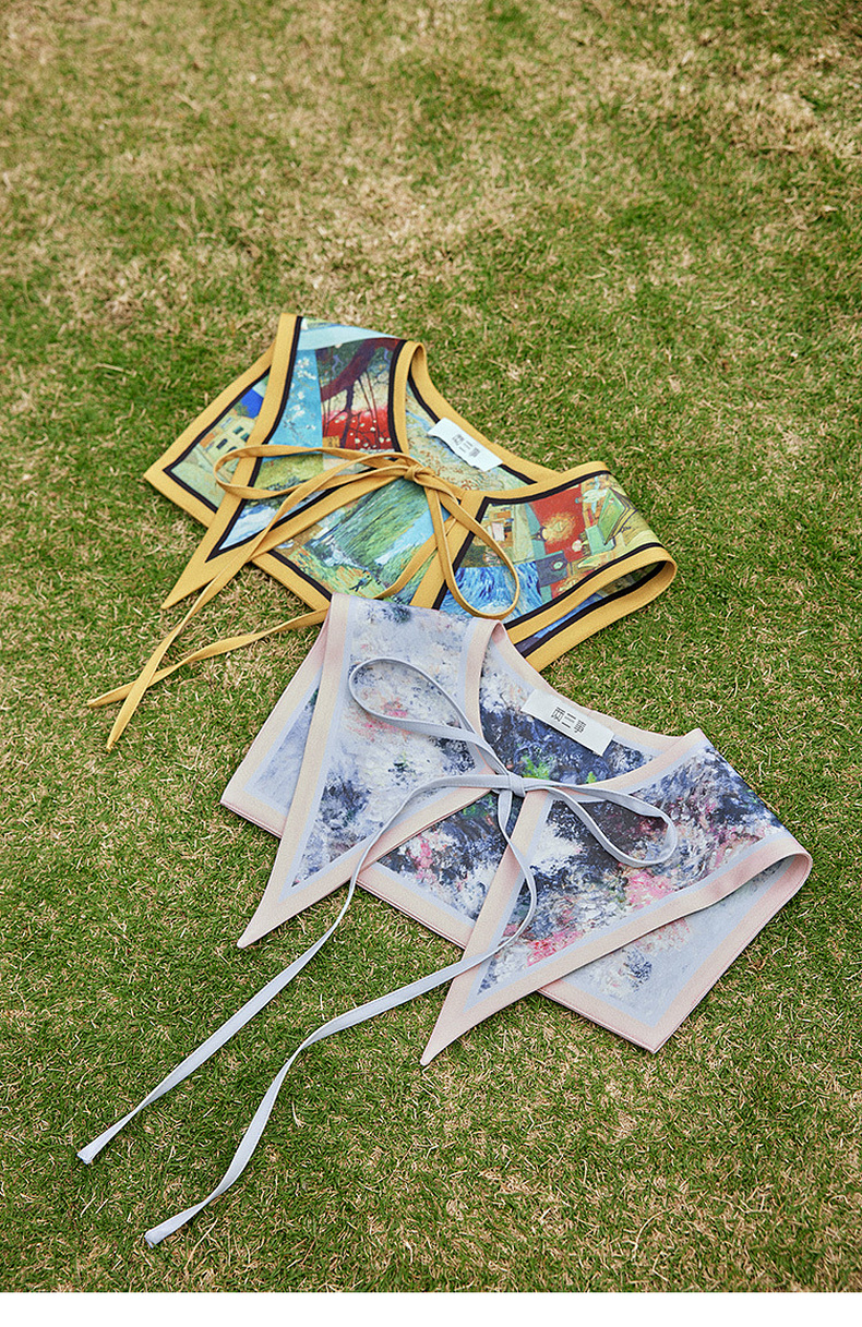 两三事梵高文艺披花骑士2024春新款小清新印花绑带海军领假领女款
