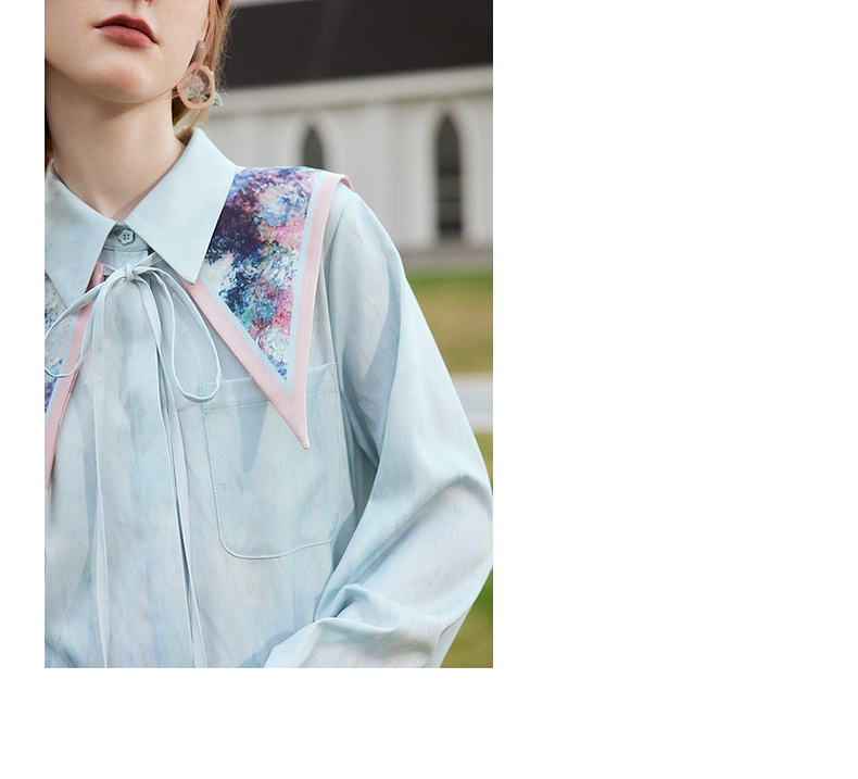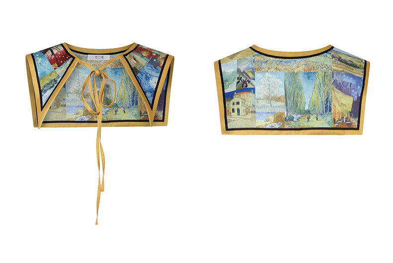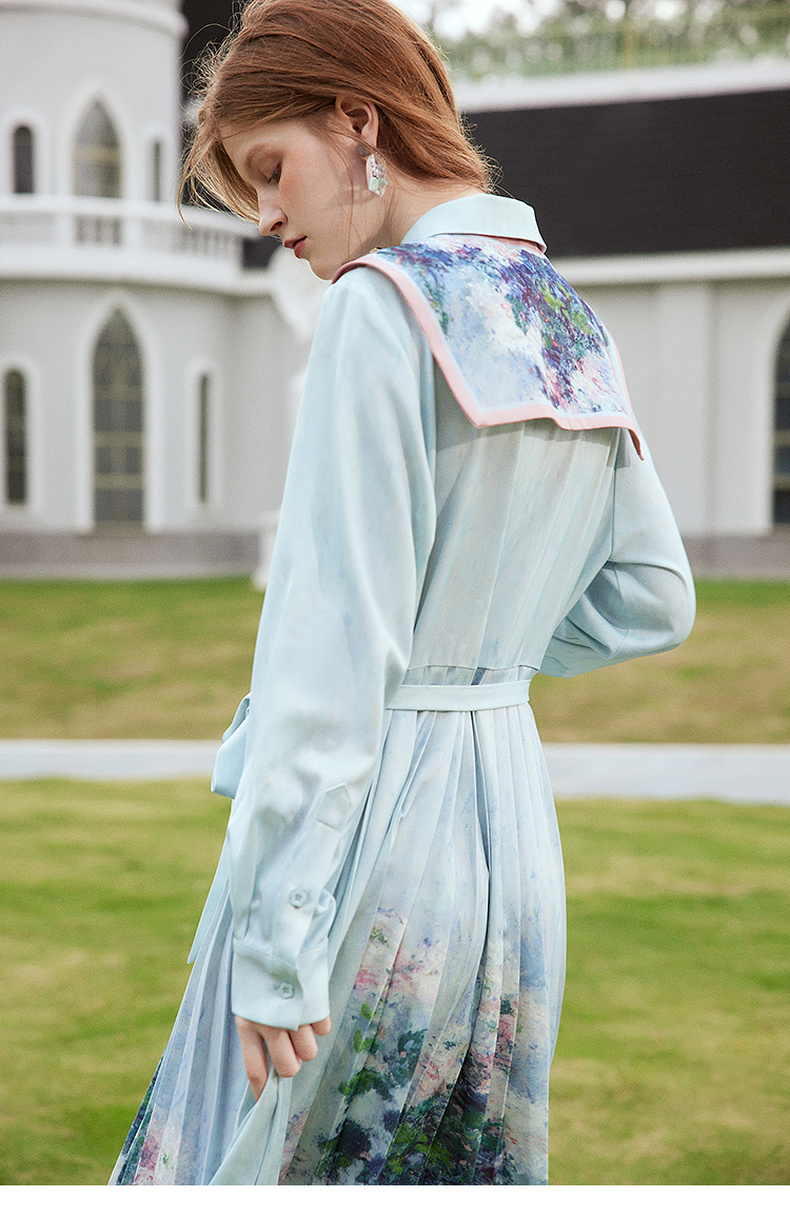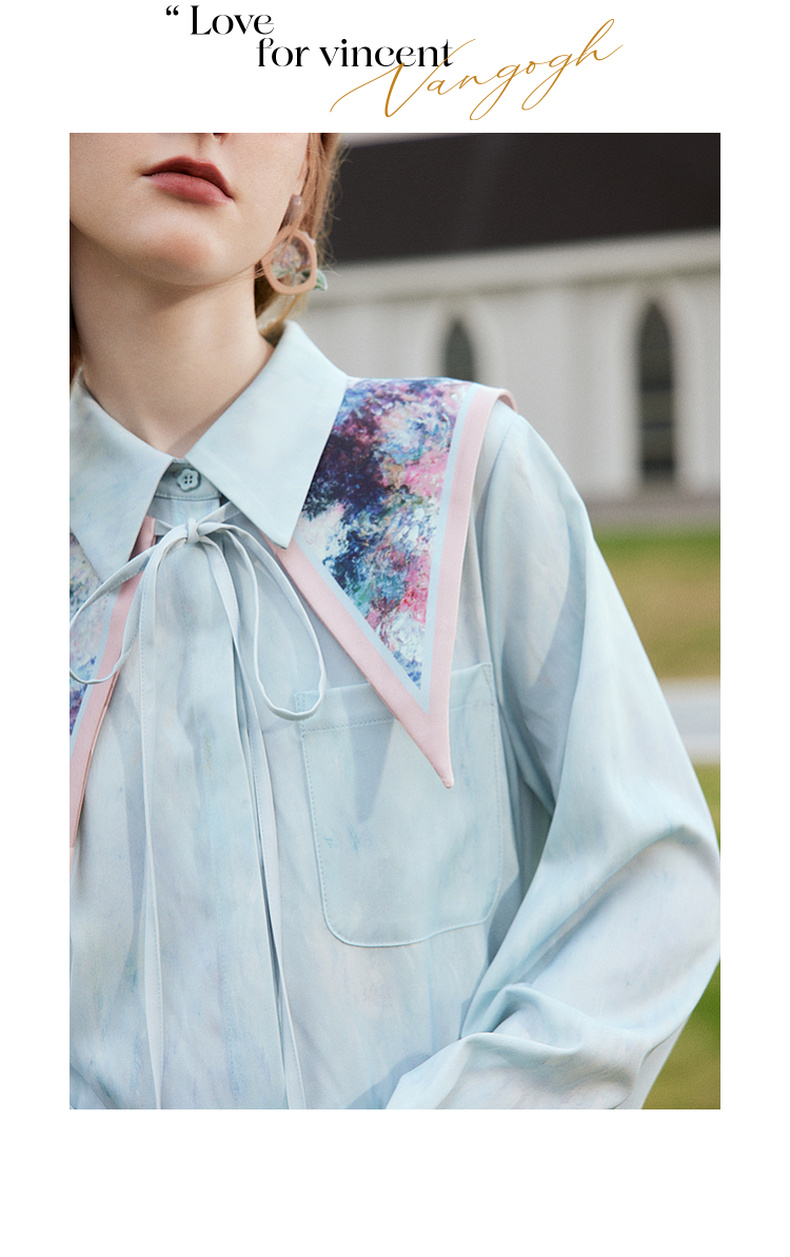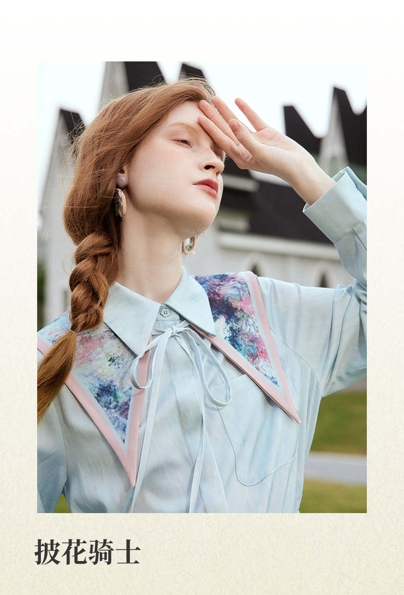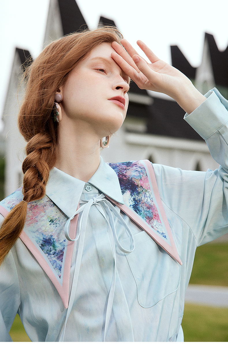 两三事梵高文艺披花骑士2024春新款小清新印花绑带海军领假领女款