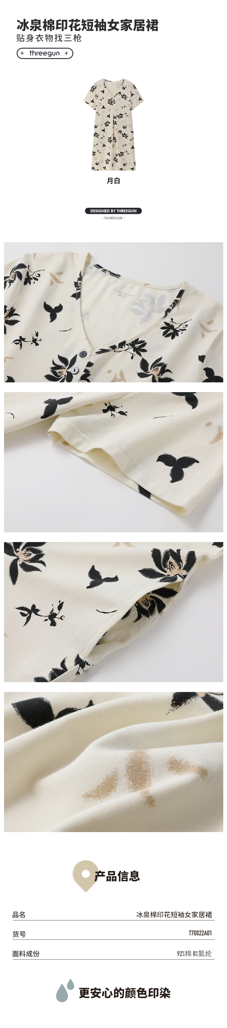 Threegun三枪 冰泉棉印花短袖女家居裙-T70022A01